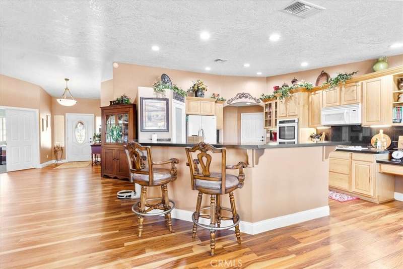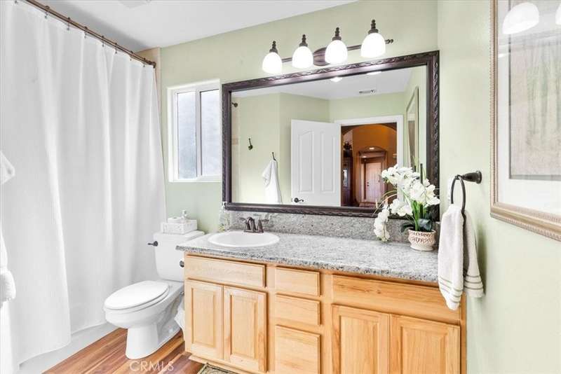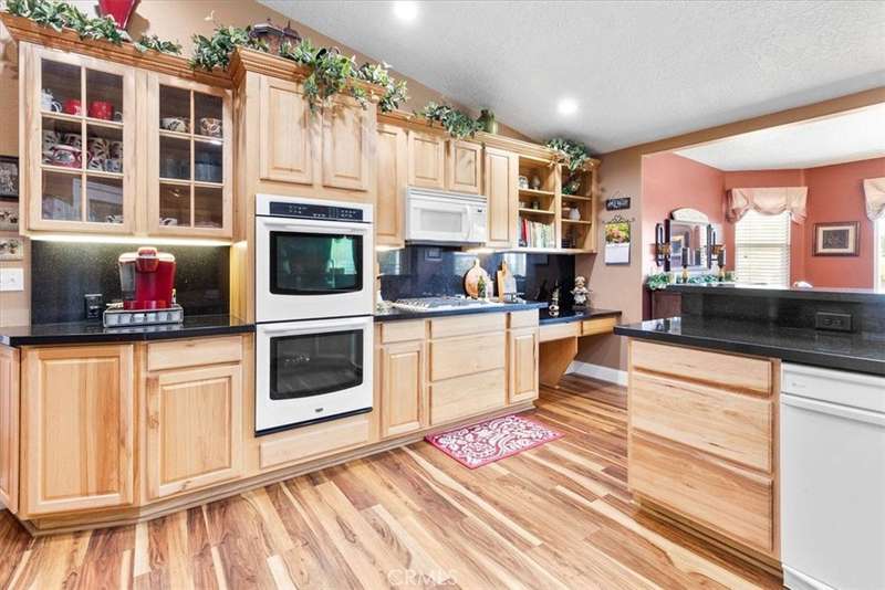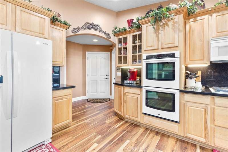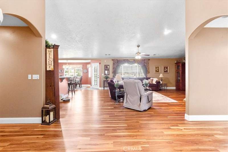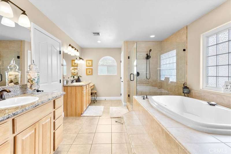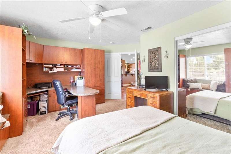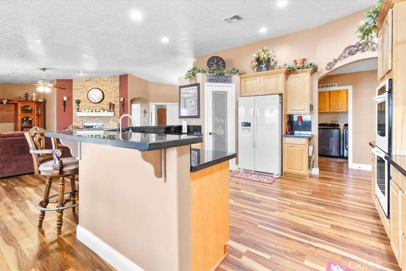 Step into your private paradise featuring a sparkling saltwater pool, and an outdoor covered barbeque area complete with a fireplace and plumbed for outdoor kitchen, perfect for year-round entertaining. The expansive 960 sq. ft. detached building, is currently being used as a 5-car garage (26' x 40') with 2 roll up garage doors and a man door, is fully permitted and equipped with its own 3/4 bath and separate electrical & alarm system. With a little imagination, this versatile space could become a stunning guest house, home office, gym, or rental unit. This building also has its own heating and cooling. The home is packed with premium upgrades including: Open kitchen to the great room, to include all appliances, specifically a newer refrigerator, breakfast bar, dining room with views to the pool and backyard. Master bedroom with a two-sided fireplace, soaking tub, and walk in closet. Laundry room includes a modern washer and dryer. Spacious bedrooms and closets.