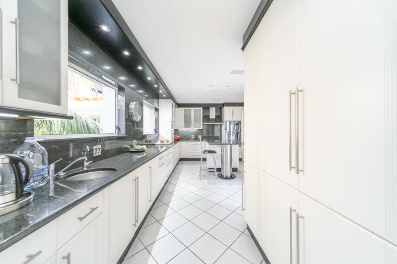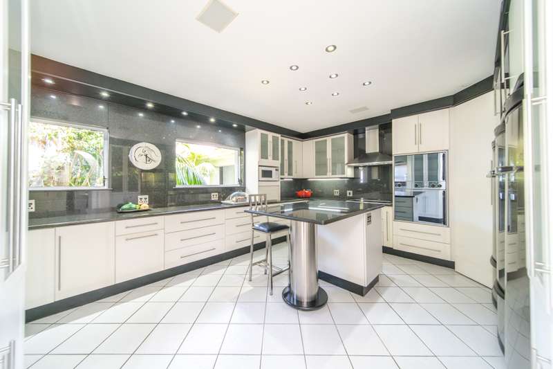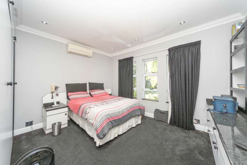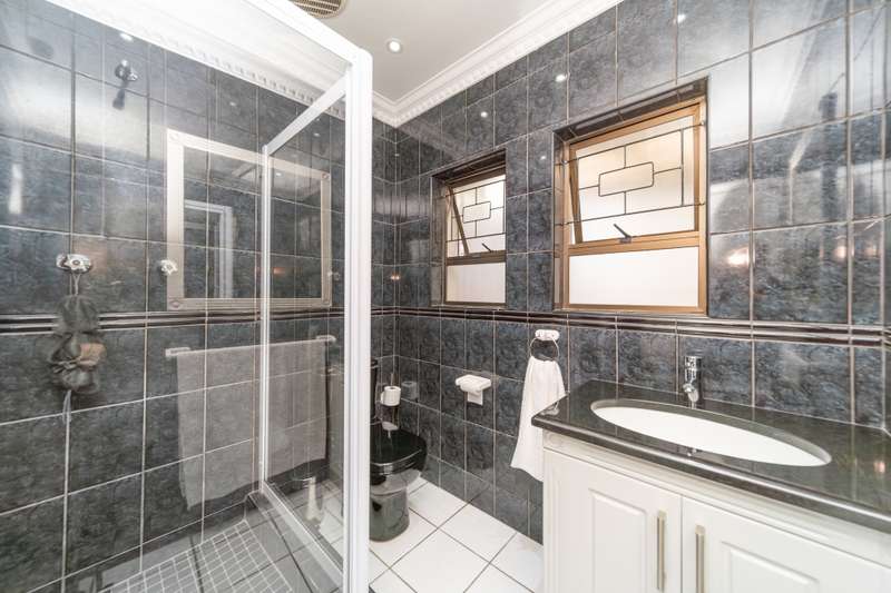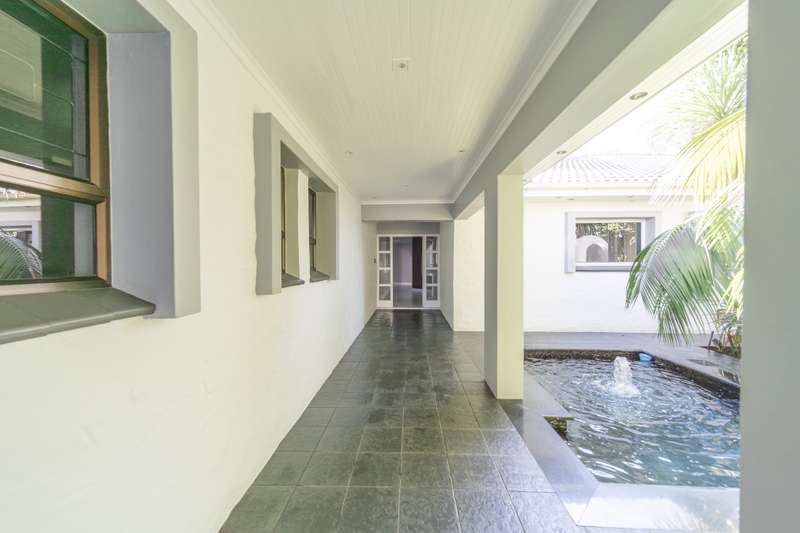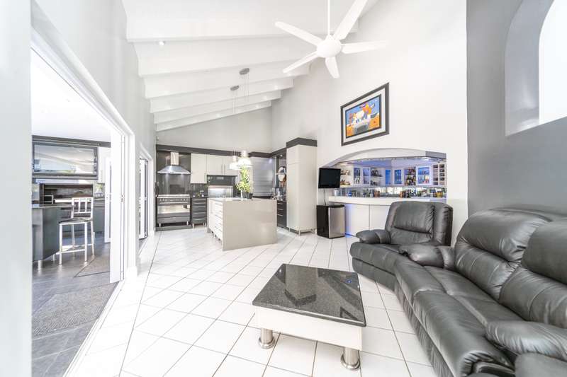 Step into a Home that stirs the senses and soothes the soul. The moment you enter, you’re greeted by a sense of calm. Sunlight streams generously through large windows, illuminating every corner and casting soft golden hues across the thoughtfully curated interiors. Main House – 5 Bedrooms, 2 x Family Bathrooms, guest toilet, Master suite a real oasis with sauna heated towel rails, coffee station and ambient lighting, 2 x Kitchens, separate scullery, study and strong room. Entertainment area – guest toilet, additional kitchen, gas stove, bar. Braai area – Gas stove, oven and second bar, outdoor island kitchen, beautiful pool, fountains surrounded by tropical palm trees, outdoor TV and toilet facilities Additional extras – 8 storerooms, 7 x Garages all fitted with built in cupboards and parking for 6 additional cars, solar geyser, air conditioning, 120 000l water tanks, surround sound system. A bonus luxury 1 x bedroom flat with granite top kitchen and gas stove, lounge, study and laundry, 2 x aircons and own alarm system. A must to view!
