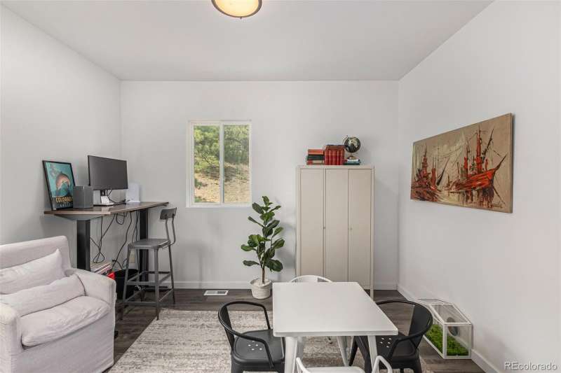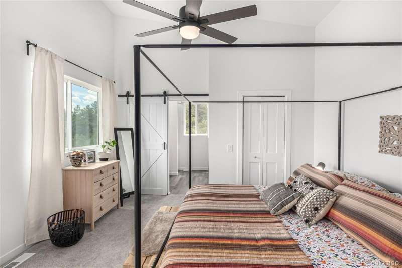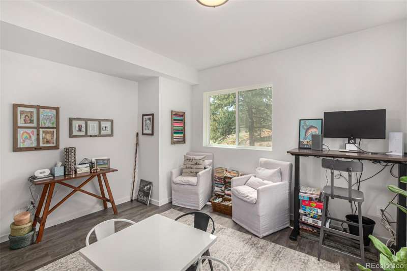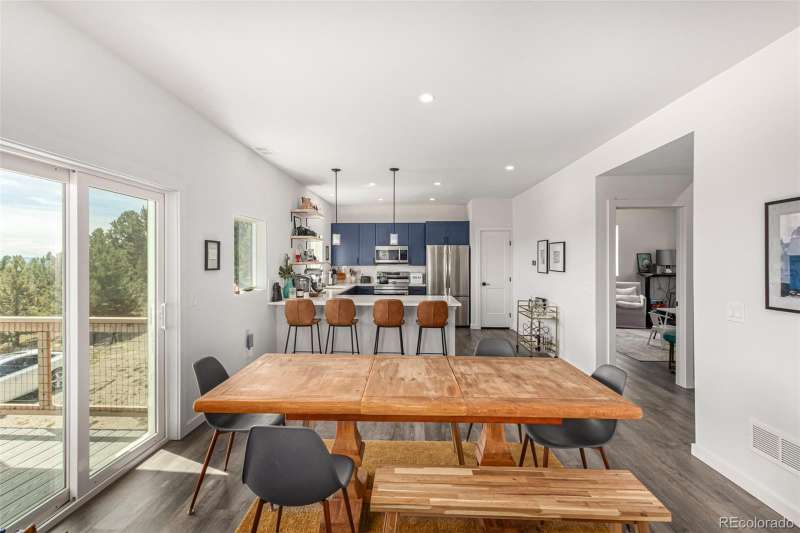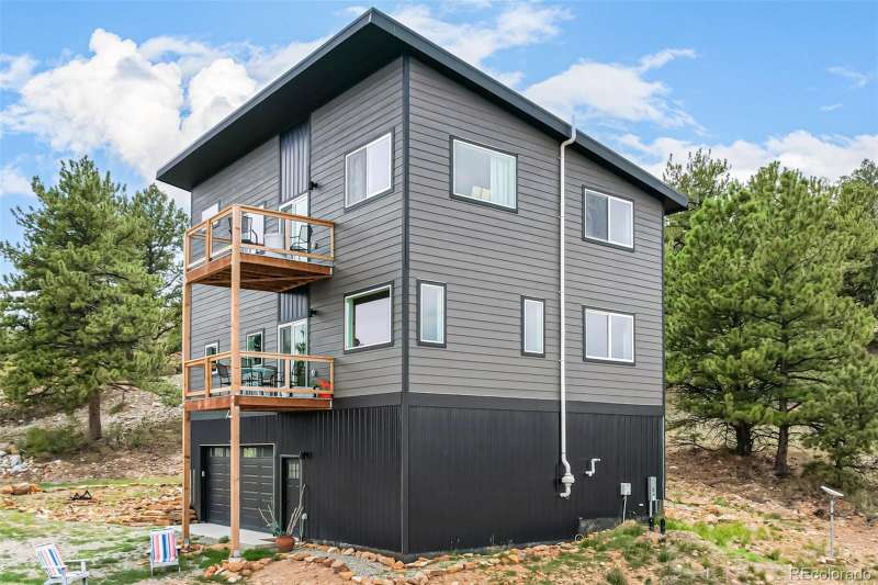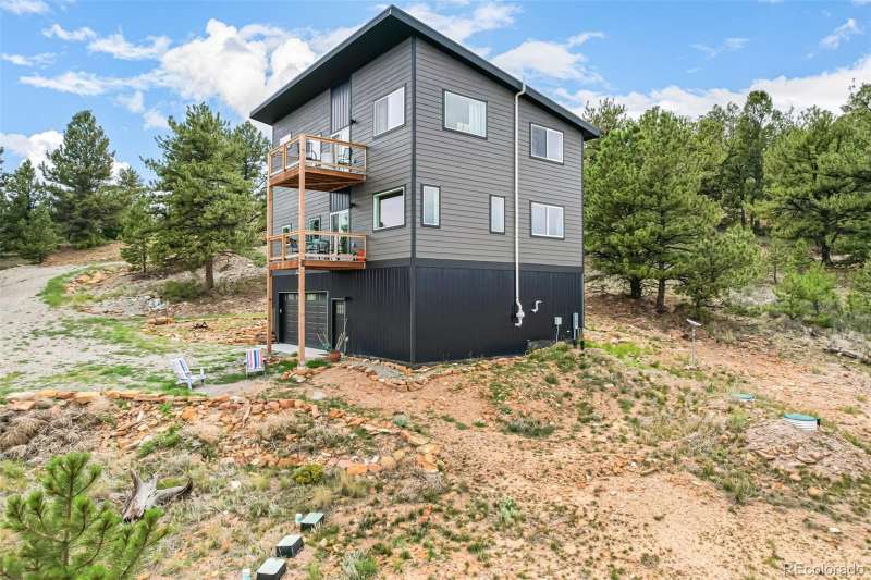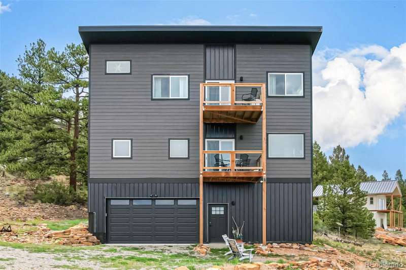 Welcome to this stunning modern mountain retreat in Redhill Forest, offering sweeping valley views and effortless access to everything you love about the Rockies, including 5.5 miles of private fishing rights of the Middle Fork of the South Platte River.Built in 2022 and meticulously maintained by its original owners, this 3-bedroom home also includes two versatile bonus rooms currently used as an office and a family roomboth easily convertible into additional bedrooms.The main level features an open-concept layout with a sunlit living room anchored by a cozy gas fireplace, a dining area that opens to a covered balcony with panoramic views, a stylish sitting area, and a beautifully designed kitchen with quartz countertops and stainless steel appliances. A full bathroom and dedicated office complete the main floor.Upstairs, French doors open to a spacious family room, along with the private primary suite featuring its own balcony, two additional bedrooms, and another full bathroom. The lower level includes a two-car garage and generous storage space.Located on a paved road near the community entrance, this home offers both convenience and serenityplus the bonus of reliable cell service. Only 10 minutes from Fairplay and 45 minutes from Breckenridge, youll enjoy the perfect blend of peaceful country living and easy access to dining, shopping, and world-class mountain recreation. All furniture is negotiable.