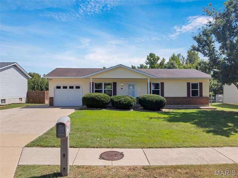 Welcome to 916 Trojan Circle. This charming 3 bedroom, 2 bathroom ranch offers a cozy and functional layout with thoughtful updates throughout, ideal for everyday living. Attentive curb appeal and a front porch greet you. This home offers a neutral palate, fresh paint, updated lighting, new flooring and much more! The living room flows seamlessly into the kitchen with ceramic tile floors and adjoining breakfast room, complete with a breakfast bar and open sight linesperfect for both relaxing and entertaining. The primary bedroom features a dual closet and convenient access to a full hall bath, with two additional ample guest bedrooms completing the main level. The lower level is awaiting your designalready equipped with a full bathroom and a partially finished room with a walk-in closet that could easily become a bonus space. Fresh carpeting in the living room and all bedrooms adds comfort and warmth throughout. Step outside to a large, fenced-in yard backing to trees and common ground, offering additional privacy. The back patio is perfect for quiet mornings or evening gatherings. Oversized driveway with an attached garage with service door to the backyard provides ample parking, including space for a boat or RV. Fabulous location, Award winning Troy R-III School District, nearby walking trails connect to Kiwanis park! Extensive Features and Updates List.