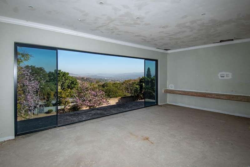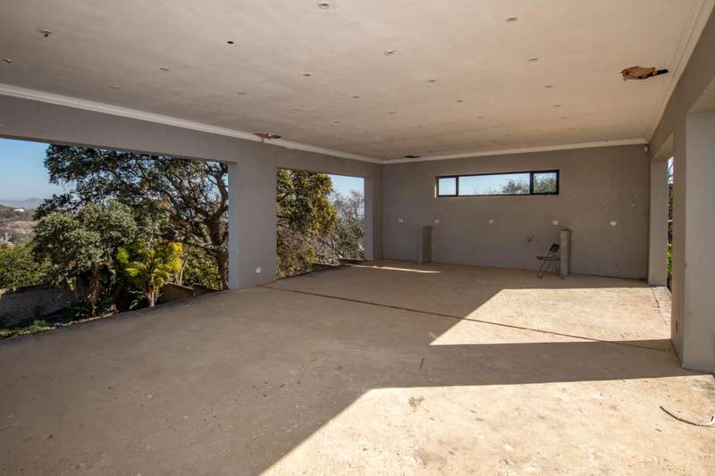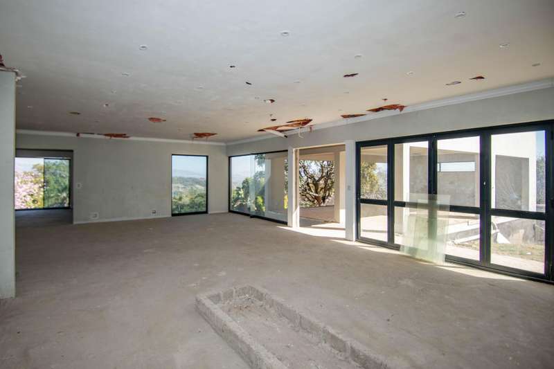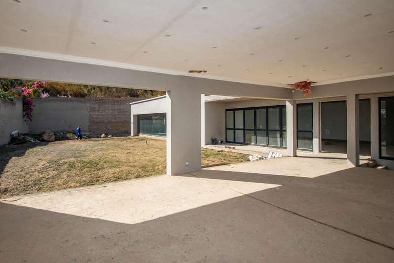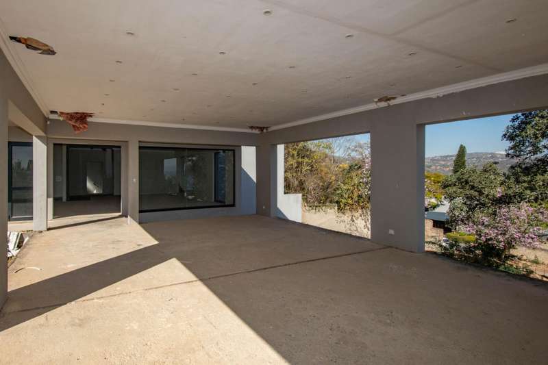 This huge partially completed family home is set at the right address and awaits your creative spirit and finishing touches. Configured with a feature entrance and huge covered patio with built in braai and views, leading into super spacious open plan living areas and designated kitchen area. The upper level further hosts a generous main bedroom with walk in dressing area and bathroom en suite. The lower level offers 3 more bedrooms with en suite bathrooms and a TV lounge. The 4 lock up garages have direct access into the home and there are also storerooms, domestic facilities and swimming pool The property is situated in a boom gated street near Matumi Golf Estate, De Hallen retail centre, schools, churches & major routes.