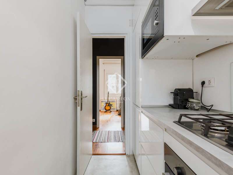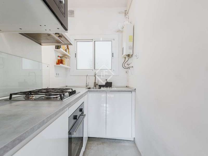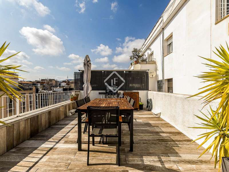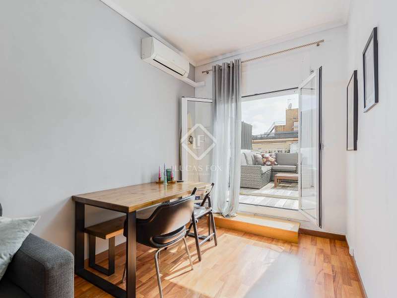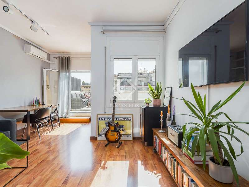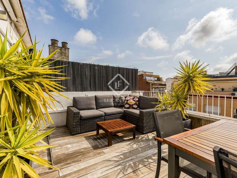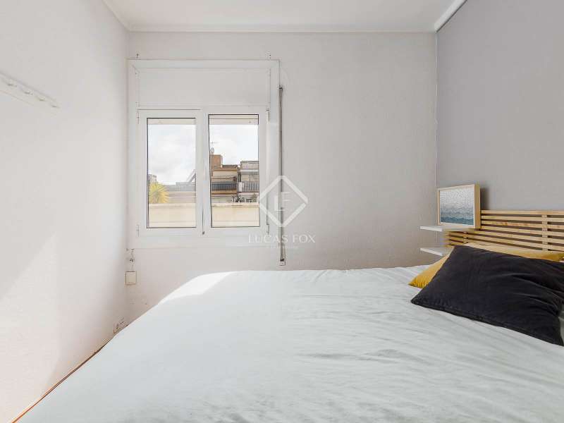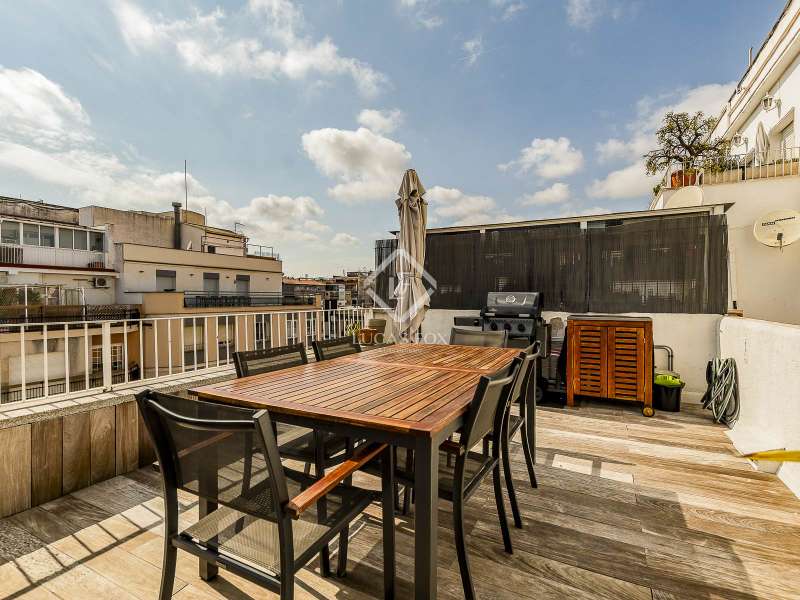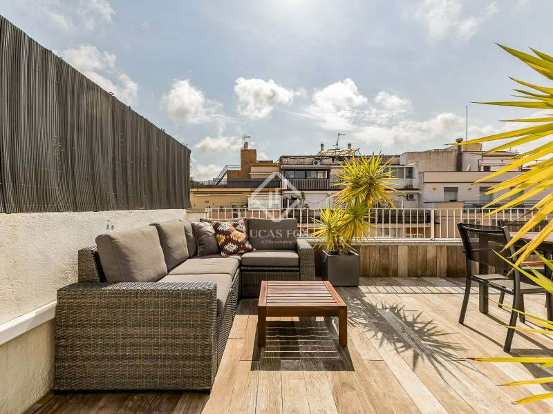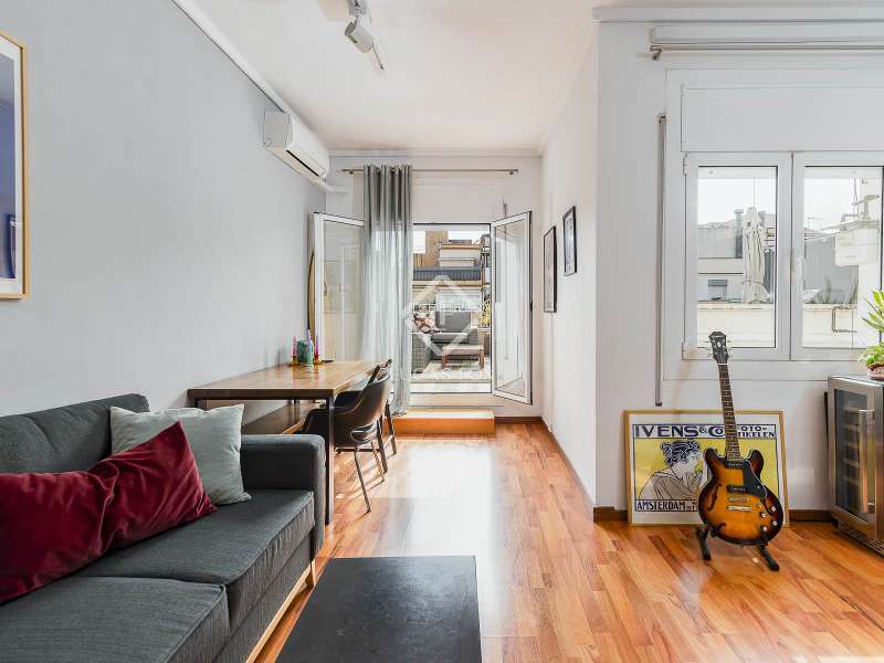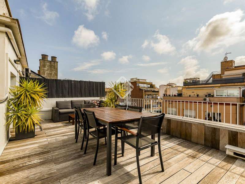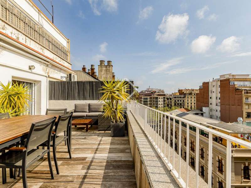 This 57 m² penthouse is situated on the seventh floor of a well-maintained 1963 building with a lift, in the vibrant neighbourhood of Eixample Dreta, Barcelona. Ideal for those seeking a blend of urban convenience and serene living, this property offers two cosy bedrooms, one bathroom, and a spacious 26 m² private terrace, a rare gem for enjoying breathtaking city views and al fresco moments. Step inside to find a thoughtfully designed layout, featuring a bright living room that seamlessly connects to the terrace, filling the space with natural light and offering a perfect spot for relaxation or entertaining. The kitchen is practical and well-proportioned, ready for your personal touch. Both bedrooms provide ample space and comfort, with the larger one offering direct views to the charming terrace. The bathroom is conveniently located, completing the functional layout of this home. The 26 m² private terrace is the true highlight of this penthouse, providing a peaceful retreat above the bustling city, perfect for unwinding, gardening, or hosting friends and family. This property offers a fantastic opportunity to create your dream home in one of Barcelona’s most sought-after locations. Please contact us for further information.