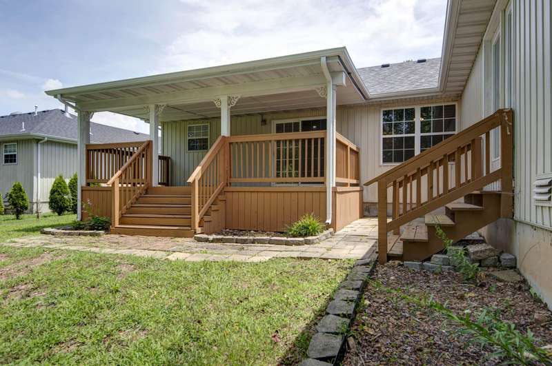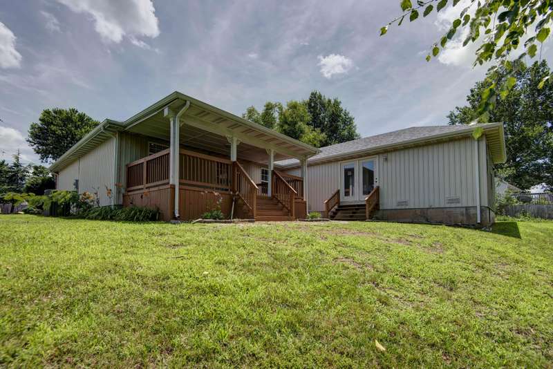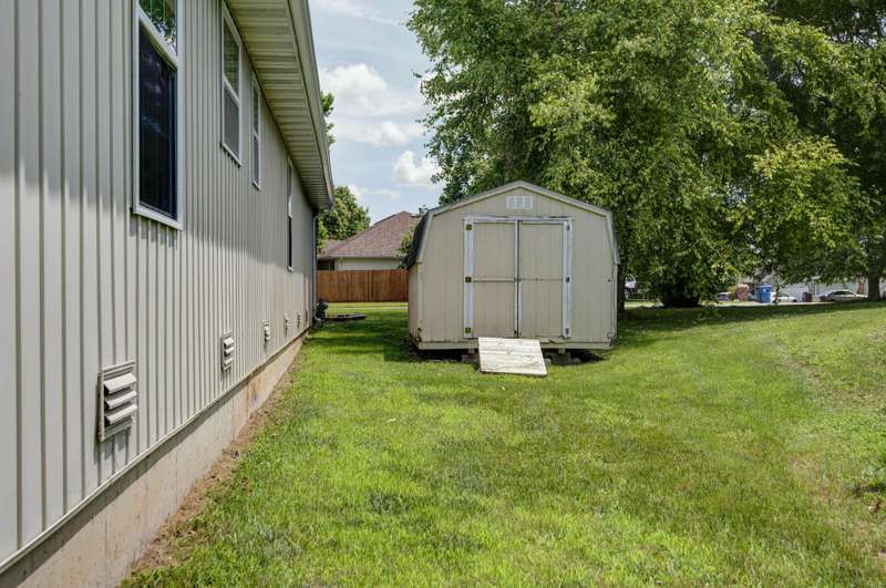 805 S Benson Pl - Welcome to this beautifully updated 4-bedroom, 3-bath home in the heart of Nixa, offering over 2,000 square feet of well-designed living space on nearly half an acre. Alongside the attached two-car garage, the property includes a large storage shed--perfect for tools, toys, or extra gear.You'll be greeted by a classic brick facade and well-maintained landscaping that sets a warm, inviting tone. Step inside to find a light-filled living room with vaulted ceilings, rich oak hardwood floors, and abundant natural light. The layout flows seamlessly into the dining area, which opens to a spacious, covered back deck--ideal for relaxing or entertaining while enjoying peaceful views.The kitchen has been tastefully updated with granite countertops, freshly painted cabinetry, a stainless steel appliance package, and a double oven range for the home chef. This home offers not one, but two spacious primary suites--each with its own walk-in closet, private bath, and elegant details like tray ceilings and a jetted tub. One of these suites is oversized and could easily double as a second living area; it even includes French doors to the backyard and a built-in storm shelter in the closet for added security.Two additional bedrooms are located near a full guest bath, making this layout both functional and flexible. Recent updates include a brand-new roof and stylish new light fixtures throughout. Located in a prime Nixa neighborhood, this move-in-ready home is a must-see!