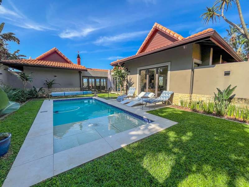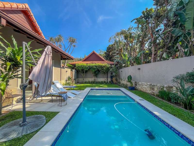 Modern Sanctuary with Scenic Lake, Golf Course & Ocean Views 4-Bedroom Contemporary Home for Sale | Zimbali Estate | Ballito | KwaZulu-Natal North Coast Wake up to breathtaking lake, golf course, and ocean views in this exceptional modern home for sale in Zimbali Estate, South Africa?ÇÖs most exclusive coastal golf estate. Designed as a light-filled sanctuary that blends luxury with nature, this residence offers effortless living, privacy, and panoramic scenery from every level. Expansive stacking doors open the integrated kitchen, lounge, and dining areas onto a north-facing deck that spans the full frontage of the home?Çöperfect for entertaining under the coastal sun. To the rear, a private courtyard garden wraps around a sparkling pool, creating a tranquil retreat for family and guests alike. Accommodation includes two luxurious master suites (one on each level), plus additional en-suite bedrooms that open directly onto the lawn. The lower level features a private home theatre, ideal for relaxation and entertainment. Architecturally inspired by Balinese design, the home welcomes you with natural textures, timber columns, and lush palms. Practical features include ample visitor parking, a triple garage, staff accommodation, and solar-powered energy solutions ensuring efficient, off-grid living. This residence epitomises Zimbali?ÇÖs rare balance of luxury, privacy, and natural beauty?Çöa true sanctuary for the discerning buyer. Key Features: - 4 Bedrooms | All En-Suite | Dual Master Suites - Panoramic Views: Lake, Fairway, Forest & Ocean - North-Facing Orientation with Expansive Decks - Private Pool & Courtyard Garden - Energy-Efficient Inverter, Battery & Solar Power - Triple Garage & Visitor Parking - Staff Accommodation & Ample Storage - Contemporary Design with Luxury Finishes World-Class Zimbali Estate Amenities: - 3.5 km of pristine beachfront access - Championship 18-hole Golf Course - Tennis & squash courts, cricket nets, soccer pitch - Resort-style pools & resident clubhouses - Five-star gym, spa & wellness facilities - Walking trails, birdwatching & indigenous forest paths - Fine dining & luxury hospitality at The Capital Zimbali Hotel Live the lifestyle you deserve ?Çô book your private viewing today.