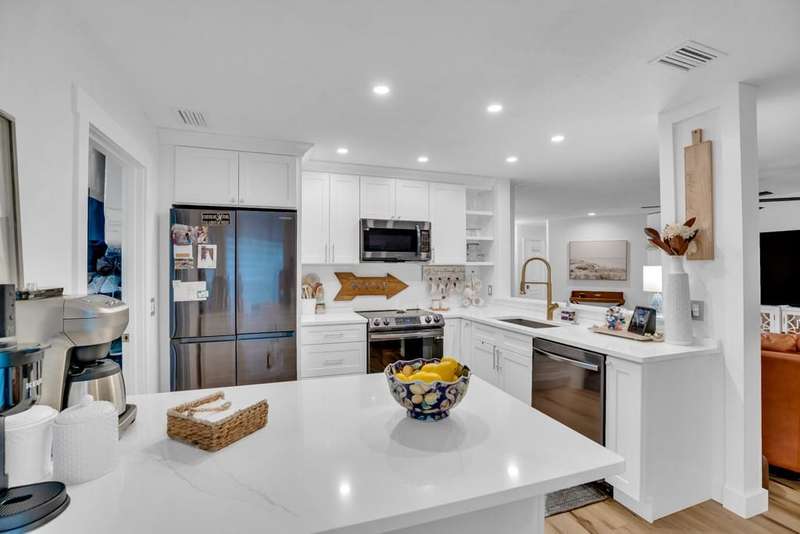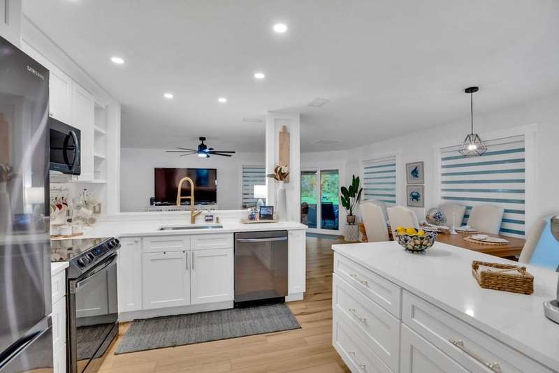 Dream Home TOTAL Renovation with ALL NEW: Impact Windows, Oversized A/C, vents/ducts, Hot Water Heater & Plumbing. Wood-Grain Plank Luxury vinyl floors throughout, Gorgeous Kitchen with gorgeous Quartz Counters, White Shaker Cabinets & High-End Appliances. ALL Updated baths with spa-like finishes. Rebuilt screened porch with peaceful backyard views. Connected to city water, well irrigation, NO HOA. Charming neighborhood close to parks, river, shopping & dining & beaches. FEELS like NEW Home MUST SEE! Sizes are approx/subj to error.