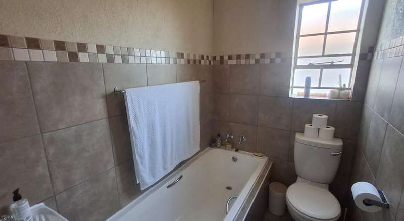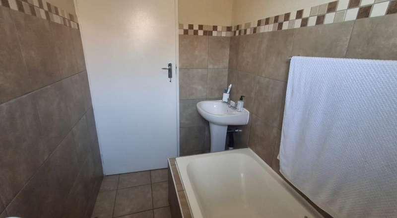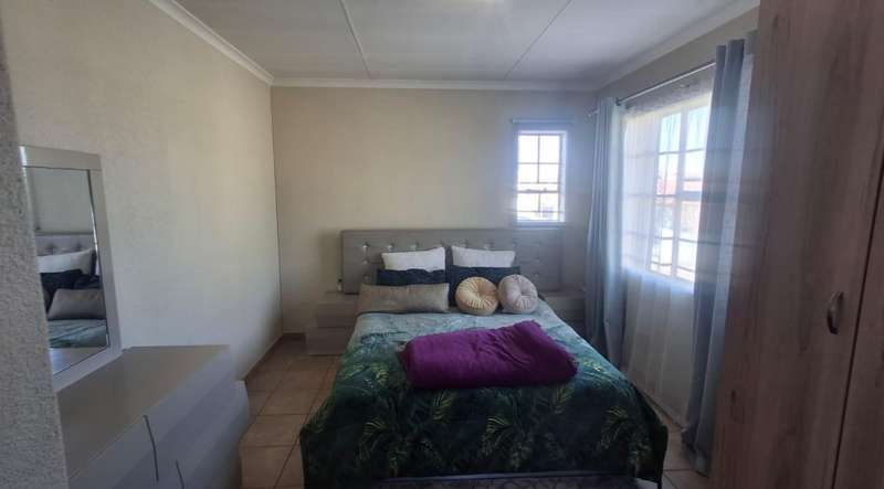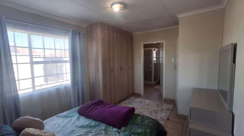 This neat property is offering 3 bedrooms on the upper floor and 2 bathrooms with main with en-suite (shower, toilet, and basin) and second bathroom with(bath, toilet, basin) as well as a guest toilet downstairs, for more privacy and convenience. A garage converted into a 4th bedroom can be convenient for guests or extra family members or can be used as an extra lounge or TV room. An open plan design kitchen with ample built-in cupboards and electric stove, extractor fan where you can prepare your family meals and flows to an open plan design lounge/dining area. Enjoy your space, relax and braai with family and guests on a neatly paved front portion of the property. This property offers carports that can accommodate 4 vehicles. A complex which takes your security seriously with 24 hours guarded security access control and has a private school, crèche, and a playground for children and with easy access to highways, public transport, good schools, malls and various amenities. Contact me now for an exclusive viewing appointment!