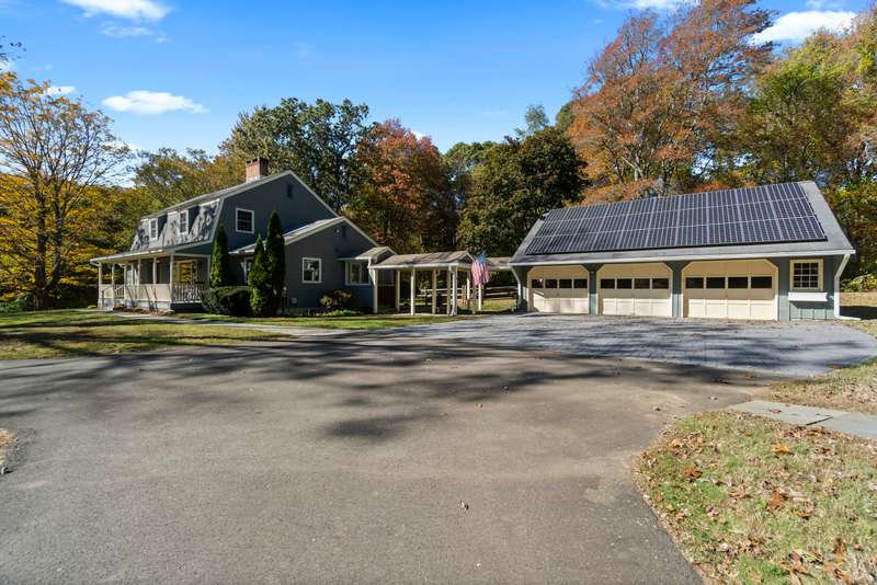 Discover the best of Connecticut shoreline living at 11 Trolley Crossing in Old Saybrook-a private 3+ acre compound blending classic Colonial architecture with modern luxury. Designed for those who value space, comfort, and connection, this 3,600 sq ft residence invites you to experience an exceptional lifestyle surrounded by nature and minutes from the coast. A covered front porch opens to expansive, light-filled rooms where timeless craftsmanship meets everyday convenience. The kitchen fireplace creates a welcoming centerpiece for gatherings, while a second fireplace in the living room adds warmth and style. The first-floor primary suite allows for true one-level living, complemented by four additional bedrooms upstairs. The walk-out lower level features a third fireplace, half bath, and flexible space ideal for an in-law, recreation room, guest suite, or studio. Step outside to your own resort-style oasis an in-ground pool, pool house with full bathroom, and extensive stone patio de