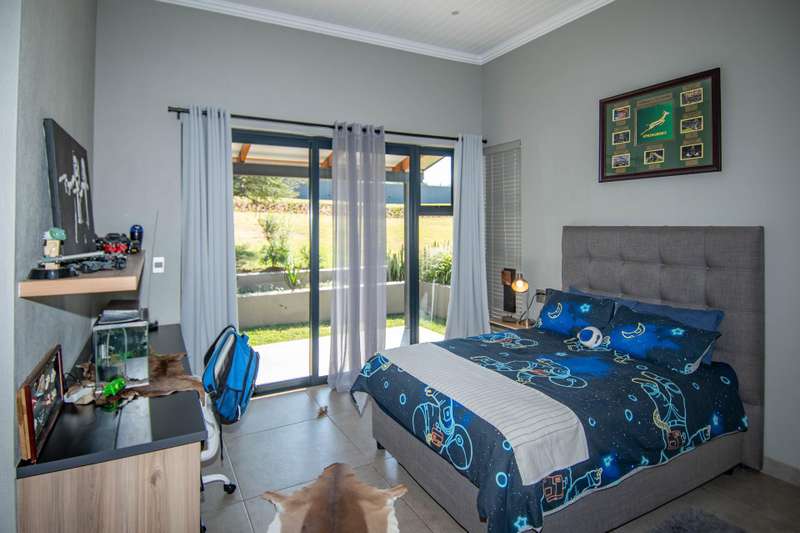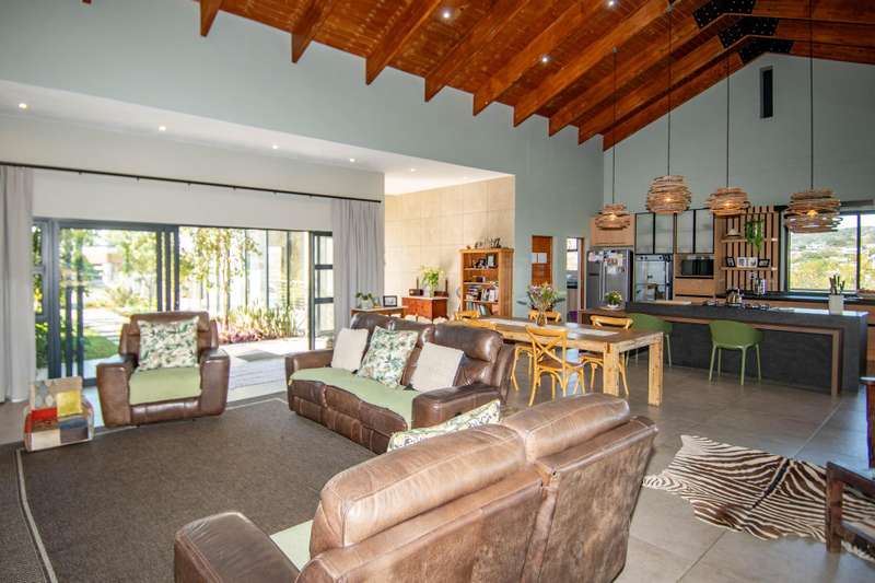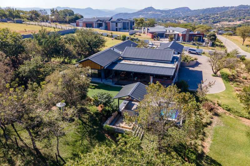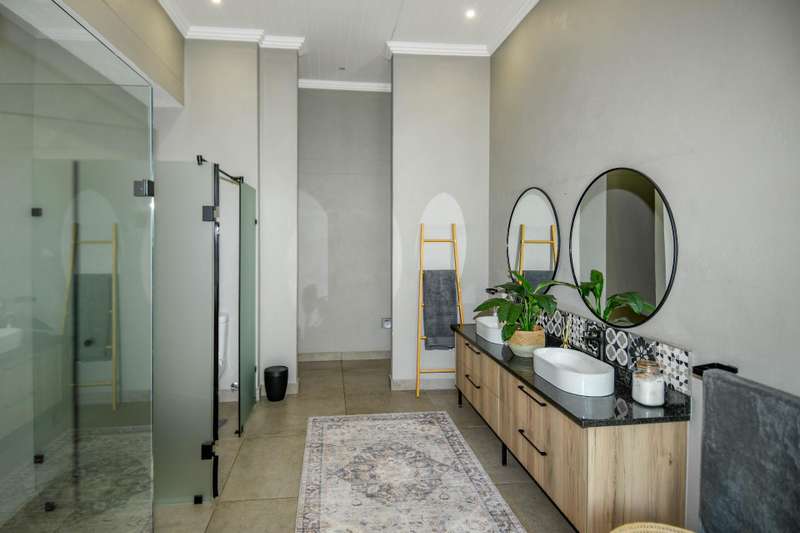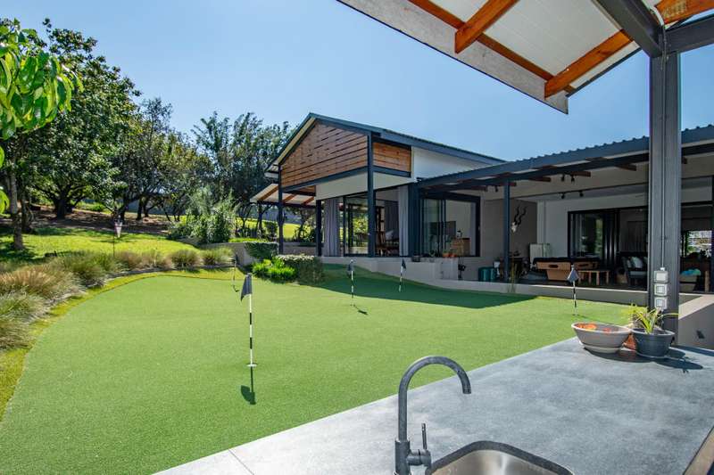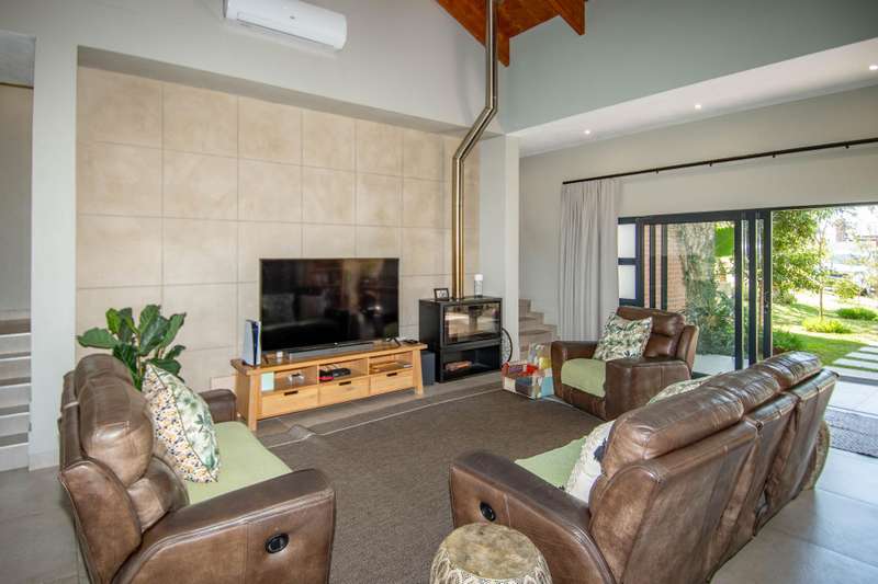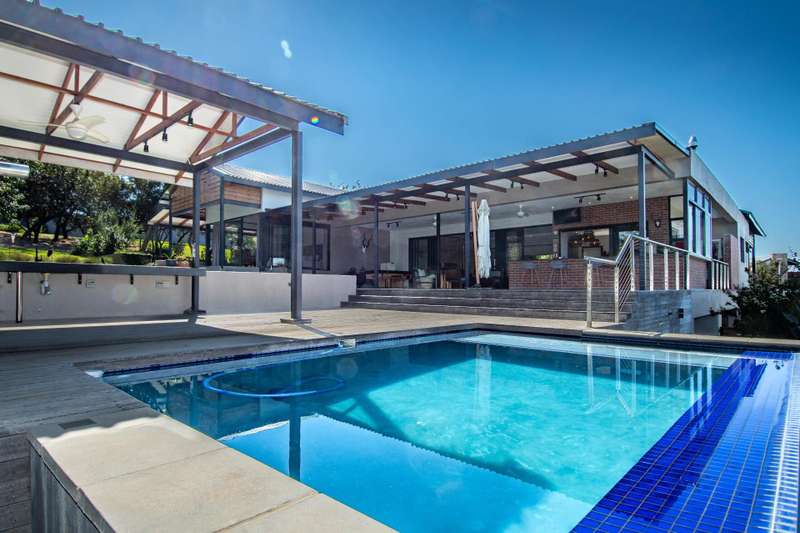 Discover this stunning 12310m?? stand with a spacious 890m?? home in the heart of The Rest Eco Estate. This modern 4-bedroom residence boasts ensuite bathrooms, a private study, and guest toilet. The open-plan living area flows seamlessly into a beautifully designed kitchen with a scullery and pantry. Enjoy the ultimate in outdoor living with a built-in braai, stylish bar, expansive lounge, deck, putting green, boma, and a sparkling overflow pool. Designed for comfort and sustainability, the home features 20 solar panels, an inverter, and 30,000 litres of backup water storage. With 4 automated garages and 2 under-roof parking bays, this home offers both luxury and convenience. Nestled in a secure estate with breathtaking views, this property is perfect for families seeking space, style, and peace of mind. Don?ÇÖt miss out ?Çô your dream home awaits!