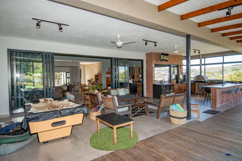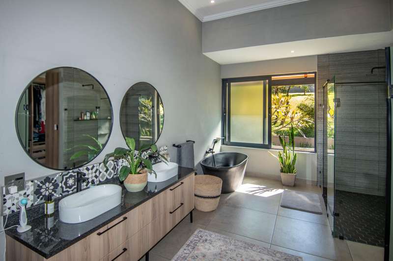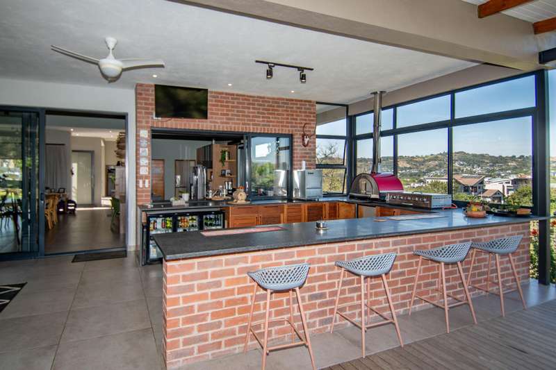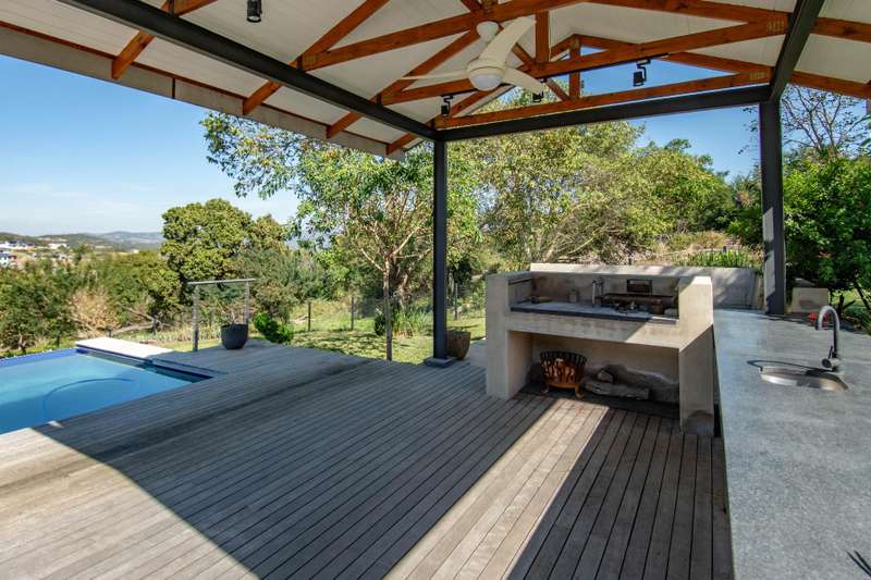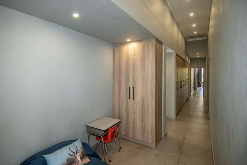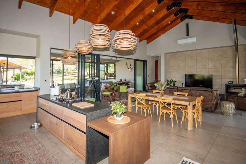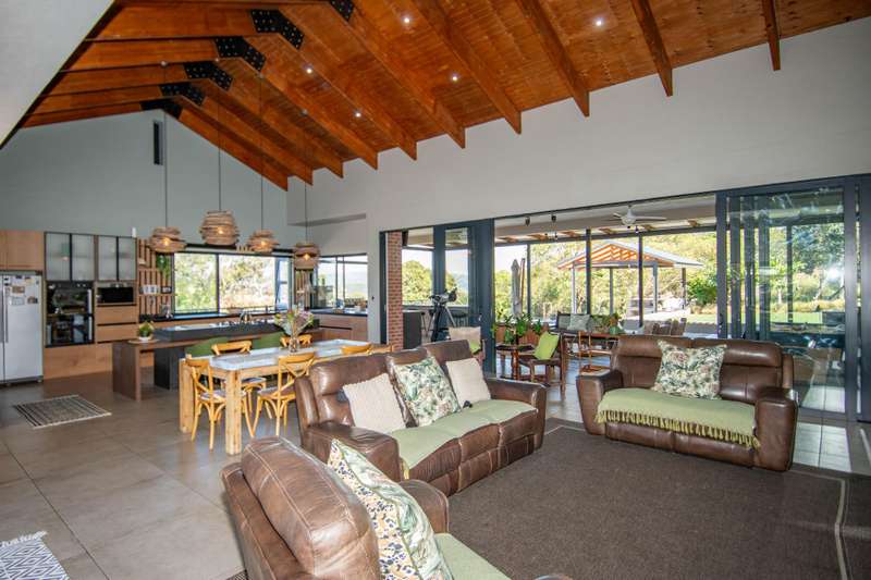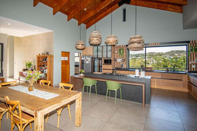 Discover this stunning 12310m?? stand with a spacious 890m?? home in the heart of The Rest Eco Estate. This modern 4-bedroom residence boasts ensuite bathrooms, a private study, and guest toilet. The open-plan living area flows seamlessly into a beautifully designed kitchen with a scullery and pantry. Enjoy the ultimate in outdoor living with a built-in braai, stylish bar, expansive lounge, deck, putting green, boma, and a sparkling overflow pool. Designed for comfort and sustainability, the home features 20 solar panels, an inverter, and 30,000 litres of backup water storage. With 4 automated garages and 2 under-roof parking bays, this home offers both luxury and convenience. Nestled in a secure estate with breathtaking views, this property is perfect for families seeking space, style, and peace of mind. Don?ÇÖt miss out ?Çô your dream home awaits!