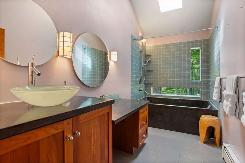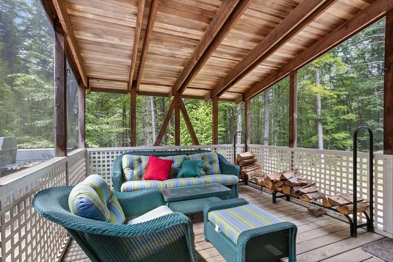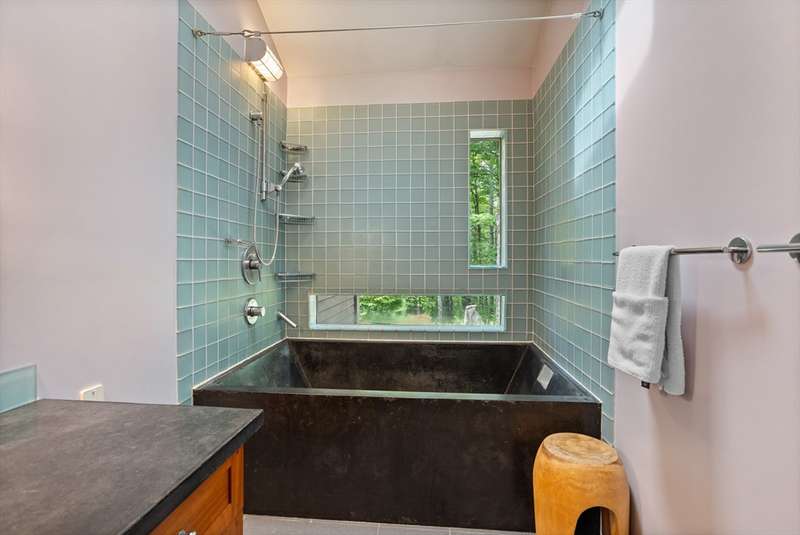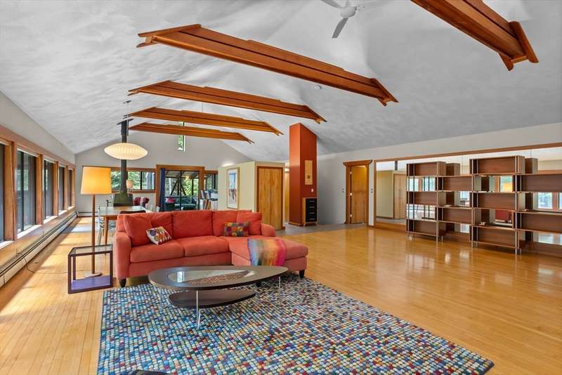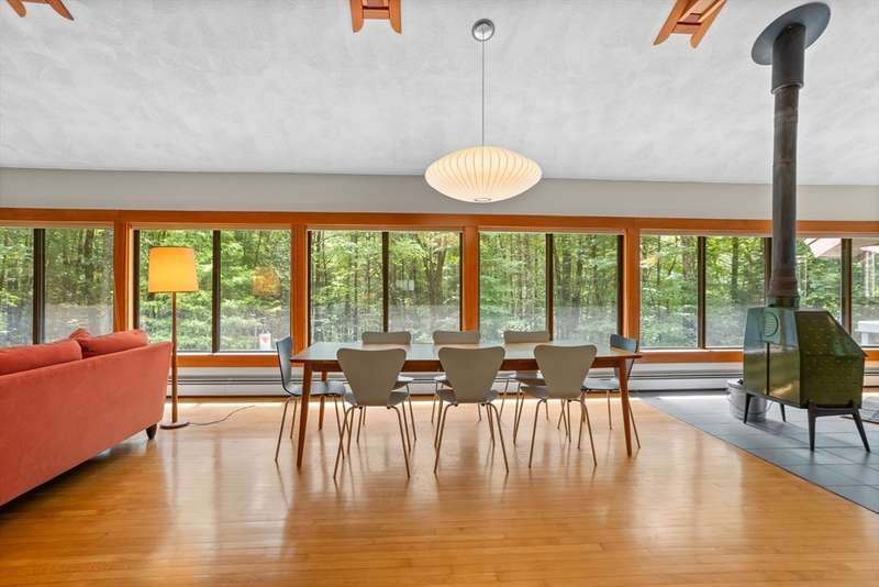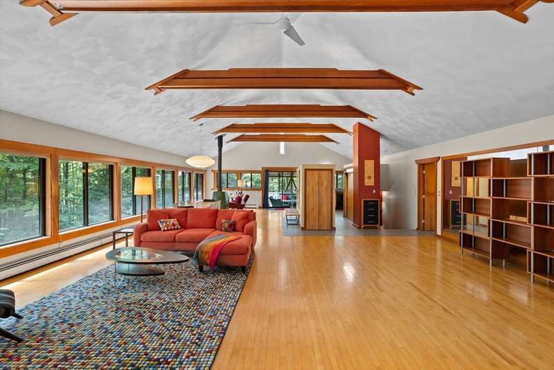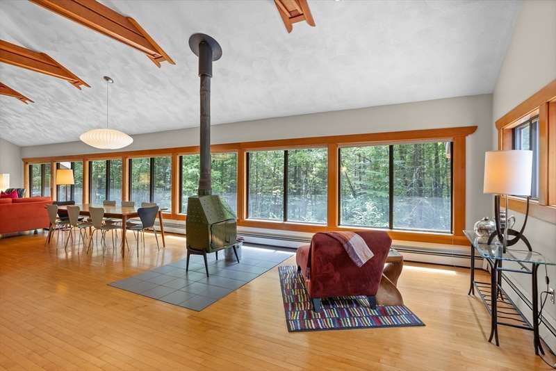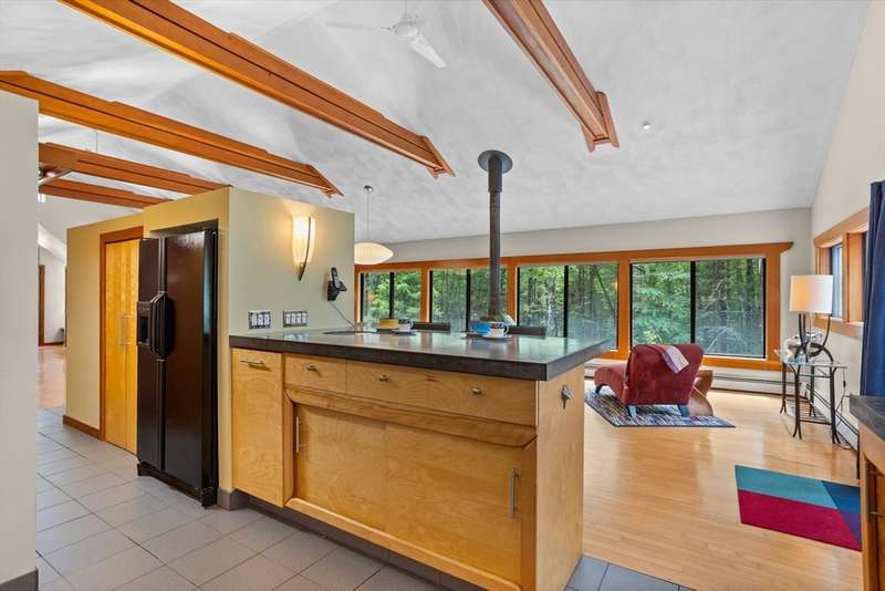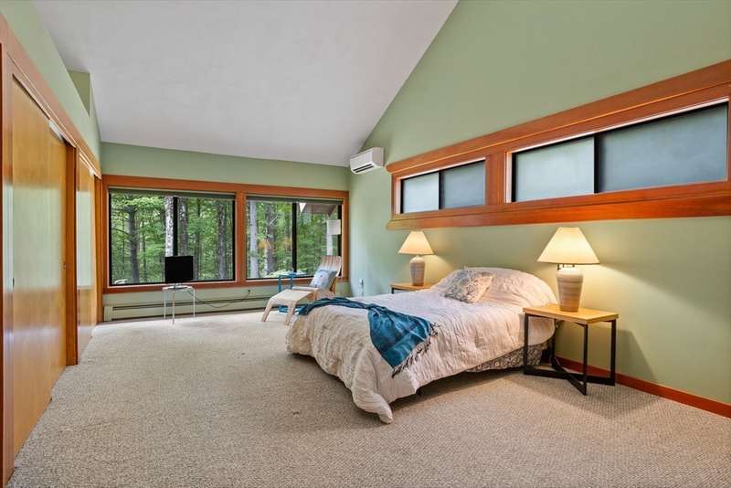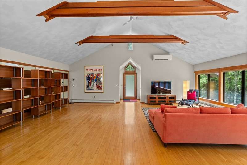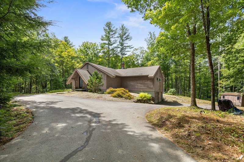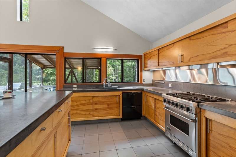 Discover this spacious 4 BR, home set on 4 acres of tranquil, wooded beauty. This home offers an open concept living space with gleaming hardwood floors and soaring cathedral ceilings framed by walls of windows, this home blends modern comfort with the serenity of nature. In the chef's kitchen, which features a Viking 6 burner stove and a two compartment dishwasher, a perfect place for cooking, entertaining and creating memories. The spacious first floor primary bedroom features cathedral ceilings, and generous closet space, the bathroom features a deep soaking tub with shower, while across the hall, there is a separate water closet with storage. Downstairs, you'll find three additional bedrooms each offering excellent closet space, along with a full bath featuring a double vanity. A convenient laundry room and adjoining workshop completes the home. Whether you are relaxing taking in the outside, hosting gatherings, exploring the outdoors, this home is a hidden sanctuary!