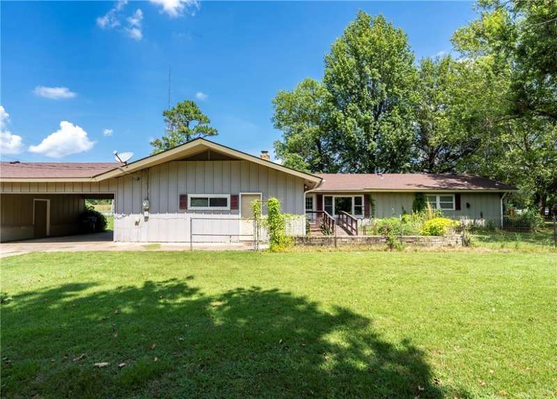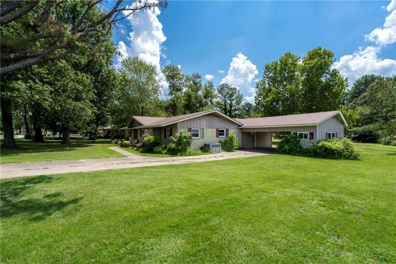 Charming ranch-style home on a spacious 1-acre, tree-shaded lot?perfectly situated across from the beautiful campus of John Brown University! This inviting single-story residence features a classic brick exterior with attractive shutters and a welcoming gable entryway. Inside, large windows fill the home with natural light, creating a bright and airy atmosphere throughout the comfortable floor plan. Perfect for both relaxing evenings and lively gatherings, the home offers generous living spaces and a cozy front and back porch to enjoy the tranquil surroundings. The expansive yard is ideal for gardening, entertaining, or simply unwinding under the shade of mature trees. Ideally located near schools and downtown, you'll enjoy quick access to shopping, dining, entertainment, parks, and the local amphitheater. Newer windows and stainless appliances. This home is ready for updates & renovation to make it the perfect home to blend comfort, charm, and an unbeatable location?truly a must-see!