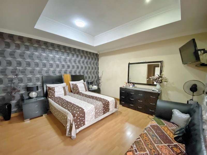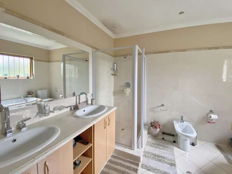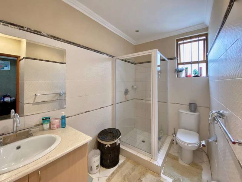 Set in a quiet, 24 hour security-controlled boom and in an access-controlled complex lies this low maintenance home. This home welcomes one through an entrance hall leading onto one of two lounges offering a private layout and dining room. The warm wood kitchen offers granite tops, chrome finishes and space for appliances and breakfast nook area. The family room features stackable doors opening onto the manicured garden set in peaceful surrounds. The 3 bedrooms offer warm finishes with good natural lighting and are serviced by 3 upmarket bathrooms. With double automated garaging plus additional parking for visitors, this home also offers modern finishes throughout with all rooms en-suite plus a guest toilet. This home will gladden your family?ÇÖs heart!