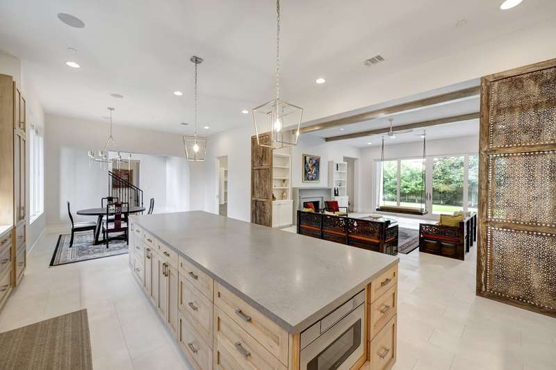 This remarkable residence blends timeless elegance w/modern design. Home was custom built by Brian Thompson for current owners and completed in 2020. Enter elegant foyer flanked by spacious formal living room & formal dining room. Impeccably curated living spaces, the home offers refined comfort at every turn. A chef's kitchen outfitted w/premium appliances & sizeable island opens to breakfast room & light filled family room. Family room boasts fireplace & opens to covered verandas & courtyard w/room for pool. Wonderful primary down w/spa-like bath & large walk-in closets. 2nd bedroom & study down. Two other bedrooms & large game room up. All bedrooms are generous w/ensuite baths & large walk-in closets. Fabulous guest house with living area & bedroom, perfect for retreat for extended stays or multi-generational living. Large separate play yard. Perfectly located wet bar. Expansive windows fill the home with natural light. Home office. Truly a remarkable home. All info per Seller.