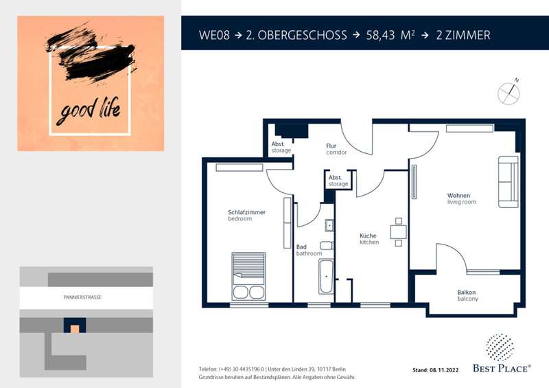 The 2-room apartment on the 2nd floor is perfect for couples or singles. The two rooms can be entered separately via the hallway. The kitchen with window offers enough space for a seating area. Two storage rooms in the hallway are particularly practical. The bathroom with window is equipped with a bathtub. The south-facing balcony can be reached via the living room. For investors only!