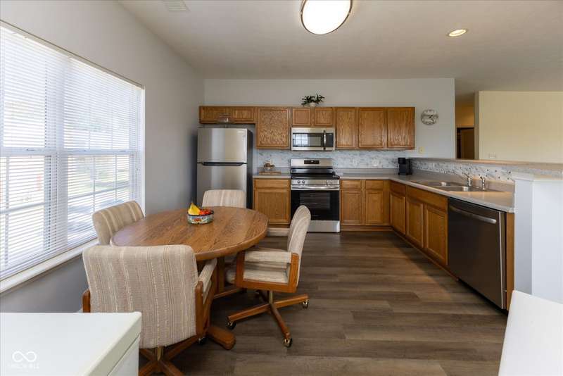 Welcome to this light, bright and low maintenance condo in Plainfield! Jump on this opportunity to earn equity with a 2 bedroom/2 bath/2 car garage home. The kitchen backsplash sparkles and is offset by the new appliances and luxury vinyl plank flooring in the great room and kitchen! Imagine yourself coming home after a long day without having to worry about yard work. Relax in the spacious and open great room and kitchen with plenty of room for entertaining. Go for a bike ride or take a dip in the community pool across the street on hot days! Watch sunsets on the balcony or grab a friend or a pet and take a stroll on the sidewalks or trails of Plainfield's amazing trail system. Visit the local shops and restaurants of Plainfield or make the short trip to Indy for even more fun! Live your best life now and enjoy a transferable Seller's home warranty for peace of mind on your new home!