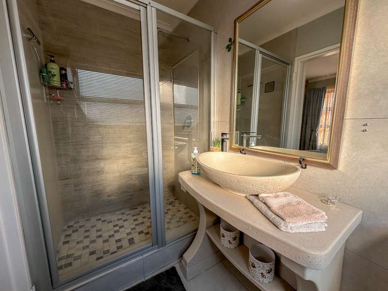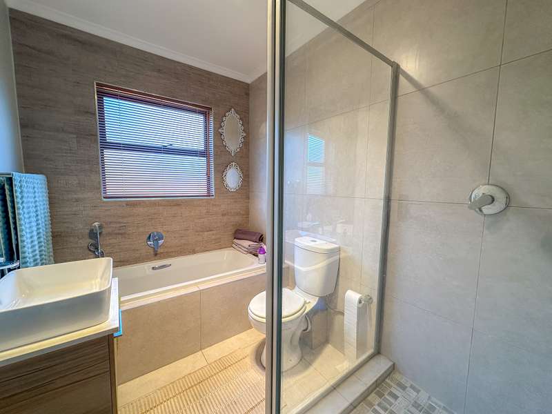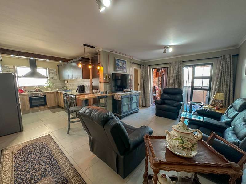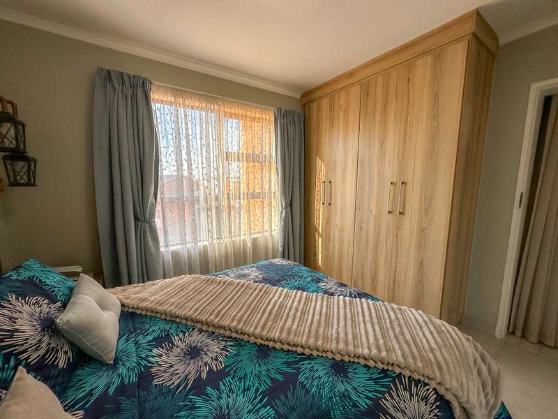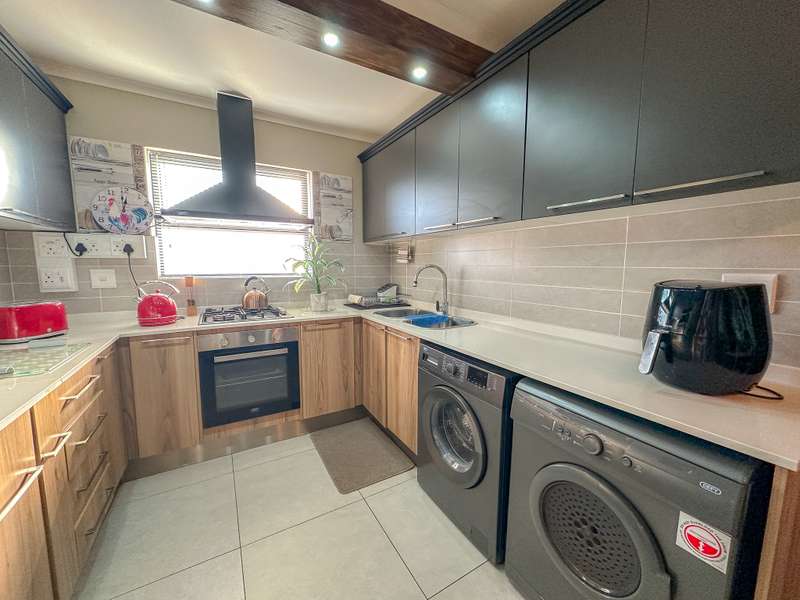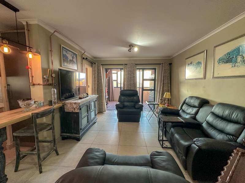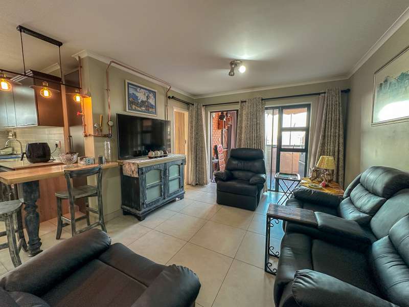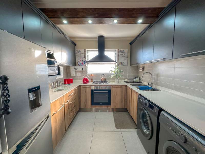 Stylish Living in Golden Fields Estate – Just Move In! Step into comfort and contemporary charm with this immaculate 3-bedroom apartment located in the highly desirable Golden Fields Estate. Freshly painted and move-in ready, this home offers a seamless blend of functionality and modern style. The spacious open-plan kitchen is a standout feature, equipped with a gas stove, electric oven, and ample built-in cabinetry. A cozy breakfast nook sets the scene for relaxed mornings, and you’ll love the added convenience of two refrigerators, a washing machine, and a tumble dryer—all included. The main bedroom offers a peaceful retreat with its private en-suite bathroom, while the two additional bedrooms are thoughtfully designed for comfort and share a stylish full bathroom. The expansive living area flows effortlessly onto a fully enclosed, all-weather balcony featuring a built-in gas braai—perfect for entertaining, rain or shine. Extras You’ll Appreciate: Gas geyser for energy-efficient hot water Automated double garage for secure parking Elegant curtains, a custom TV unit, and matching breakfast nook chairs—all part of the package This is more than just a home—it's a lifestyle upgrade. Don’t miss your chance to own a beautifully maintained apartment where luxury meets everyday convenience.