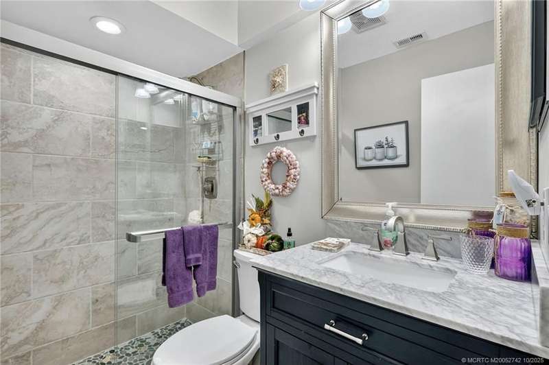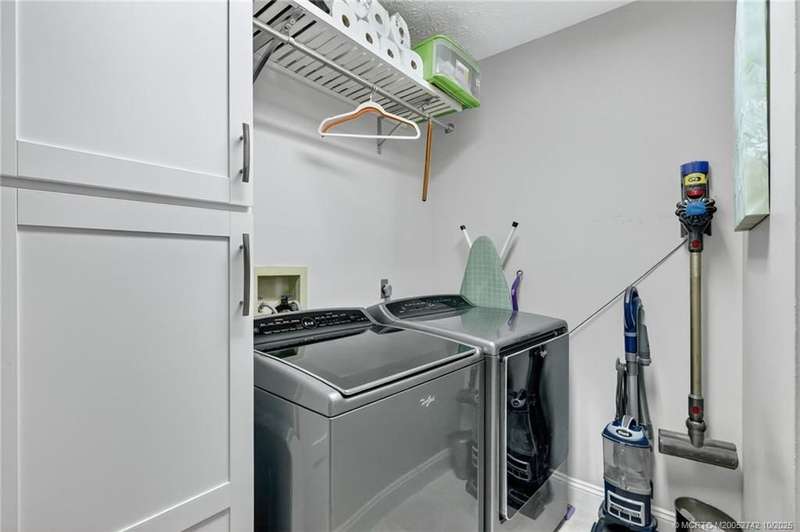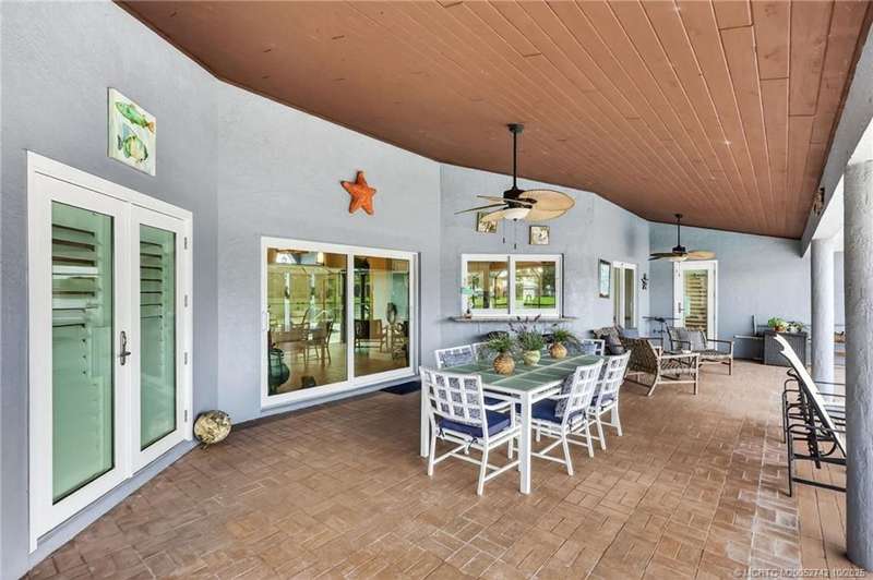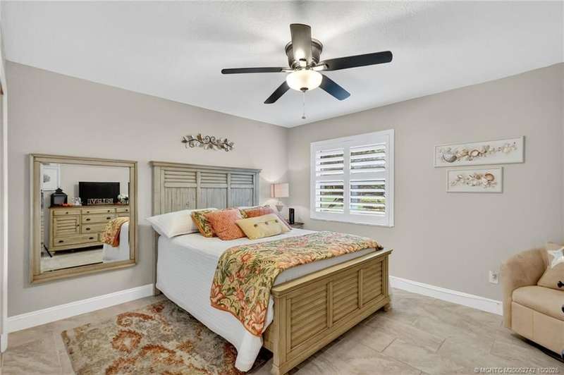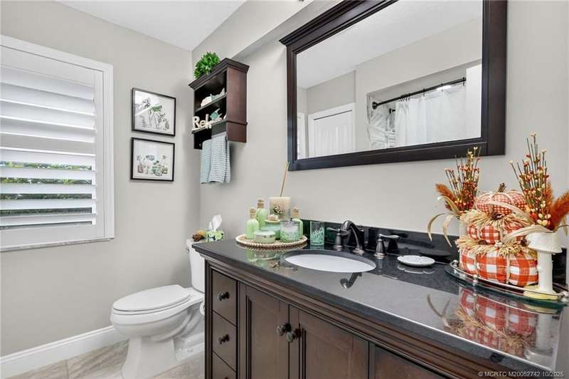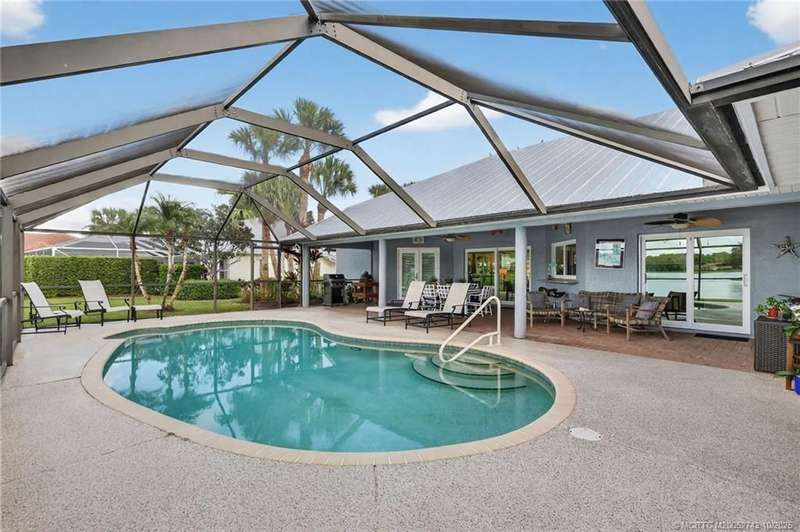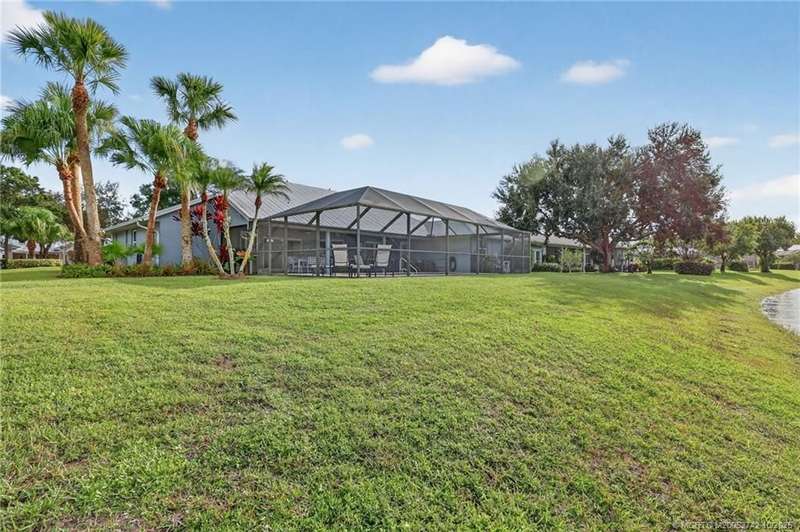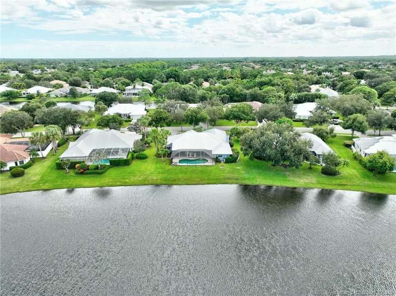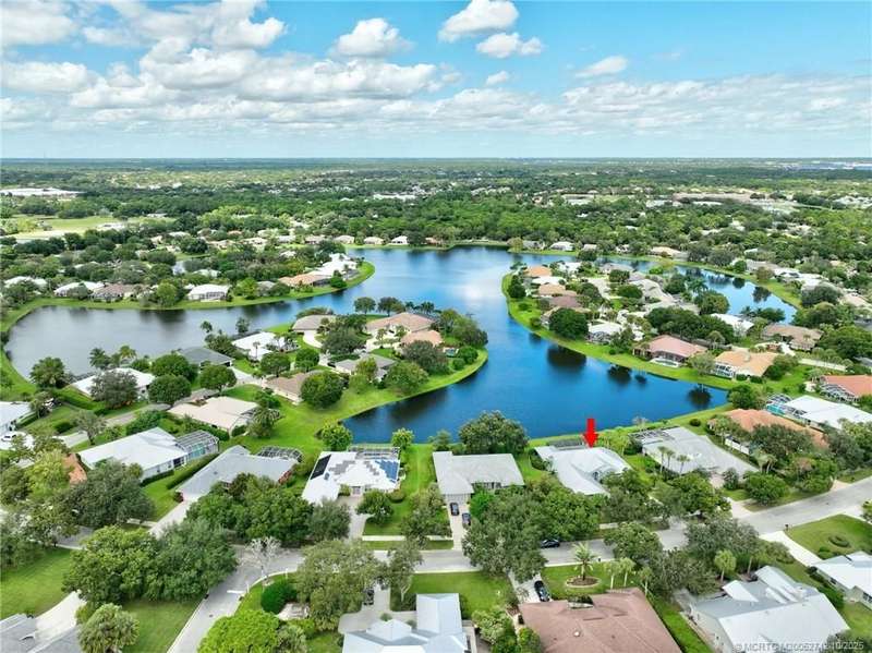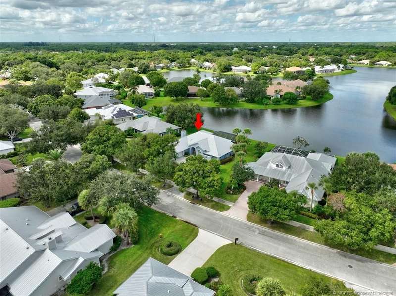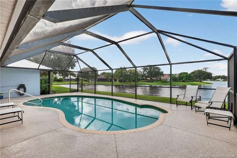 Danforth, a ch?rming g?ted c?mmun??t?? ??n ??lm City, Florida, offers ? s?rene, family-friendly lifestyle with lush tropical surroundings. Residents enjoy walkable access to top-rated A schools, proximity to shopping, dining, parks, golf courses, and easy Turnpike connectivity. Low HOA fees, blending privacy, convenience, and warmth for families, professionals, and retirees. This stunning single-story home features a thoughtful layout with a living room boasting vaulted ceilings. The modern kitchen highlights granite countertops, stainless steel appliances, and a gas cooktop, complemented by a dining area with a custom fireplace. Three bedrooms and three updated bathrooms offer stylish fixtures and ample storage. Outside, a pool, spacious screened lanai, and breathtaking lake views create an ideal retreat. The lush, palm-accented yard adds tropical charm. Other features include impact windows/doors, a 500-gallon gas tank, 22 KW generator, two-car garage, and elegant tile flooring.