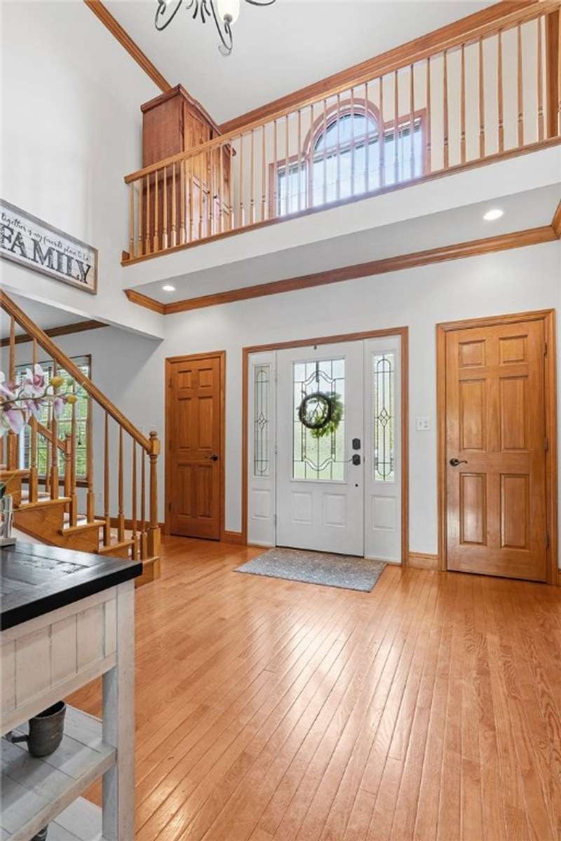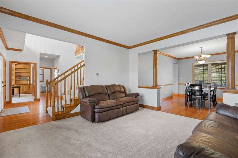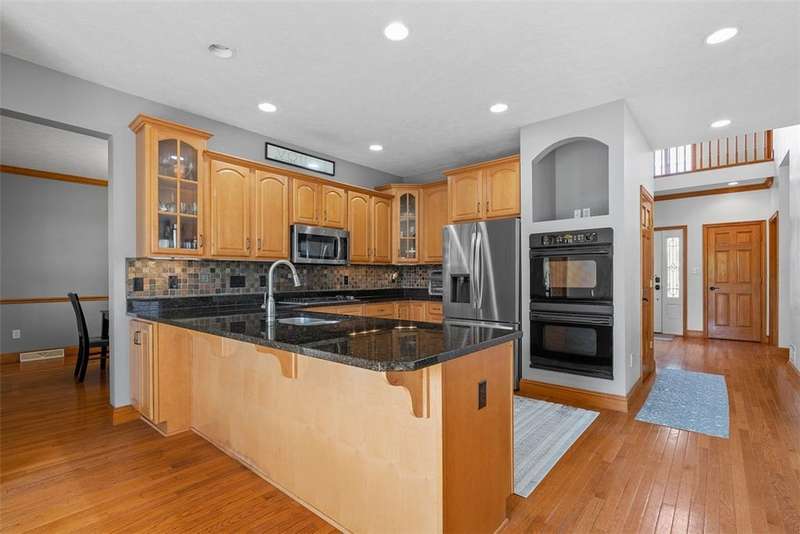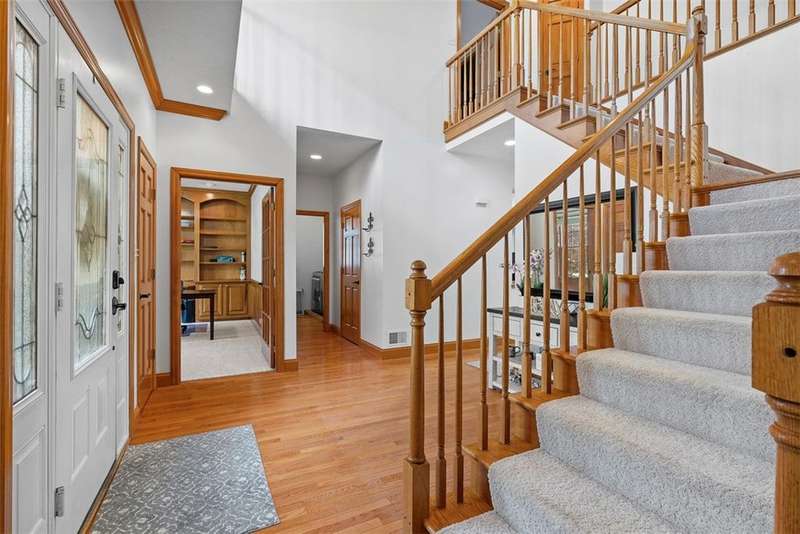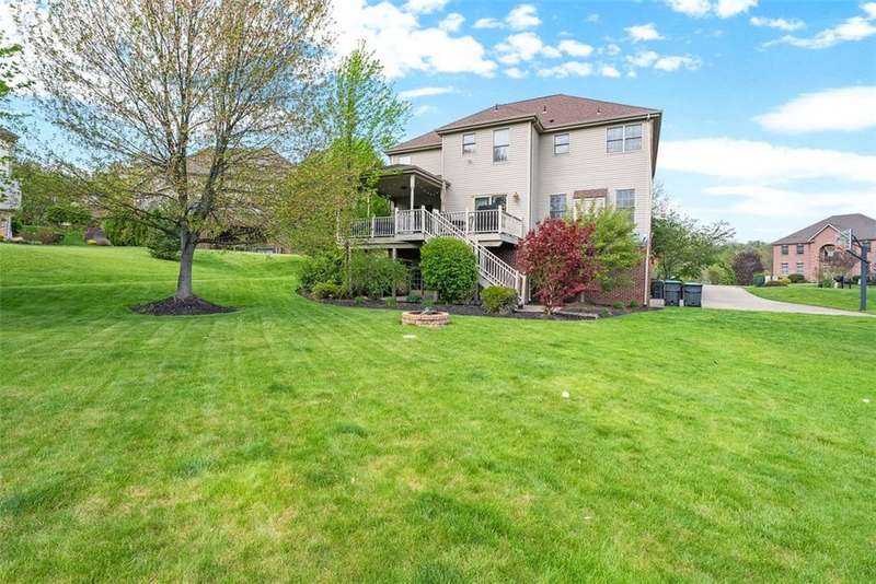 Nestled in a cul-de-sac in the Preserve East neighborhood, this custom-built home blends elegance with comfort. Boasting 3 sides brick and a spacious 3-car side-entry garage, the home features a flat, usable backyard and an expansive composite deck?partially covered?with stairs leading to a covered patio, perfect for entertaining. Inside, a 2-story foyer welcomes you with hardwood floors and graceful wooden staircase. Den includes custom built-ins and recessed lighting, while the LR and DRs impress w/high ceilings, crown molding, chair rail, and stately wood pillars. Gourmet kitchen showcases granite counters, a stone backsplash, double ovens, and a bright breakfast nook open to the cozy family room with a gas fireplace. Vaulted primary suite offers a large walk-in closet, soaking tub, dual sinks, and separate shower. Guest suite w/private bath. BRs 3 & 4 share a Jack & Jill bath. Finished lower level features full bath and game/media room w/access to lower level patio.