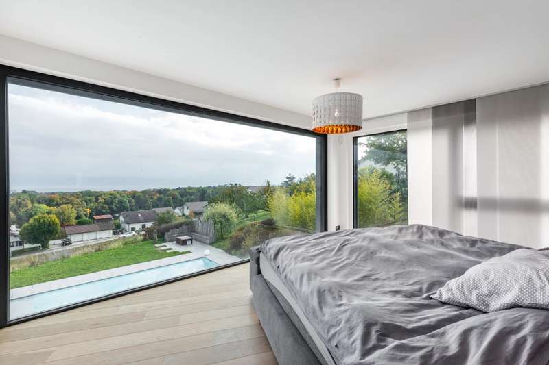 Located in a quiet, sought-after area of Lully, this elegant 7.5-room house offers a harmonious blend of comfort, space and serenity. Bathed in light, the 315m2 villa boasts five spacious bedrooms, ideal for a family or for entertaining, as well as large, bright living areas opening onto the garden and terrace. The generous attic space can be used as a TV lounge, games room or bedroom. The fully finished and heated basement features a guest bedroom and shower room, a games room, a gym, a cellar and a laundry room, not forgetting access to the double garage. The 1485m2 plot enjoys panoramic lake views, providing a peaceful and inspiring atmosphere all year round, with optimal sunshine day after day. Outside, the carefully landscaped garden is home to a heated swimming pool, a brazier and relaxation areas, perfect for enjoying fine days and evenings in complete privacy. Underfloor heating by a heat pump, coupled with a free-cooling system, ensures easy, pleasant temperature management. Home automation and security alarms add to the villa's ease of use. Combining modern amenities with a privileged location, this villa offers an exceptional living environment, just a few minutes from Morges, close to schools, transport and motorways. A rare address, combining elegance, comfort and art of living.