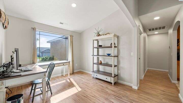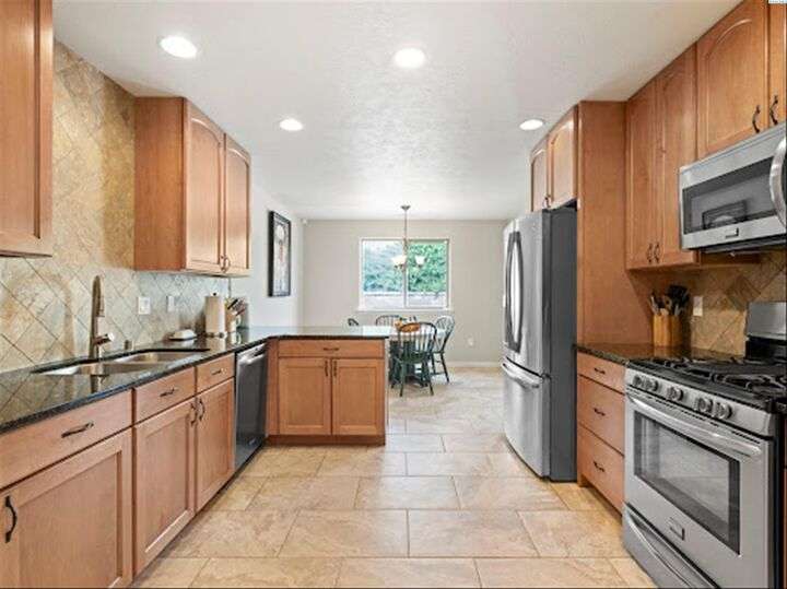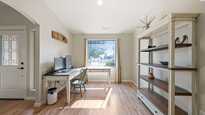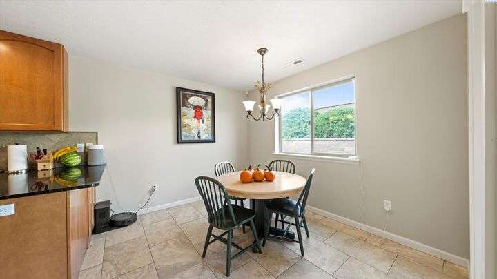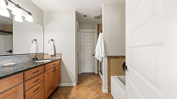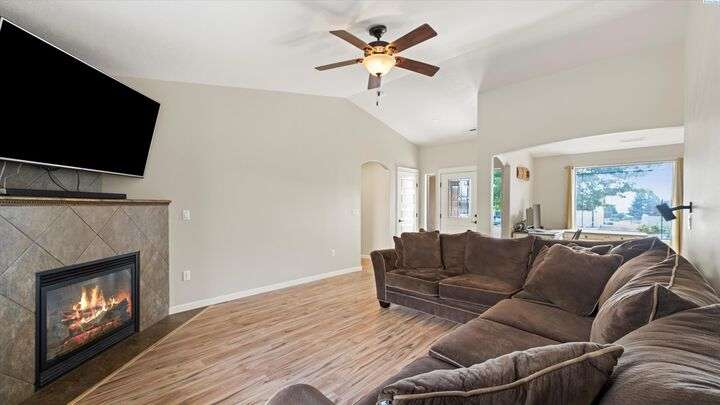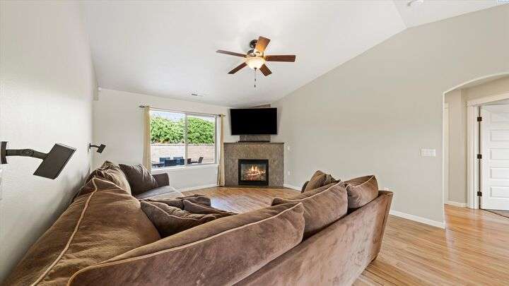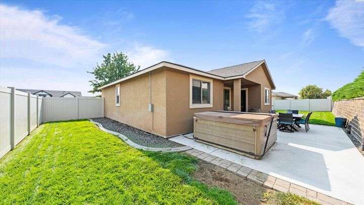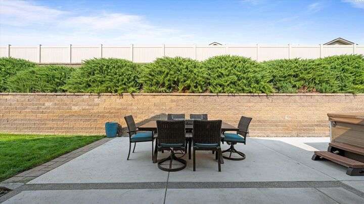 MLS# 287432 Welcome to 6307 Pimlico Dr in West Pasco, a quality-built stucco rambler offering 3 bedrooms, 2 baths, and a spacious 3-car garage with easy highway access to all of Tri-Cities. Step inside to vaulted ceilings in the living room with a cozy corner fireplace and newer laminate flooring, plus a versatile formal dining or office space off the entry. The kitchen impresses with elongated cabinetry, granite counters, full tile backsplash, and a gas stove. The split-bedroom design ensures privacy. The primary suite features vaulted ceilings, while the primary bathroom has a soaking tub, sleek shower insert, dual sinks, private toilet room, and a large walk-in closet. Outside, enjoy a private backyard with block landscaping, vinyl fencing, and a covered patio with extended concrete and hot tub hookups—perfect for relaxing or entertaining. The outdoor shed is included as well. It's a must see house!