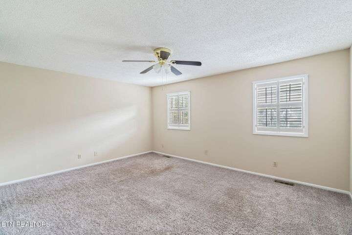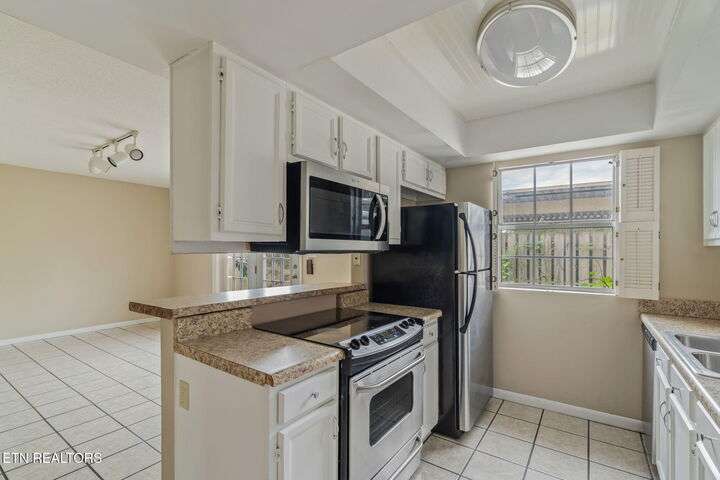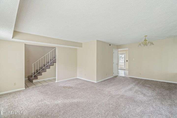 West Knoxville townhouse designed for low maintenance living. Galley kitchen with opening to the dine in area. Powder room and laundry closet with washer & dryer on the main level. Large living & dining room. Go up the carpeted steps to the master bedroom & bath suite which is spacious and has a nice walk-in closet. The second bedroom features a walk-in closet. The third bedroom serves as a bedroom or office. Enter through the covered carport to a screened porch and extra storage room. EXTRA PARKING SPACES NEXT TO UNIT NEW fence and patio enclosure in process.