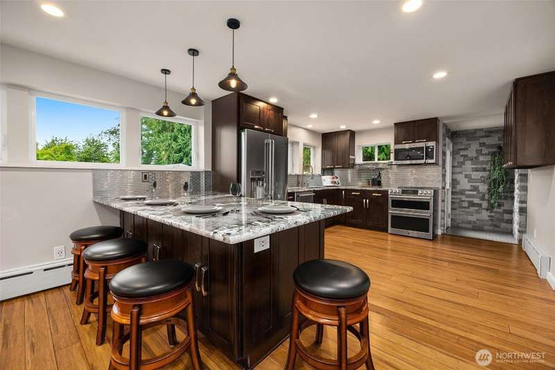 Welcome home to this spacious 3 bed, 1.75 bath 1 story home with a finished basement in the highly desirable Maple Leaf neighborhood. With 2,140 sq ft of living space, this home sits on a double lot totaling 10,218 sq ft and features a rare 3-car garage. Enjoy stunning Olympic Mountain views from this peaceful house on a quiet dead-end street. The daylight basement, featuring a separate private entrance, offers a full second kitchen, family room and roomy laundry center, making it perfect for multi-generational living, guests, or potential rental use. Just 10 minutes from the Northgate Light Rail Station for easy commuting and close to Northgate Mall’s shopping and dining options, this home blends convenience with tranquility.
