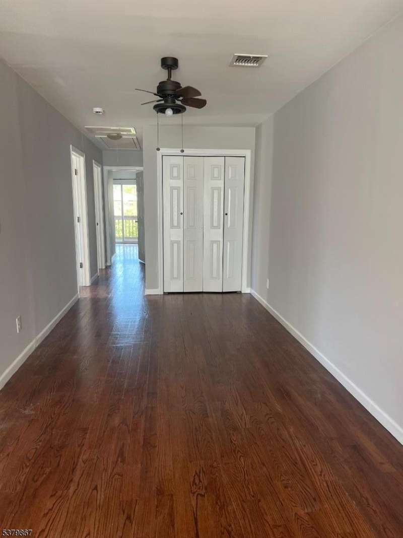 This second-floor unit, recently refreshed with a new coat of paint and finish floors, features a living room with a walk-out balcony situated at the front of the house, a dinning room, and a kitchen. The main bedroom includes a separate bathroom, a walk-out balcony, and two separate his and her closest. Another bathroom is exclusively reserved for the addition bedrooms. It's equipped with central air conditioning and recessed lights.