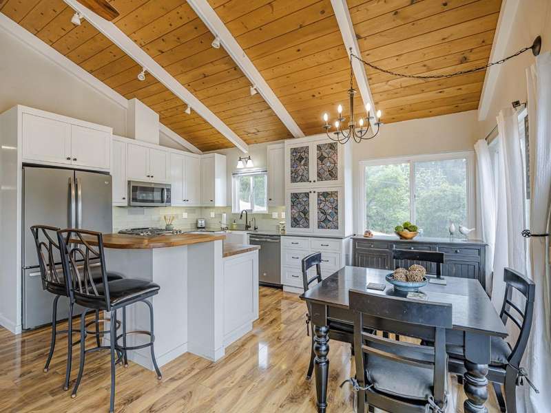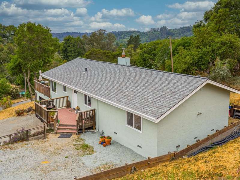 This well crafted home sits atop a sunny knoll in the gated community of Allan Lane, offering privacy, space, and sweeping views. Inside, enjoy a light-filled living room with vaulted ceilings and an open great room concept, perfect for modern living. The stunningly updated kitchen is a true showstopper, ideal for cooking or entertaining. Large glass doors open to a spacious view deck, creating seamless indoor-outdoor flow. Soak in the hot tub under the stars or host unforgettable gatherings. Set on three-quarters of an acre, there's room to garden, unwind in nature, bird watch, or enjoy the serene setting. You'll love the sunny exposure and Mediterranean climate with warm days and cool evening coastal breezes. Additional highlights include a new roof, garage, and shop that could serve as a Junior ADU, and extra parking for boats or RVs. Just minutes from Corralitos Market and the town center, this home captures the charm, comfort, and natural beauty of Corralitos living.