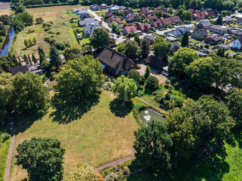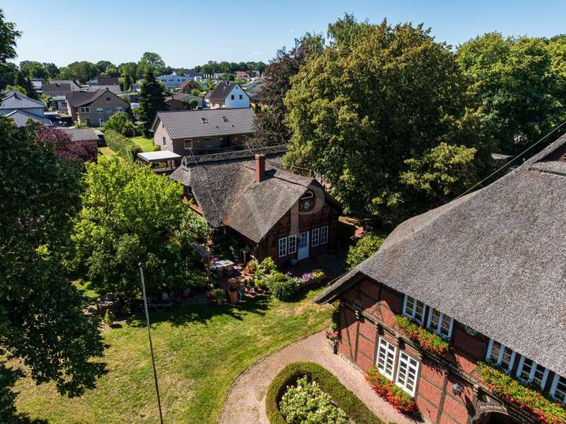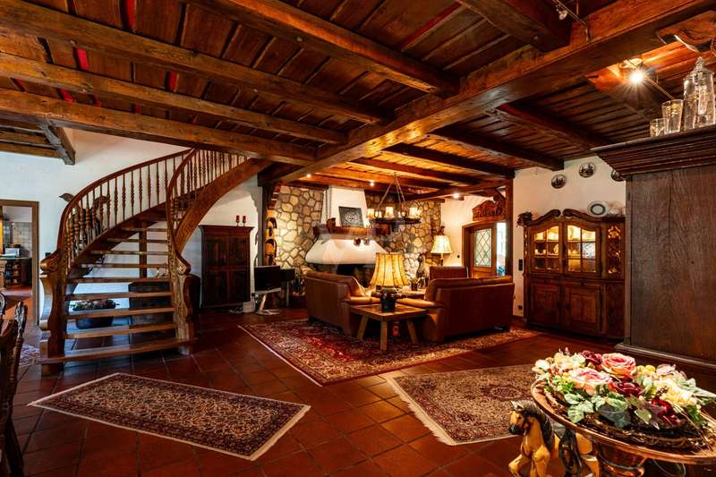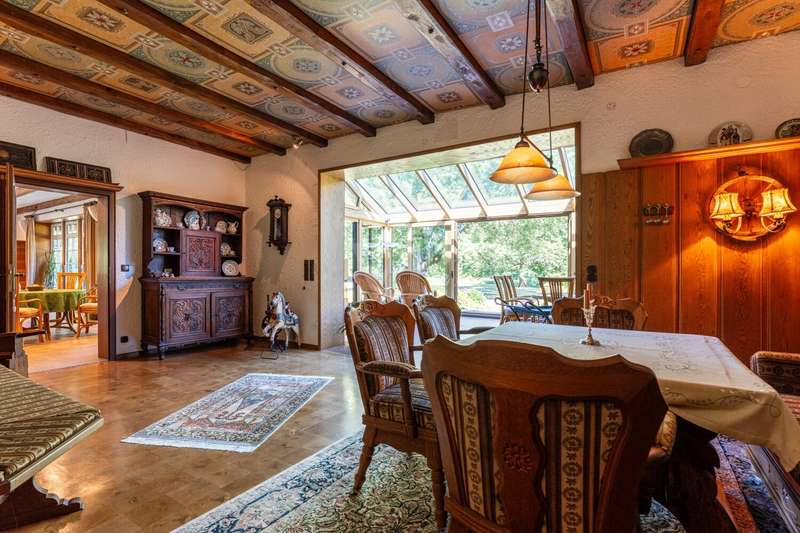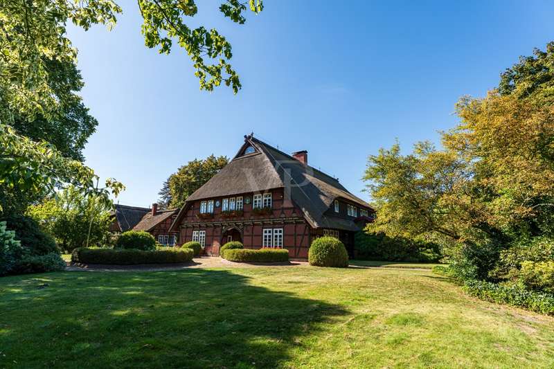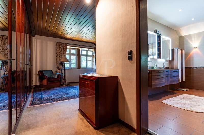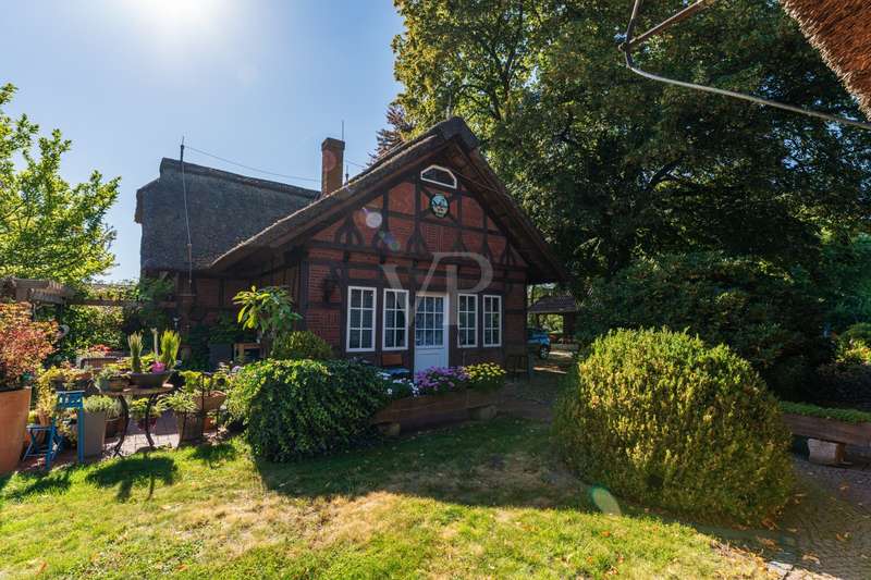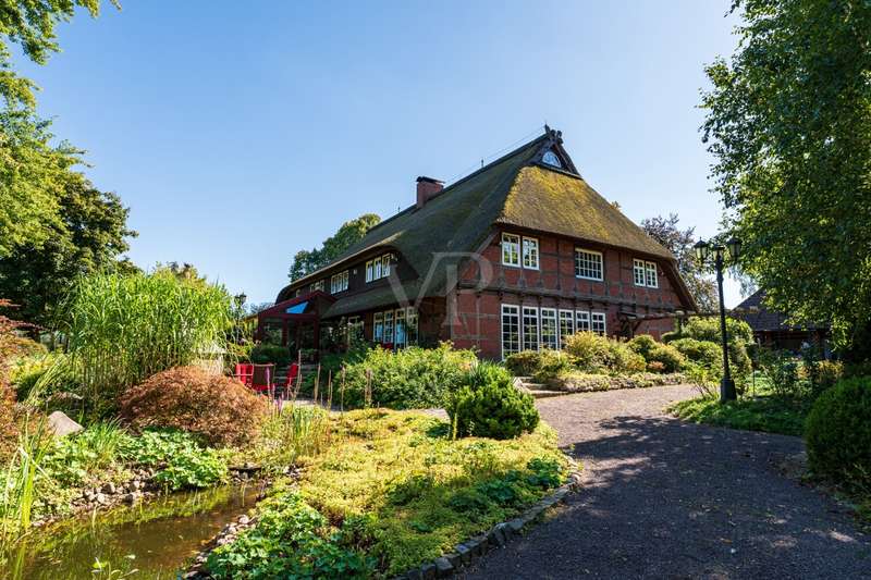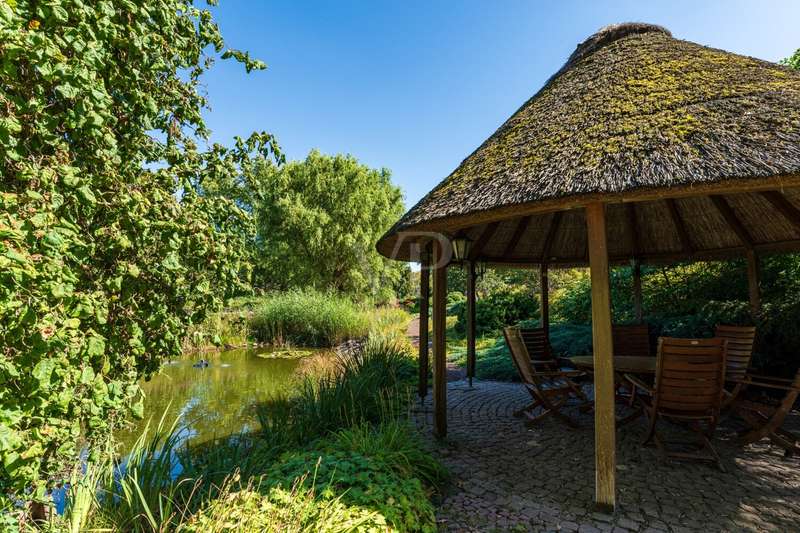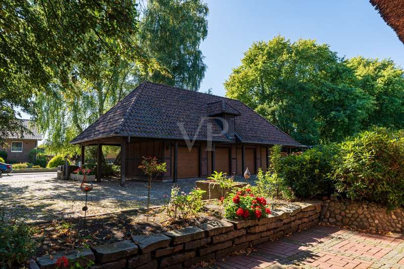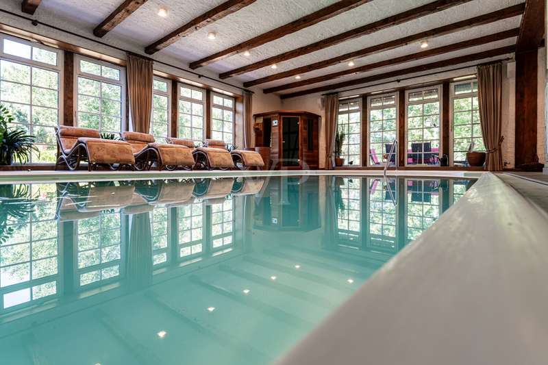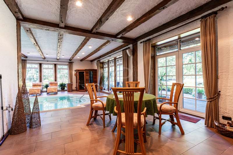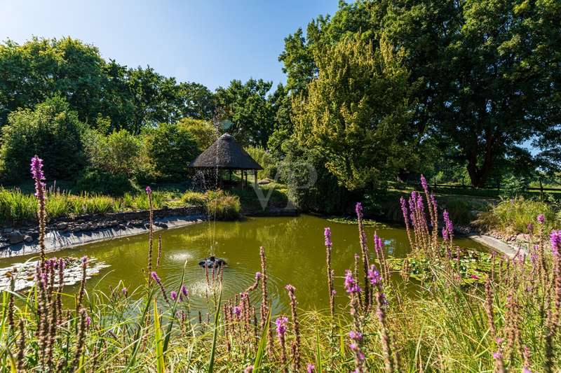 A country house that will make your dreams come true! Welcome to a place that combines size, space, tranquillity and timeless elegance. An exceptional country house that will delight discerning buyers who want to combine living close to nature with first-class comfort. Whether as a prestigious family estate, a home for several generations or an elegant retreat, the unique combination of size, facilities and location makes this a once-in-a-lifetime opportunity. Even the approach through the expansive 20,000m² plot makes you realize that something special awaits you here. Unparalleled size, majestic trees, open meadows and a harmoniously landscaped park-like and perfectly maintained garden create an exciting atmosphere between discovery and relaxation; spaciousness and security. A refuge that will immediately cast a spell over you. Built in 1983, the property with thatched roof is in excellent condition and impresses with a living space of around 766m². A total of 15 rooms, including 5 bedrooms, each with its own en-suite bathroom, as well as a further fully-fledged granny apartment open up space for every vision of life: whether generous family living, prestigious receptions or guest stays. Large windows frame the view of the magnificent plot and allow nature and living space to merge. High-quality materials, loving attention to detail and modern pellet central heating lend warmth and elegance to every room. The exclusive spa area with indoor pool and sauna is a refuge of relaxation. Here, body and soul find their balance, very private, very close, very special. A fully equipped and separate guest house is available for your guests or staff. Your vehicles are safely parked in one of the four garage parking spaces. This country house is more than just a property - it is a way of life.
