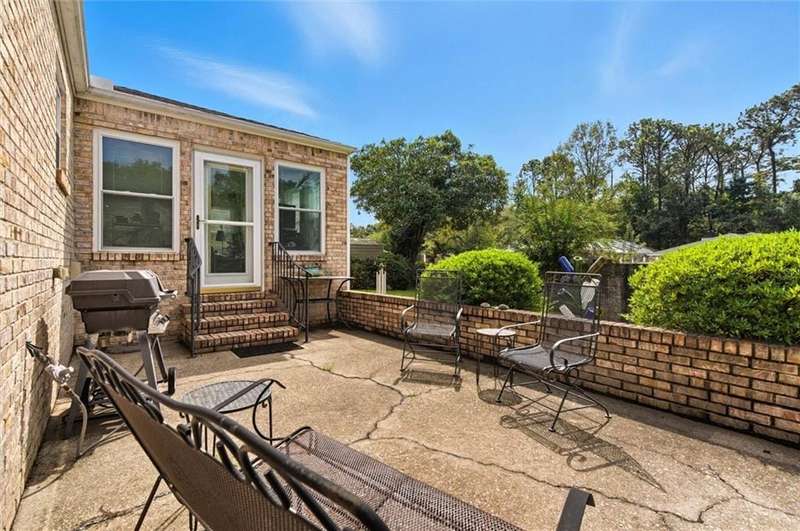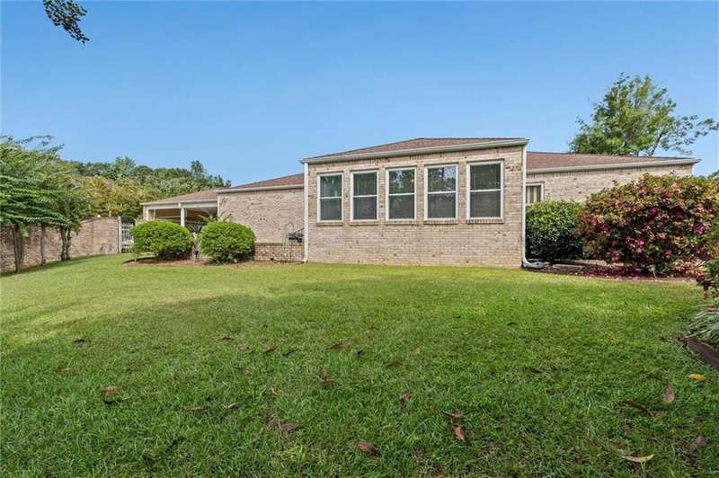 Welcome to this beautifully maintained and spacious brick patio home located on a professionally landscaped corner lot in the desirable Cobblestone subdivisionjust minutes from shopping, hospitals, and the University of South Alabama. One of the larger homes in the neighborhood, this property offers a rare combination of privacy, charm, and convenience. Completely gated and surrounded by a classic brick wall, the home provides both security and seclusion with a double carport, security gate, and lush, level lawnperfect for pets or entertaining. Step inside to find gleaming hardwood floors in the formal living and dining rooms, ideal spaces for quiet conversation or festive gatherings. The spacious family room is a true centerpiece, featuring custom built-in bookshelves, a gas log fireplace, and plantation shutters accenting the skylights in the cathedral ceilingcreating a warm and inviting atmosphere. The kitchen is a cooks dream, with white cabinetry that extends to the ceiling, granite countertops, a large pantry, a sealed brick floor, and newer stainless-steel appliances (all replaced within the past 6 years). A pass-through leads to the charming breakfast area, perfect for casual meals. Natural light floods the sunroom, making it the perfect spot for reading, relaxing, or working from home in comfort. The primary suite easily accommodates large furnishings and includes a renovated ensuite bath with a double solid-surface vanity, walk-in closet, and updated walk-in shower. Two additional guest bedrooms are generously sized with ample closet space and share a well-appointed guest bathroom with white cabinetry, solid surface countertops, and a tub/shower combination. Enjoy evenings grilling on the brick-enclosed patio or tinkering in the heated and cooled workshop/storage room conveniently attached to the carport. A second storage building offers even more space for tools or hobbies. Additional features include newer LVT flooring in the family room and bedrooms, one-year-old interior HVAC unit and gas water heater, irrigation system for easy lawn care, plantation shutters throughout the home, and a generator hook-up. This lovingly cared-for home blends elegance, comfort, and functionality. Schedule your private tour today and see all that this exceptional Cobblestone patio home has to offer! Buyer responsible for verifying all measurements and relevant details.
