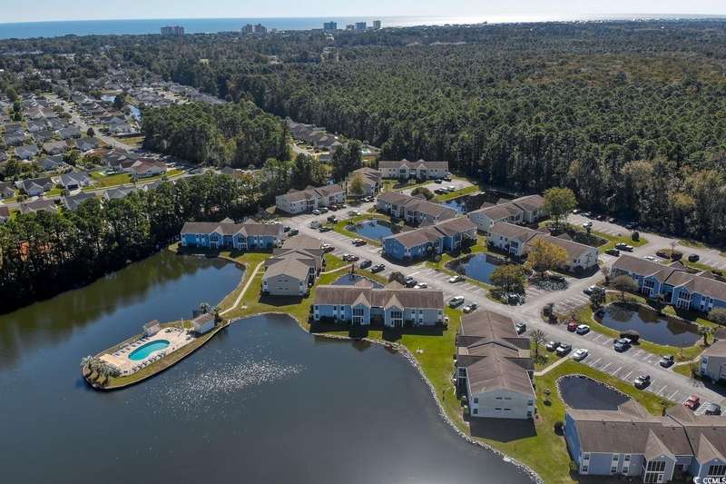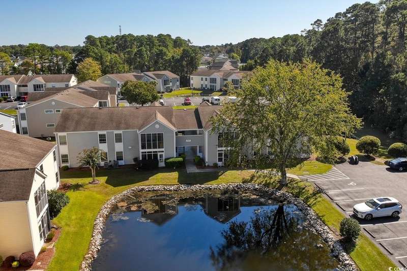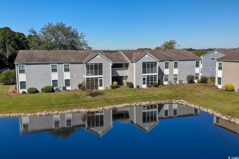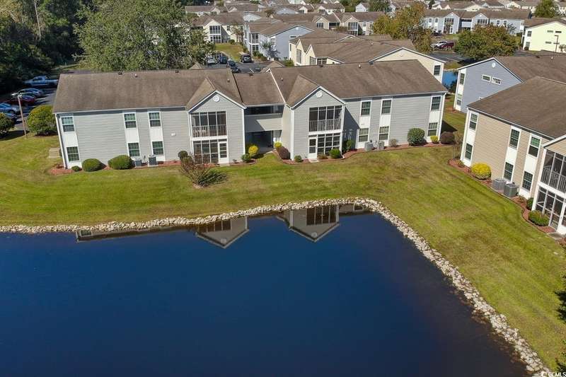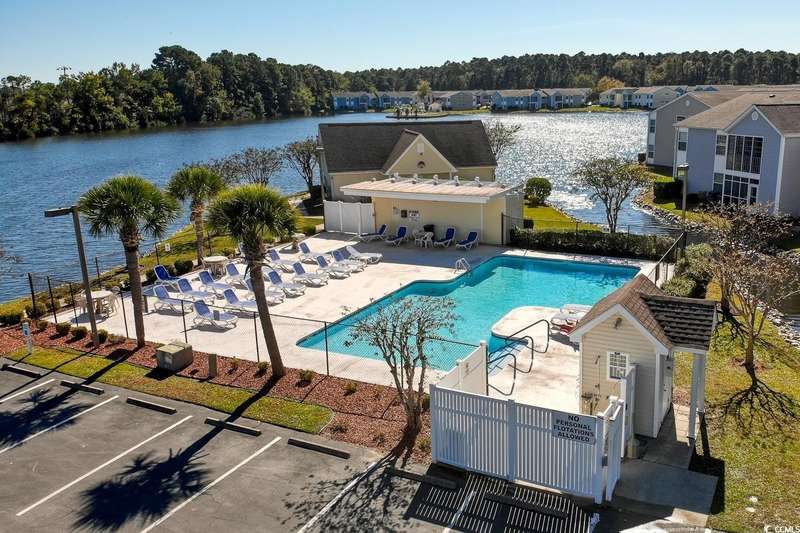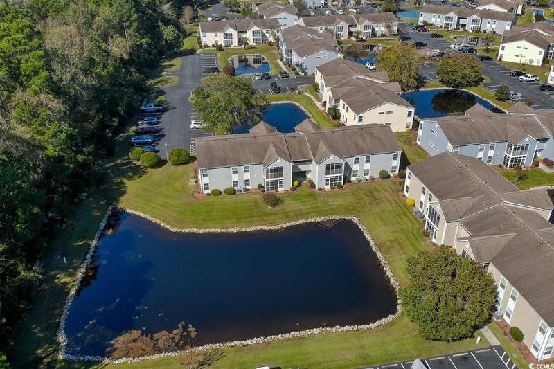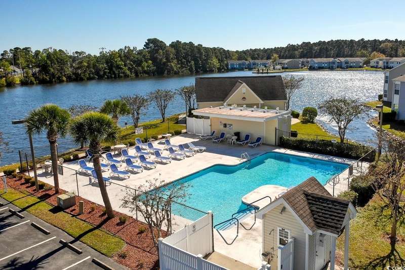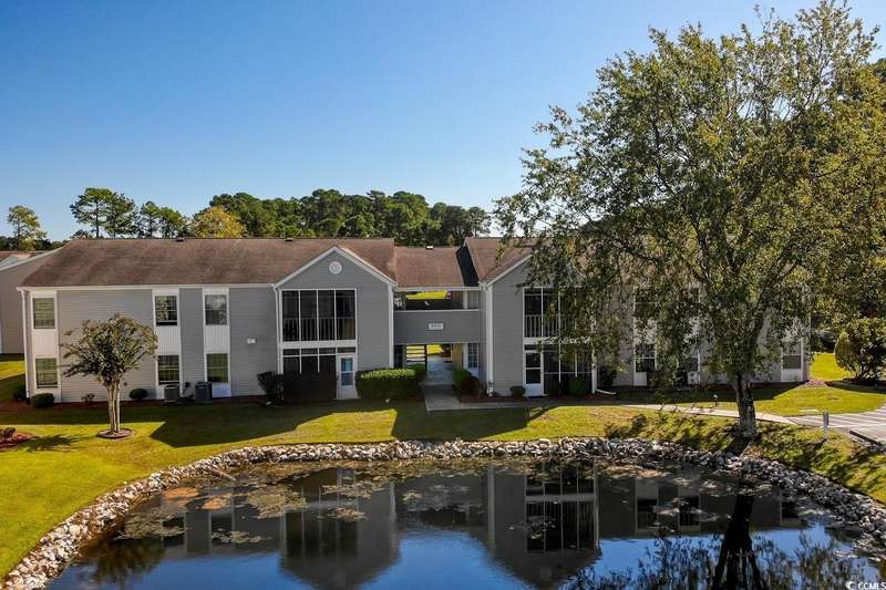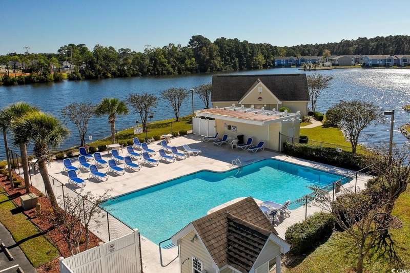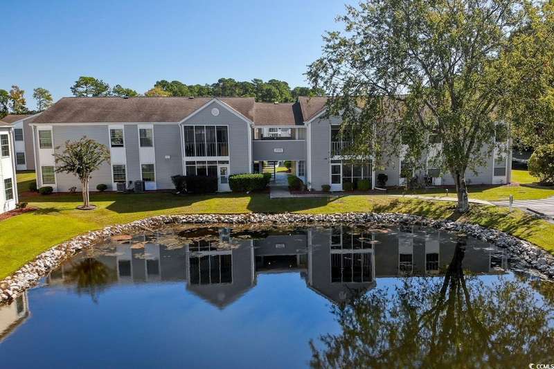 Welcome to Southern Living at the Beach—where comfort meets coastal charm! This beautifully positioned end-unit condo offers serene pond views and a light-filled open floor plan that invites warmth and relaxation from the moment you step inside. With three spacious bedrooms and two full baths, the layout is thoughtfully designed to maximize natural light and effortless flow. Step out onto your private screened-in balcony and take in the tranquil setting—mature trees frame the peaceful pond, creating a quiet retreat perfect for morning coffee or evening unwinding. Inside, you'll find laminate flooring throughout, including the porch, adding a cohesive and low-maintenance touch. The kitchen comes fully equipped with all appliances, including a refrigerator and washer/dryer, making this home move-in ready. The HOA covers a generous array of amenities: building insurance, cable and internet, trash pick-up, common area maintenance, and access to two sparkling community pools with lake views—ideal for soaking up the sun or socializing with neighbors. Located in the heart of Surfside Beach, SC, you're just minutes from the shoreline, where warm sand and ocean breezes await. Don’t miss your chance to embrace the coastal lifestyle—schedule your showing today and make this peaceful haven your own!
