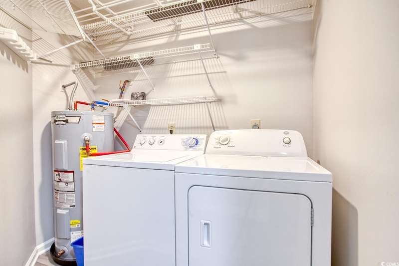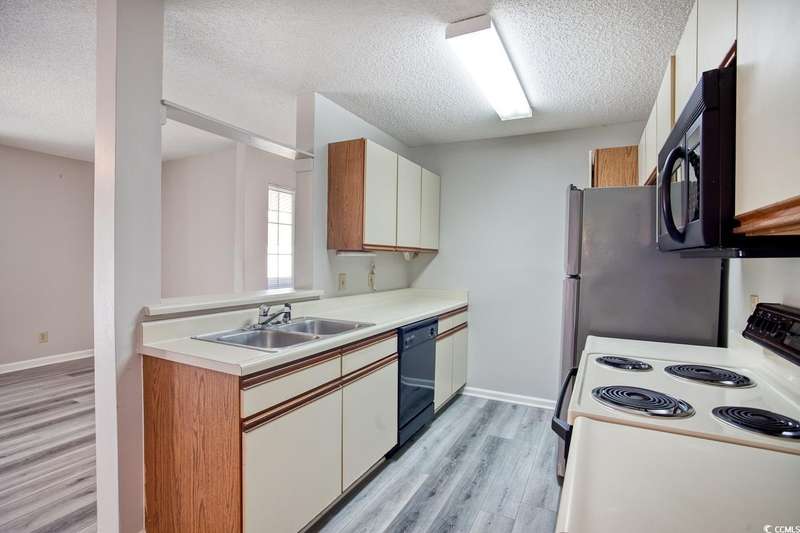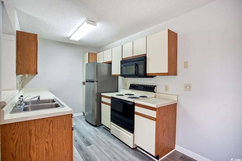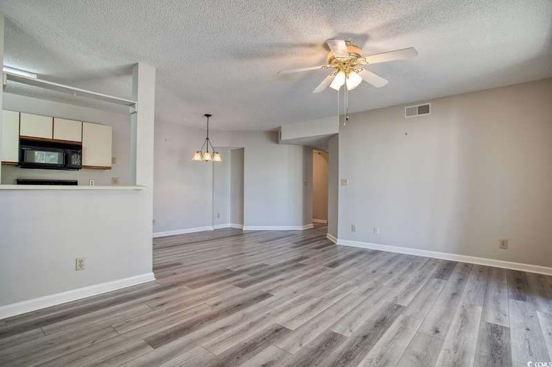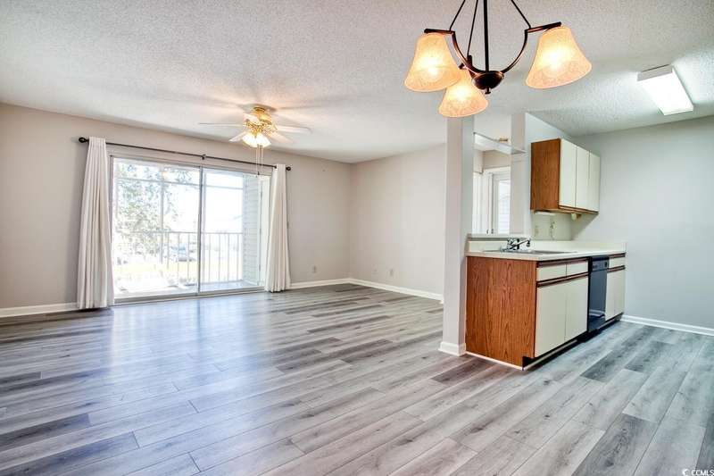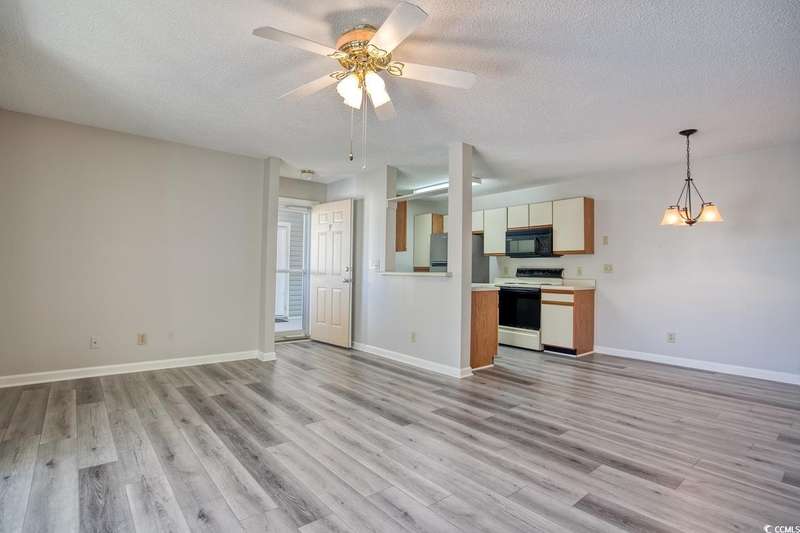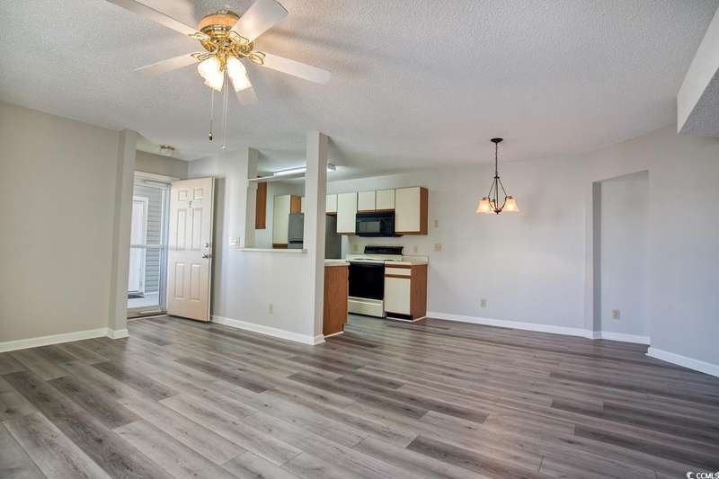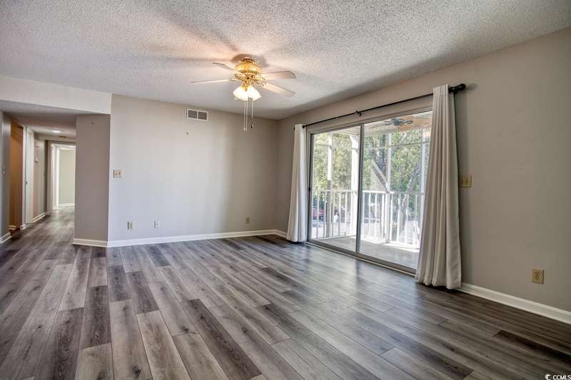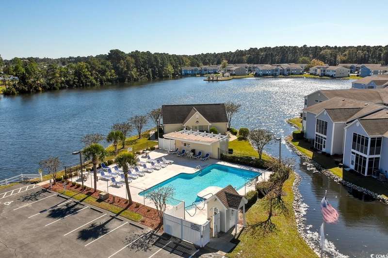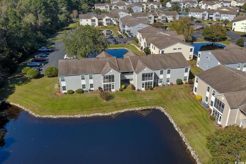 Welcome to Southern Living at the Beach—where comfort meets coastal charm! This beautifully positioned end-unit condo offers serene pond views and a light-filled open floor plan that invites warmth and relaxation from the moment you step inside. With three spacious bedrooms and two full baths, the layout is thoughtfully designed to maximize natural light and effortless flow. Step out onto your private screened-in balcony and take in the tranquil setting—mature trees frame the peaceful pond, creating a quiet retreat perfect for morning coffee or evening unwinding. Inside, you'll find laminate flooring throughout, including the porch, adding a cohesive and low-maintenance touch. The kitchen comes fully equipped with all appliances, including a refrigerator and washer/dryer, making this home move-in ready. The HOA covers a generous array of amenities: building insurance, cable and internet, trash pick-up, common area maintenance, and access to two sparkling community pools with lake views—ideal for soaking up the sun or socializing with neighbors. Located in the heart of Surfside Beach, SC, you're just minutes from the shoreline, where warm sand and ocean breezes await. Don’t miss your chance to embrace the coastal lifestyle—schedule your showing today and make this peaceful haven your own!