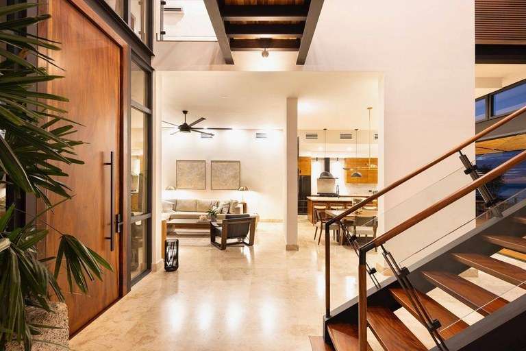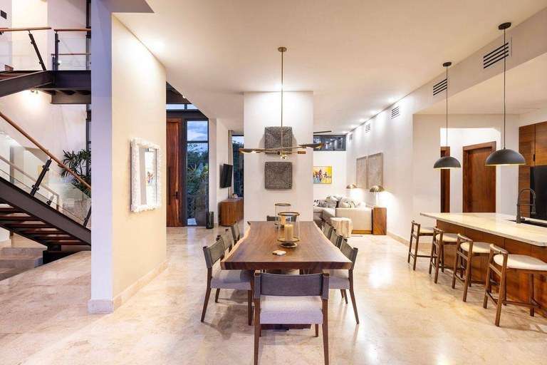 Designed to merge elegance with livability, Casa Altamira offers a thoughtfully designed floor plan featuring four spacious bedrooms, 4.5 luxurious bathrooms, and a dedicated media room with a sofa bed—perfect for hosting family or friends. The home also includes a stylish private office, ideal for remote work, digital nomads, or those seeking a creative sanctuary. High ceilings throughout the home create a sense of openness and airiness, enhanced by state-of-the-art Big Ass Fans and a central A/C system with variable speed control for maximum comfort.