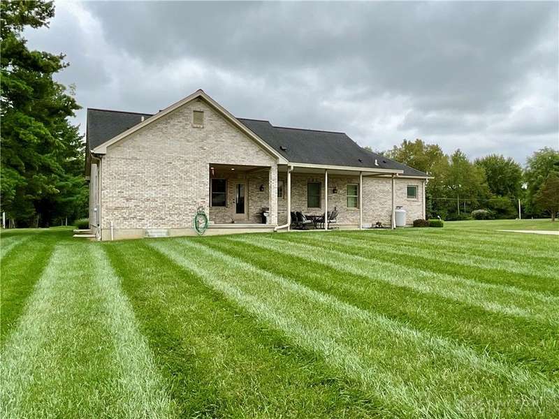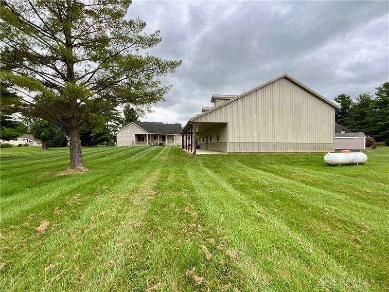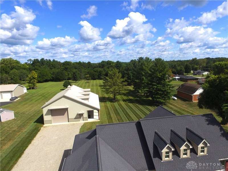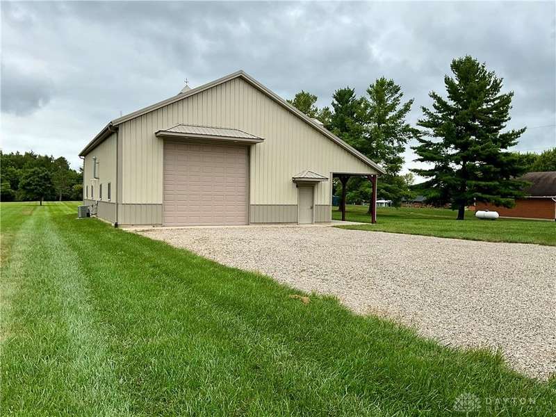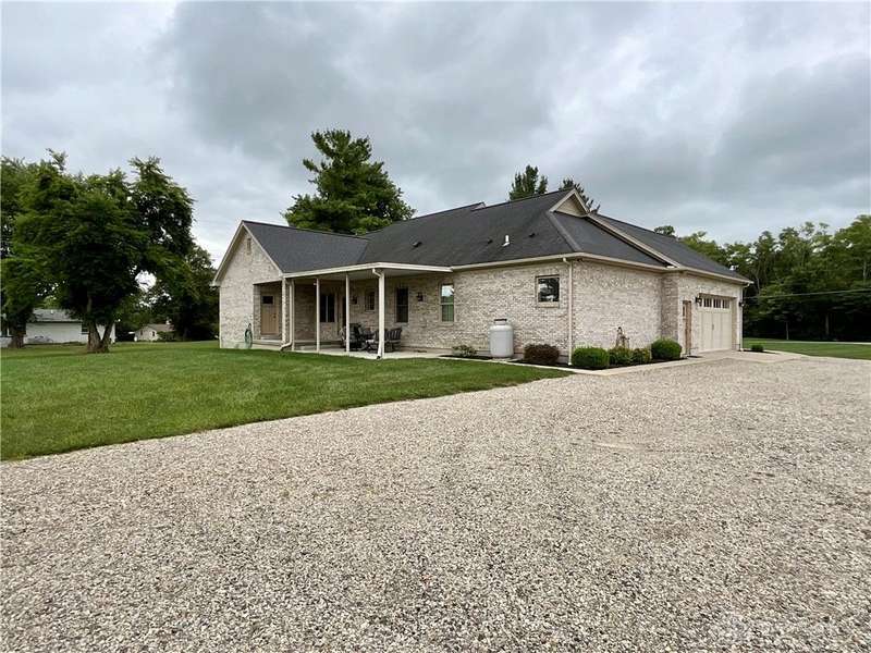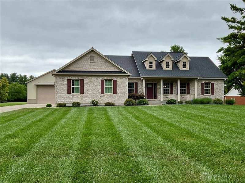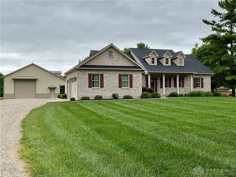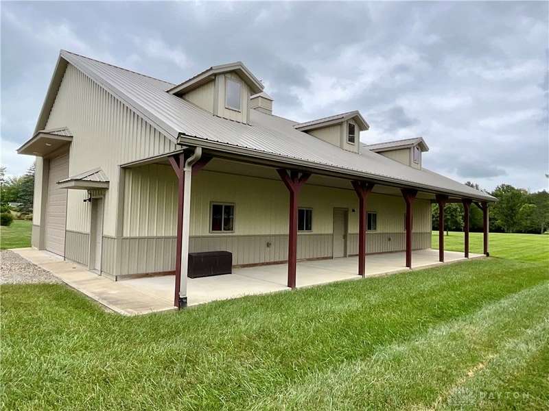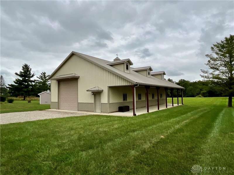 Experience country living at it's finest in this exceptional custom built single story ranch with a full finished basement situated on 2.31 acres in Eaton, Ohio. This home was built in 2014 for the current owner and is full of custom details and upgrades. The covered front porch leads you into the spacious living room with vaulted ceiling and gas fireplace. The living room is open to the dining room & the stunning kitchen which features custom cabinetry, granite counters, a large island with copper prep sink, & a gas stove. The primary bedroom features two walk-in closets and an expansive en suite bath with walk-in tile shower, jetted soaking tub, & dual sink vanity. First floor laundry is located across the hall from the primary bedroom. There are 2 additional bedrooms and a full bath on the main level. The lower level features a large rec room with a full kitchen, full bath, exercise room, and 2 additional bedrooms both with egress. The covered rear patio is the perfect spot to entertain, there is even a 1/2 bath accessible from the patio! The 36x60 outbuilding with 10x60 covered porch is a hobbyists dream. It features 14 foot ceilings, epoxy coated floors, and is divided into two shops. The front shop is -35'x27' and is heated with a FWA propane furnace. The rear shop is -35'x31' is insulated and is heated with a FWA propane furnace and has central A/C as well as a dehumidifier. There is a 1/2 bath located in the front shop. Additional features of the home include; Geo-thermal HVAC, 9' ceilings throughout the first floor and basement, & a 2 car attached garage.