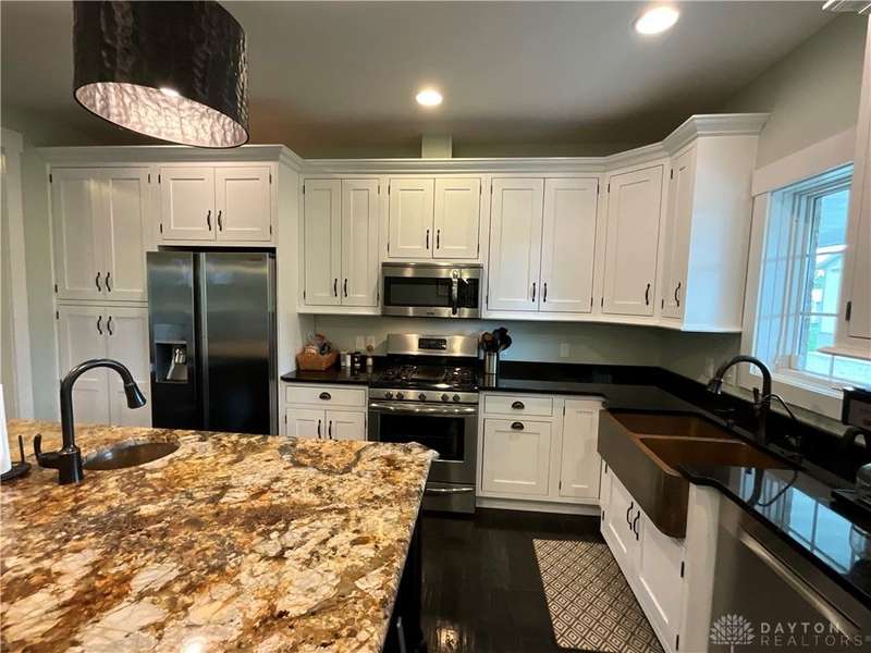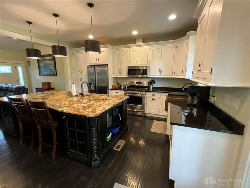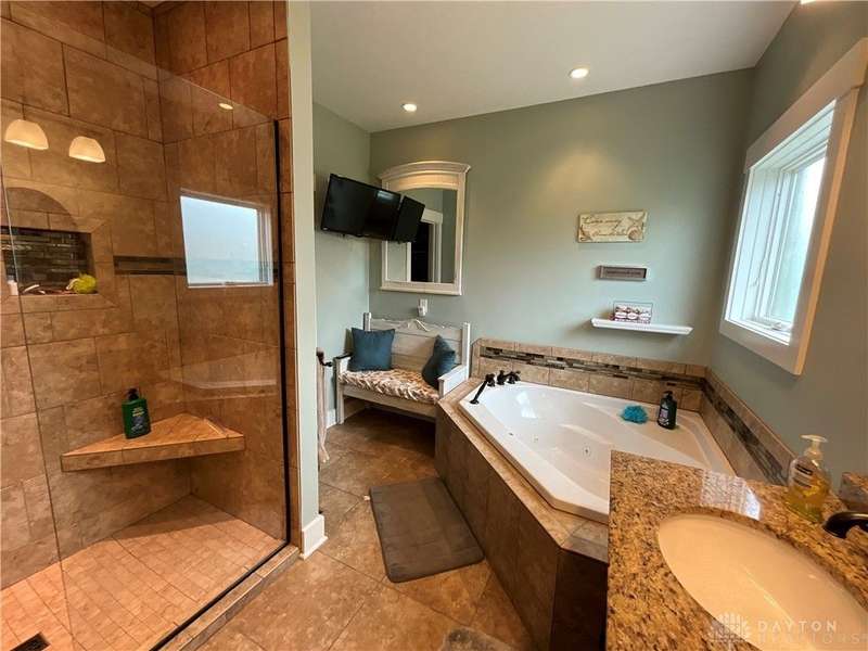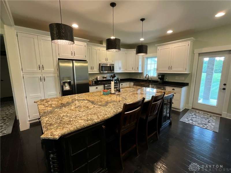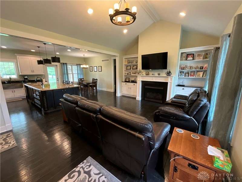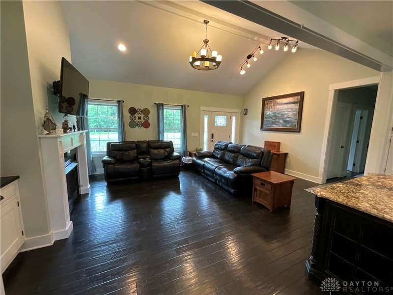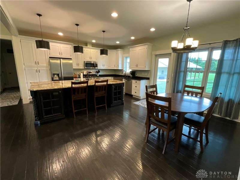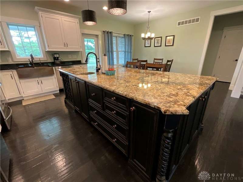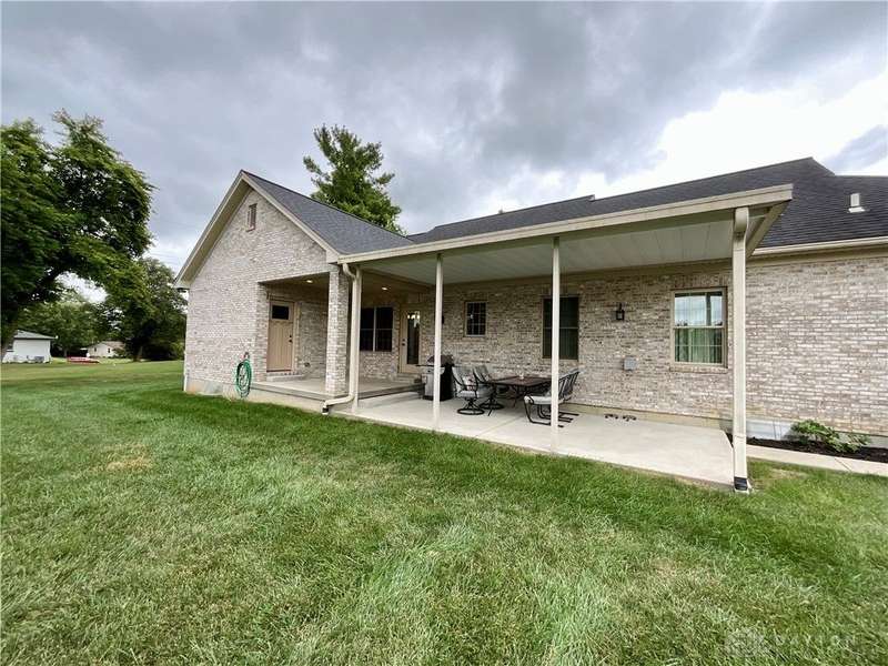 Experience country living at it's finest in this exceptional custom built single story ranch with a full finished basement situated on 2.31 acres in Eaton, Ohio. This home was built in 2014 for the current owner and is full of custom details and upgrades. The covered front porch leads you into the spacious living room with vaulted ceiling and gas fireplace. The living room is open to the dining room & the stunning kitchen which features custom cabinetry, granite counters, a large island with copper prep sink, & a gas stove. The primary bedroom features two walk-in closets and an expansive en suite bath with walk-in tile shower, jetted soaking tub, & dual sink vanity. First floor laundry is located across the hall from the primary bedroom. There are 2 additional bedrooms and a full bath on the main level. The lower level features a large rec room with a full kitchen, full bath, exercise room, and 2 additional bedrooms both with egress. The covered rear patio is the perfect spot to entertain, there is even a 1/2 bath accessible from the patio! The 36x60 outbuilding with 10x60 covered porch is a hobbyists dream. It features 14 foot ceilings, epoxy coated floors, and is divided into two shops. The front shop is -35'x27' and is heated with a FWA propane furnace. The rear shop is -35'x31' is insulated and is heated with a FWA propane furnace and has central A/C as well as a dehumidifier. There is a 1/2 bath located in the front shop. Additional features of the home include; Geo-thermal HVAC, 9' ceilings throughout the first floor and basement, & a 2 car attached garage.