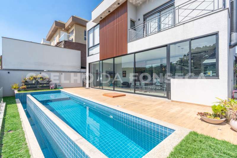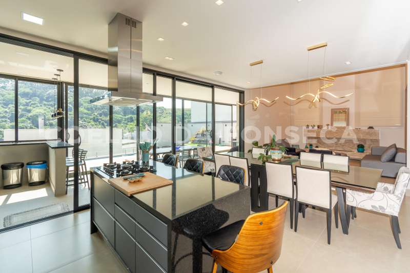 Casa lindíssima, construção e arquitetura moderna. Localizada em uma rua sem saída com três amplas suítes. Suíte master com hidromassagem, ducha dupla e closet com penteadeira. Todos os quartos climatizados, escritório repleto de armários , sala pra TV, living com pé direito duplo. Persianas automatizadas com controle remoto e monitoramento por câmeras. Piscina com borda infinita e integrada com espaço gourmet, com a vista pra mata permanente.