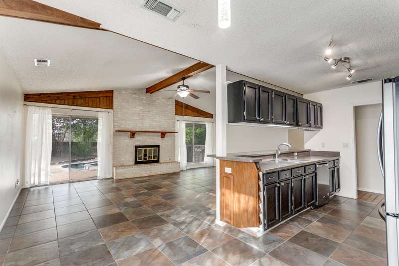 Nicely appointed single story located on a cul-de-sac. Home is situated on 1/3 of an acre lot & offers an in-ground pool w/ an expansive covered patio perfect for entertaining! Interior has open floor plan adorned with neutral paint, tile flooring, and central brick fireplace. Galley style kitchen includes dark cabinetry complimented by solid surface counters, gas cooking, & views to pool. Primary w/ en-suite has separate shower & tub. Garage has workspace and 240 EV charger. Fresh exterior paint (2025) & new carpet (2025) - 10/20/2025 3:16:04 AM