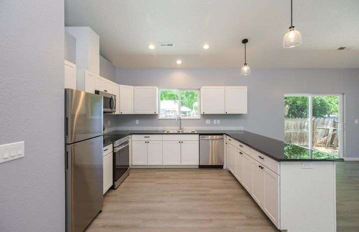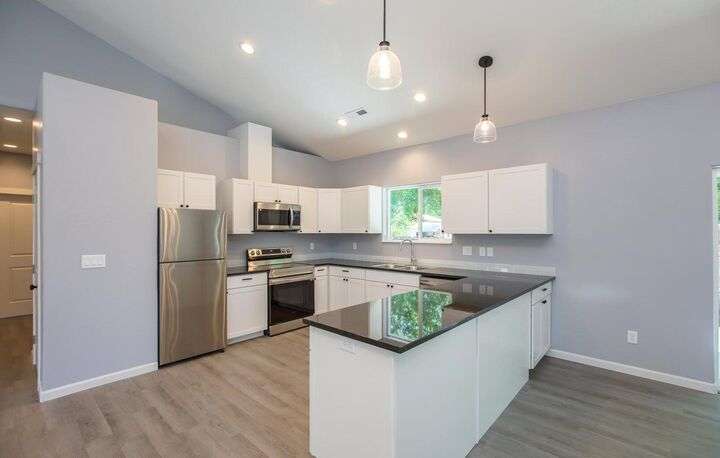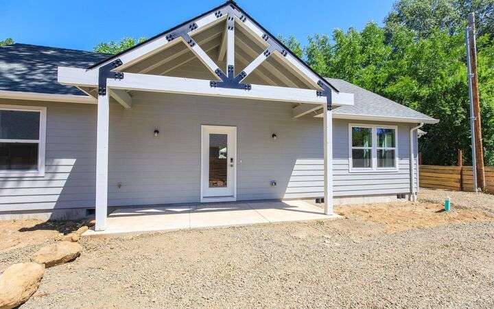 Newer frame-built 2 bed, 2 bath home on a spacious .20-acre flag lot, offering 1,440 sq. ft. of comfortable living. Tucked away off the road for privacy and peace, yet near all city services including post office, market, restaurants, school, and library in the heart of Shady Cove. Inside, enjoy a bright open floor plan with vaulted ceilings, custom lighting, and high-end finishes including shaker-style cabinets, granite countertops, and stainless-steel appliances. The fenced backyard is perfect for pets, gardening, or entertaining under the beautiful trees. Added features include an EV charging station in the garage and plenty of parking for guests or toys. Whether you're a first-time buyer, retiree, or savvy investor, this move-in ready home combines convenience, quality, and charm in a prime location.