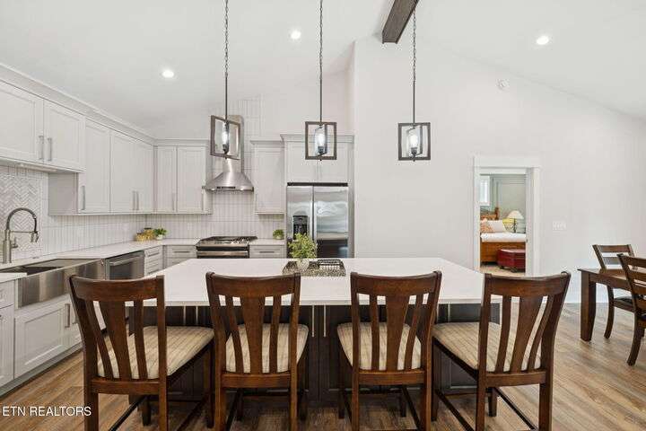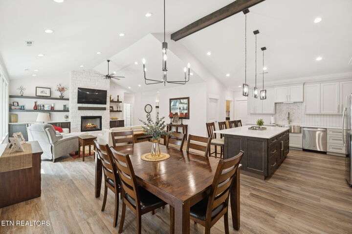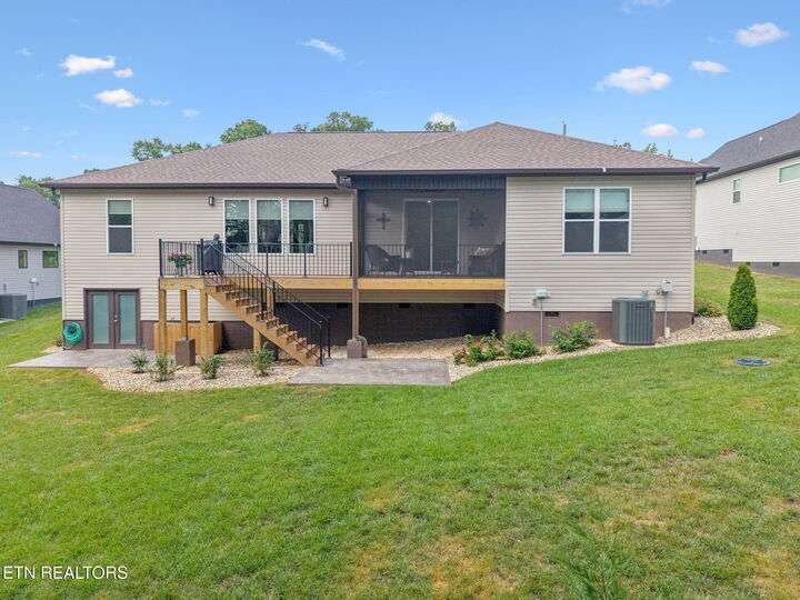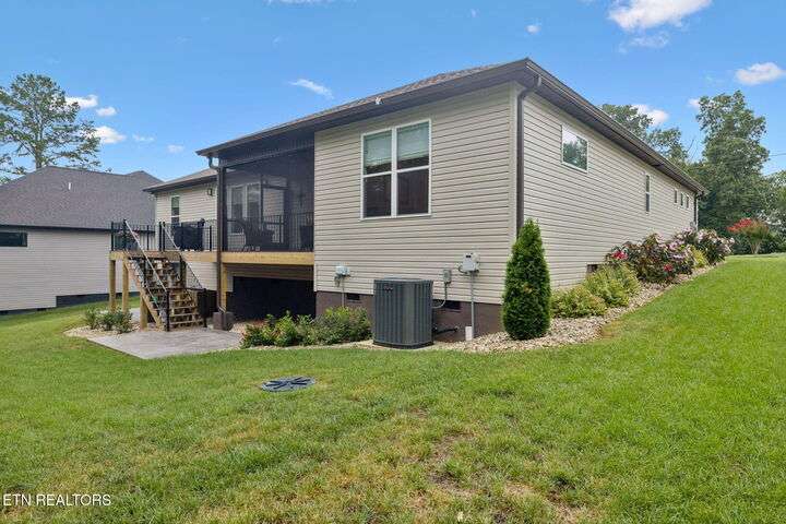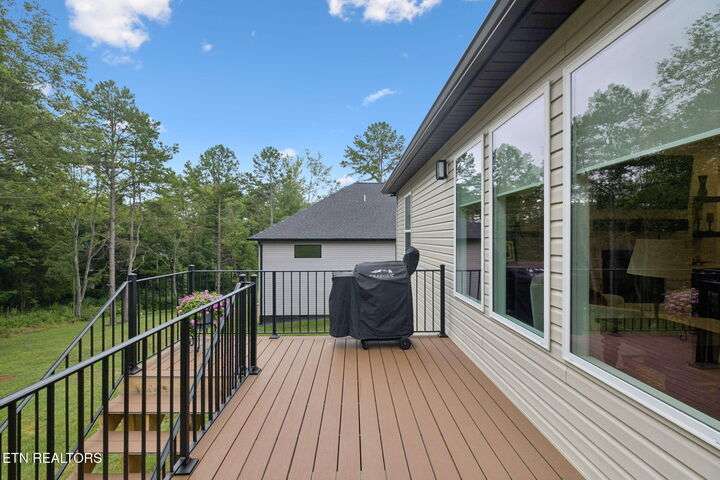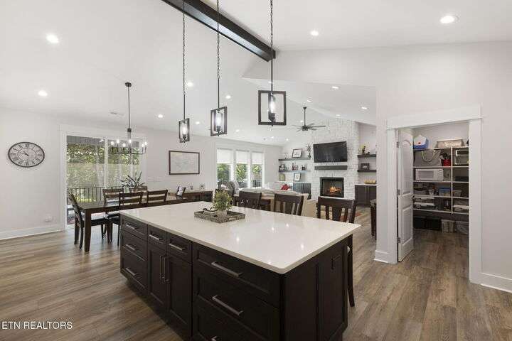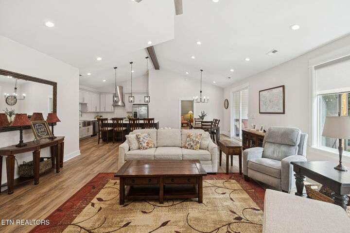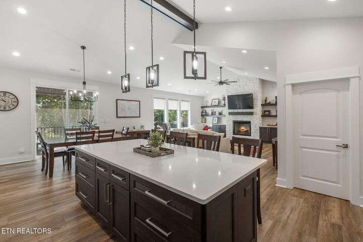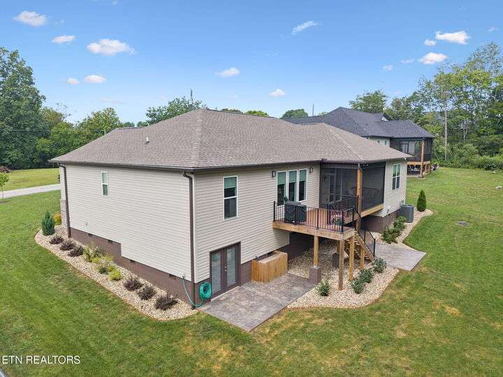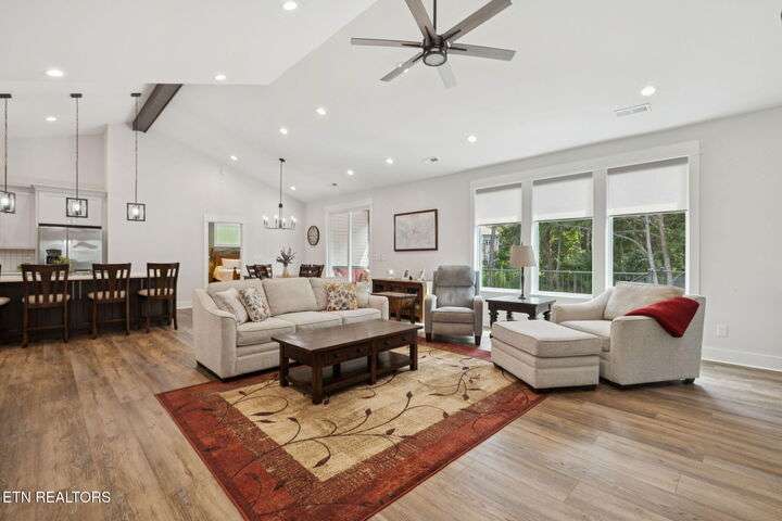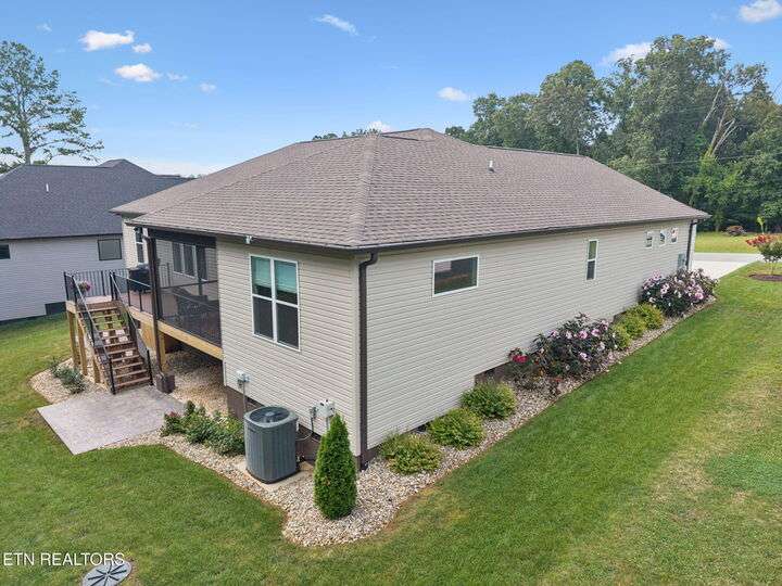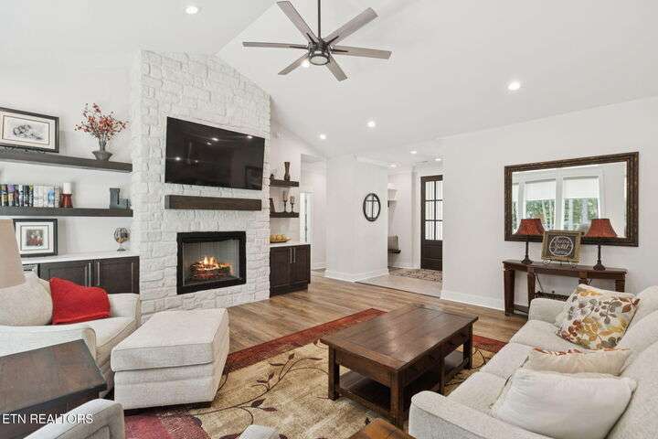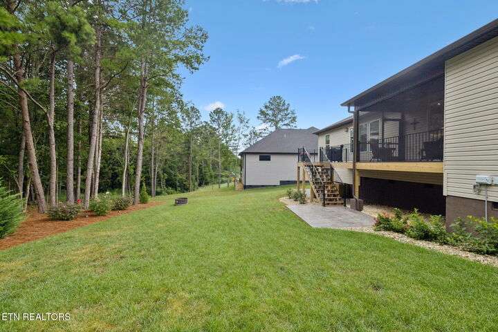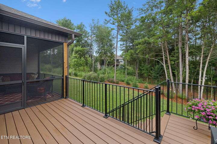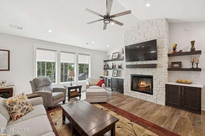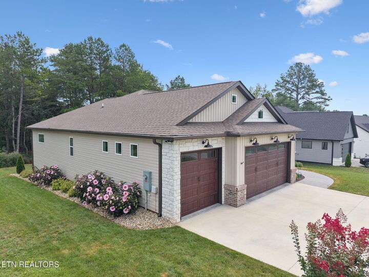 **Open House Sunday 2-4 pm**. 5389 Zion Ridge delivers all the luxury you've been dreaming of paired with the practical features you didn't think you could find—including a spacious 3-car garage finished with high-end polyaspartic flooring that's as beautiful as it is durable, and a tall crawl space that's been transformed into the perfect workshop for the man of the house. Whether you're storing vehicles, tackling projects, or organizing tools, this home offers thoughtful spaces that go beyond expectations. Crafted with care and quality, this is another impressive home by Marblestone Construction, blending craftsmanship, luxury, and everyday convenience in a way few others can. Located in the sought-after Tanasi Hills neighborhood of Tellico Village, 5389 Zion Ridge Rd is a 3-bedroom, 2-bath home offering one-level living at its finest. Step inside through the impressive 8-foot double mahogany doors and you'll immediately be welcomed by a spacious open-concept layout with soaring vaulted ceilings and a stunning floor-to-ceiling stacked stone fireplace. Flanked by custom cabinetry and floating shelves with a built-in mini fridge for added convenience, the great room creates a warm and stylish space perfect for entertaining or relaxing. The chef's kitchen, truly the heart of the home, features vaulted ceilings that enhance its open and airy feel. Its large center island with bar seating is perfect for casual dining and entertaining guests. Equipped with a propane gas stove and dramatic stainless steel hood, stainless steel appliances, a farm sink, quartz countertops, and a spacious walk-in pantry, this kitchen blends style and function seamlessly, making it ideal for both everyday living and special occasions. A large laundry room offers abundant cabinetry for storage along with a utility sink, blending form and function. The oversized primary suite features a decorator's touch, including a striking feature wall that adds character and elegance. Drenched in natural light, the suite offers not one but two walk-in closets and a thoughtfully designed en-suite bath complete with a walk-in shower with rain head, frameless glass enclosure, linen closet, and a separate makeup vanity. On the opposite side of the home, the two additional bedrooms are generously sized. The second bathroom with a fully tiled tub/shower provides comfort and privacy for family or guests. Outdoor living flows effortlessly from the comfortable screened-in porch to an open deck area perfect for grilling, then down stairs leading to a stamped concrete patio perfect for enjoying the view of the beautiful yard and leads to the entrance to the workshop. The backyard offers a park-like setting on the nearly one-third of an acre lot, backing to a strip of common property for added privacy. The landscaping features lush Fescue sod, multiple vibrant hibiscus, privacy-enhancing Leland cypress trees, and butterfly bushes that attract nature's most beautiful visitors, all maintained by an irrigation system. From the upgraded garage to the professionally landscaped yard and everything in between, this home blends high-end finishes with smart design in one of Tellico Village's most desirable communities. This is truly a home that has it all!