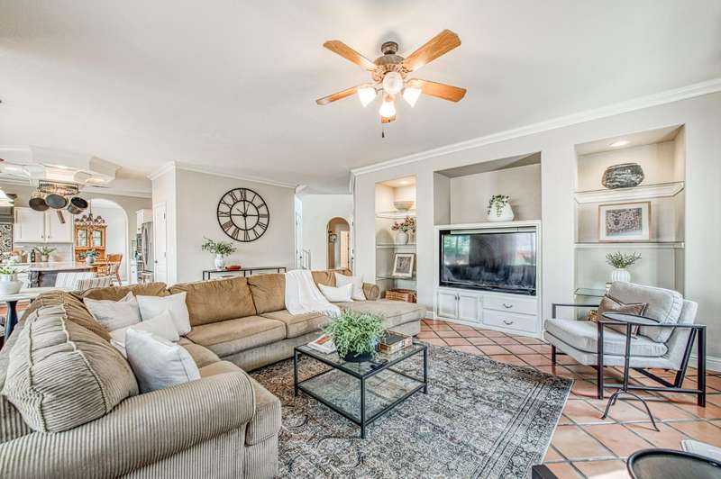 Pride of Ownership! Nestled in a quiet Clovis neighborhood, this impeccably maintained 4-bedroom, 3-bath home combines style, comfort, and functionality. Inside, the updated primary retreat offers a serene space to unwind with a luxurious soaking tub, generous layout, and gorgeous tile flooring.Two of the secondary bedrooms share a connected bathroom, making it ideal for family or guests, while the fourth bedroom lends itself perfectly as a guest room or office. The home's spacious living areas offer room for everyone, which include a living room and family room with decorative shiplap above the fireplace, Saltillo tile floors, a built-in entertainment center, and crown molding throughout. A stunning tile staircase and graceful arched hallway and doorways add architectural character and timeless elegance to the home.The updated kitchen boasts newer granite countertops, a lovely backsplash, stainless steel appliances with a gas cooktop, an extended island, a pot rack, and a large walk-in pantry perfect for everyday living and entertaining.Outside, enjoy a covered patio ideal for outdoor dining and lounging, a large backyard designed for relaxation and gatherings, and a sparkling Pebble Tec swimming pool with a soothing rock waterfall feature surrounded by mature landscaping. Conveniently located near parks, shopping, dining, and freeway access, this Clovis home offers a seamless blend of modern updates and timeless appeal.Window glass Replaced in most of the windows Sept 2025Water Heater Pump replaced Sept 2025Roof Repairs/2 Year Cert Sept 2025Spruce Power Solar PPA 2015Lennox HVAC/Split SystemCompressor 10 yrsMotherboard 2 yrsUpdated Kitchen (2018)With Stainless Steel AppliancesGranite CountertopsGas Cooktop (Electric Option Avail)Washer and Dryer NegotiableDryer (Gas hookup w/Electric Option Avail)Master BathroomUpdated FlooringPool Pump Updated
