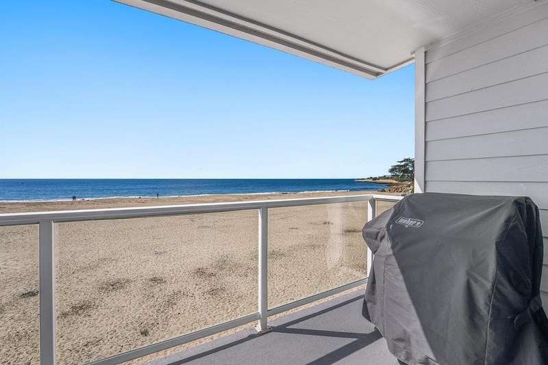 Experience the best value for luxurious beachfront living in this beautifully remodeled 2 bedroom, 2 full bathroom single level condominium, located directly on the sands of Corcoran Lagoon Beach in Santa Cruz. This rare second-floor corner unit is being sold fully furnished and features a private balcony with breathtaking, unobstructed views of the ocean and the beach, perfect for enjoying the sound of the waves and stunning Monterey Bay sunsets. The complex offers convenient amenities, including an elevator, a private storage unit, and a covered carport parking spot. Nestled between a variety of beaches and top surf spots including Sunny Cove and 26th Avenue, this condo is ideally located for coastal adventures. Don't miss this chance to own a piece of paradise in one of Santa Cruz County's most exclusive and unique oceanfront properties.