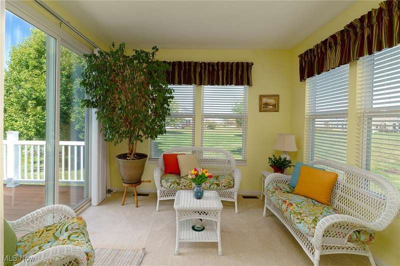 Discover your best years at North Ridgeville's Premier 55+ Active adult community, offering Resort-style Living and Luxury Amenities! This highly sought-after Danbury model features a rare Full basement, nestled at the end of a quiet Cul-de-sac with an open green space backyard, offering Peace, Privacy, and Beautiful views! It's been lovingly maintained by the original owner and offers an open-concept floor plan with a spacious kitchen. The kitchen features an eat-in breakfast area, abundant maple cabinetry, a center island, newer stainless steel appliances, and a pantry for added storage. The inviting family room flows seamlessly into a sun-filled sunroom, where you can relax and take in serene views of the expansive green space behind the home. The owner's suite is a private retreat, offering a Dual-sink vanity, a Soaking tub, a separate Shower, Linen closet and a Walk-in closet. A second bedroom and full guest bath are ideally situated to offer privacy for visiting family and friends. Need extra space? The dedicated office or den provides flexibility for your lifestyle needs. Pride of ownership is evident throughout, with key updates including a brand new roof (2025), new furnace (2024), and a hot water tank (2018) providing you with lasting value and peace of mind. One of the rare finds in the community is the huge basement, offering endless potential, finish it to your liking and expand your living space! Enjoy maintenance-free living with resort-style amenities that include a Clubhouse, an Indoor & Outdoor pool, Pickleball courts, Fitness center & exercise classes, daily activities and social events. All of this, with easy access to highways, shopping, dining, and more. This immaculate, move-in-ready home is priced to sell, don't miss your chance to own this incredible gem. Call today to schedule your private tour!