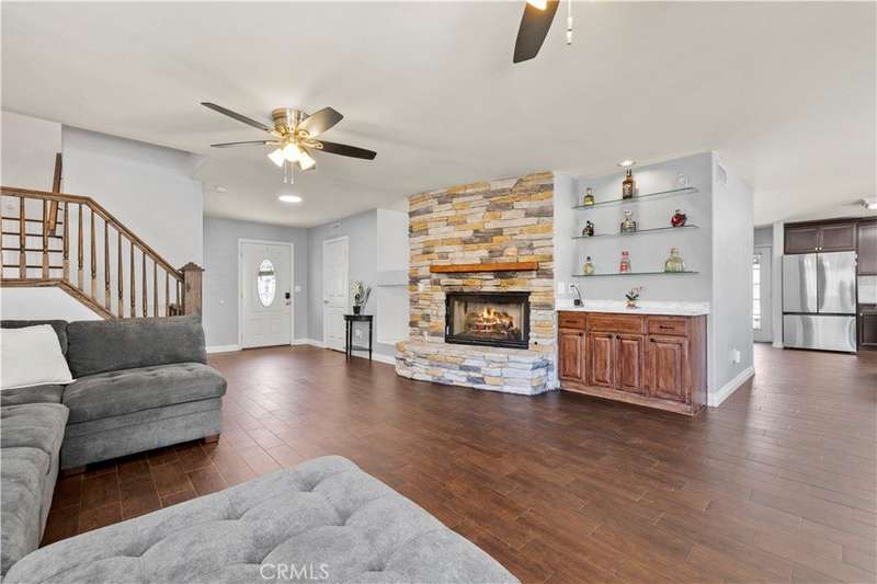 Contact Marite Matassa with any questions ro with interest 818-605-1220. Castaic Gem with paid-off solar, loft, and RV parking—it doesn’t get better than this! Tucked away in a private, peaceful setting, this beautifully upgraded 2-story home sits on over a 15,400 sq. ft. lot, blending comfort, style, and space. Step inside to an inviting open floor plan featuring wood-like flooring throughout, stylish paint, and a stone gas fireplace that sets the perfect cozy tone. The remodeled kitchen boasts quartz countertops, a chic herringbone backsplash, upgraded soft-close cabinetry, and newer stainless-steel appliances. A breakfast bar offers casual dining, complemented by a built-in wet bar for effortless entertaining. Upstairs, the primary suite offers two closets—including a dual hanging walk-in closet for maximized storage—a full-size en suite bath, and dual sinks. All bathrooms are beautifully finished with granite countertops, adding timeless elegance. Convenience meets style with an indoor laundry room and a downstairs powder bath for guests. Enjoy energy savings with completely paid-off solar panels and a whole-house fan, keeping utility costs low. The low-maintenance backyard provides plenty of room for outdoor living with cement hardscape, a dog run, tool shed, and endless possibilities on your flat, oversized lot. An attached 2-car garage with direct access adds everyday convenience. Modern updates meet timeless comfort in this 2001-built gem, where a large lot and flexibility are yours to enjoy. Opportunities like this don’t knock twice—book your tour today!