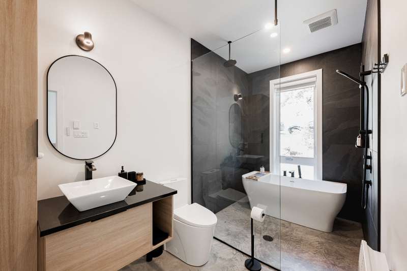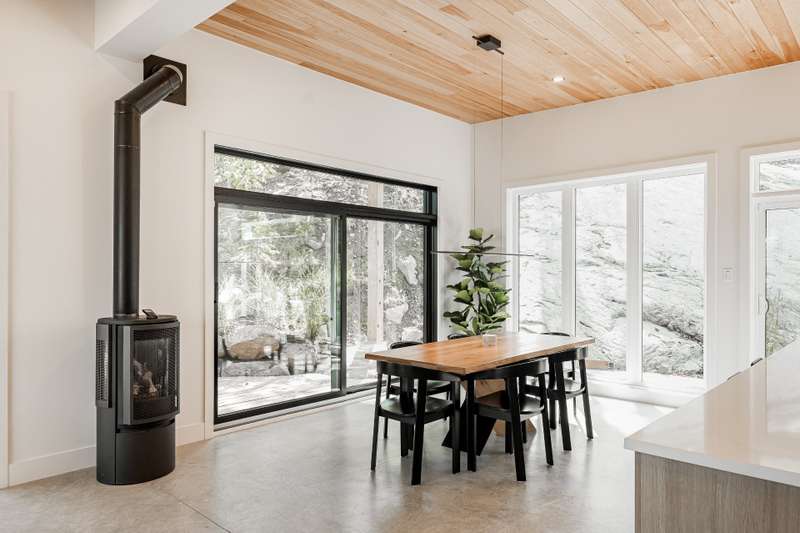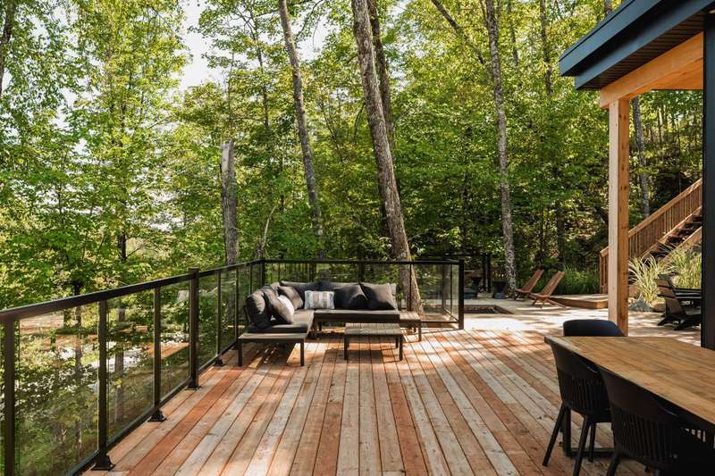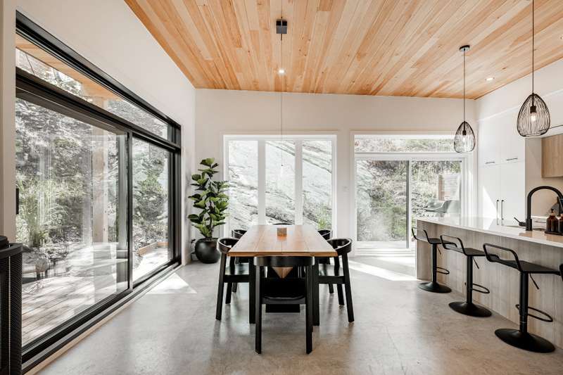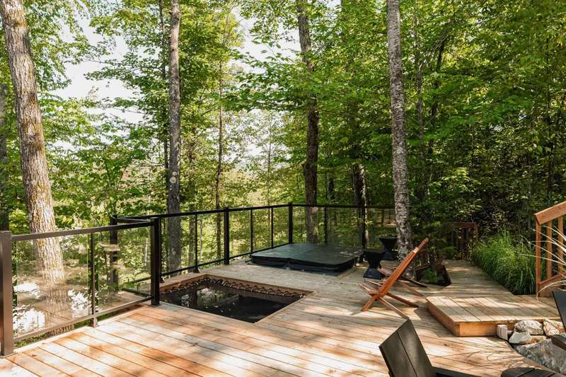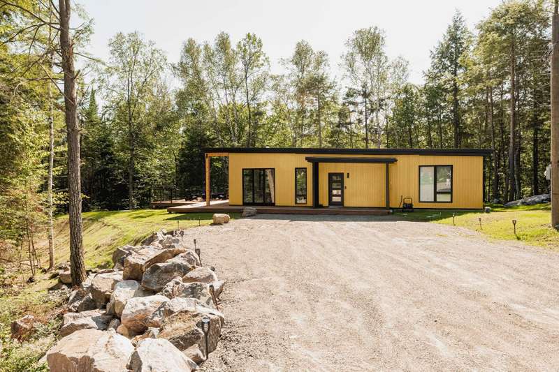 SHORT-TERM RENTALS PERMITTED! Stunning luxury chalet with 3 bedrooms and 2 bathrooms, located just 12 minutes from Mont-Tremblant. Modern design, high-end materials, heated floors, large terrace with jacuzzi. A perfect balance between comfort, nature, and return on investment. A turnkey investment combining pleasure and profitability, in the heart of the ChicShack estate!