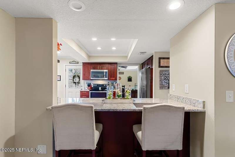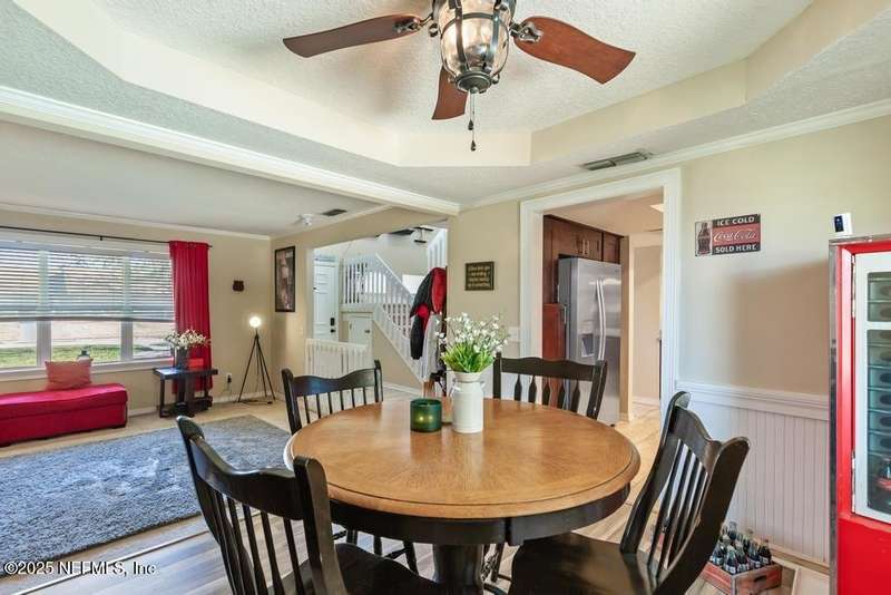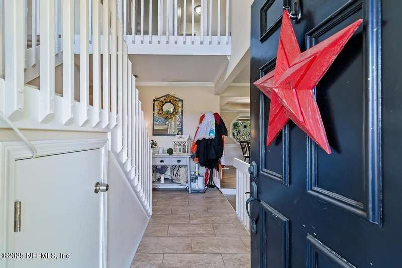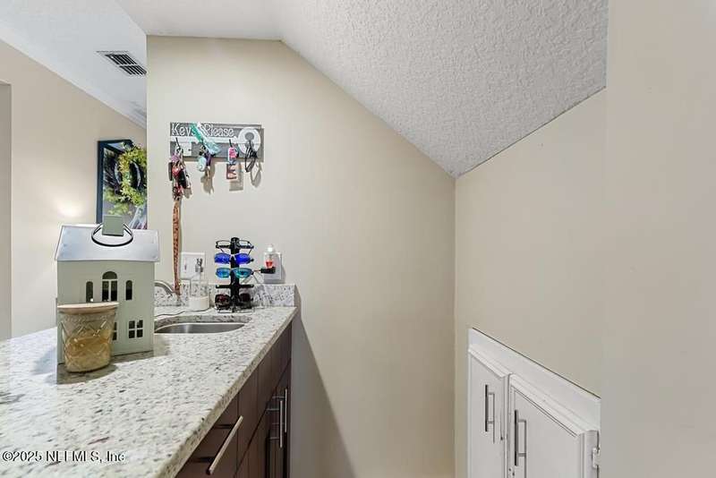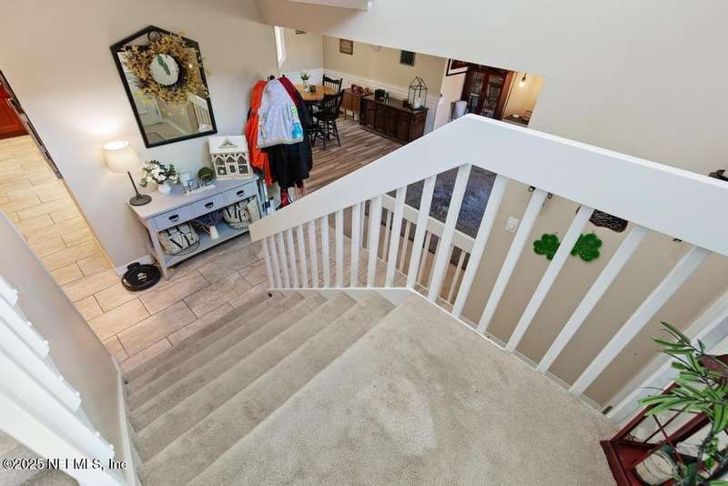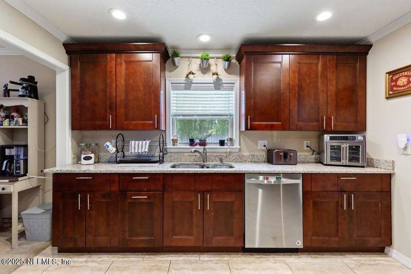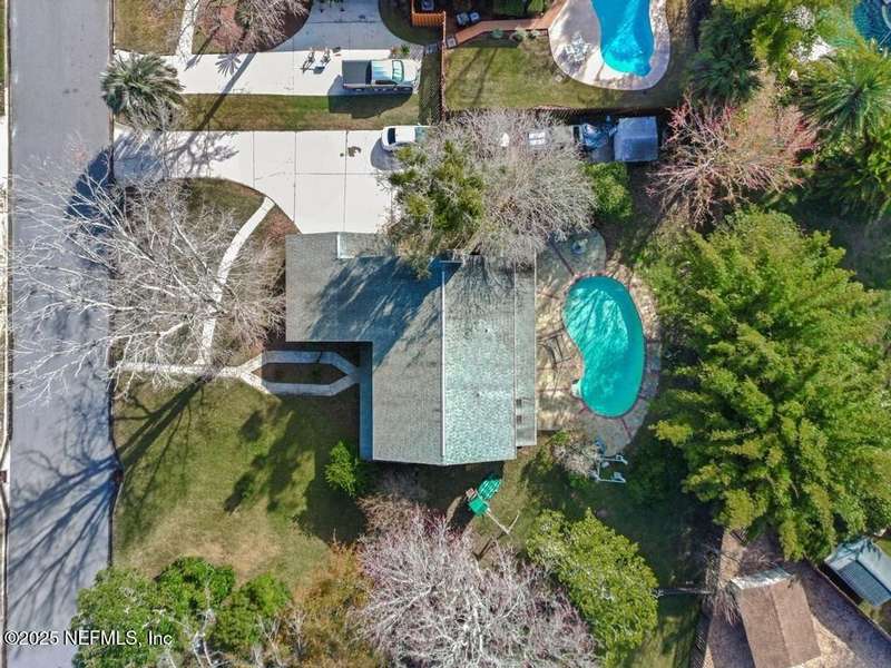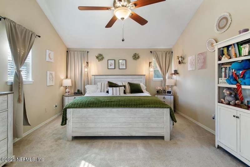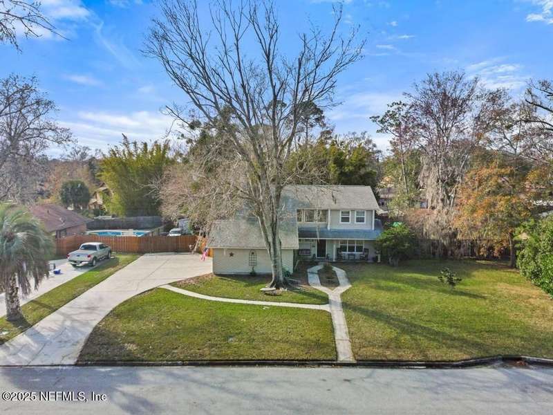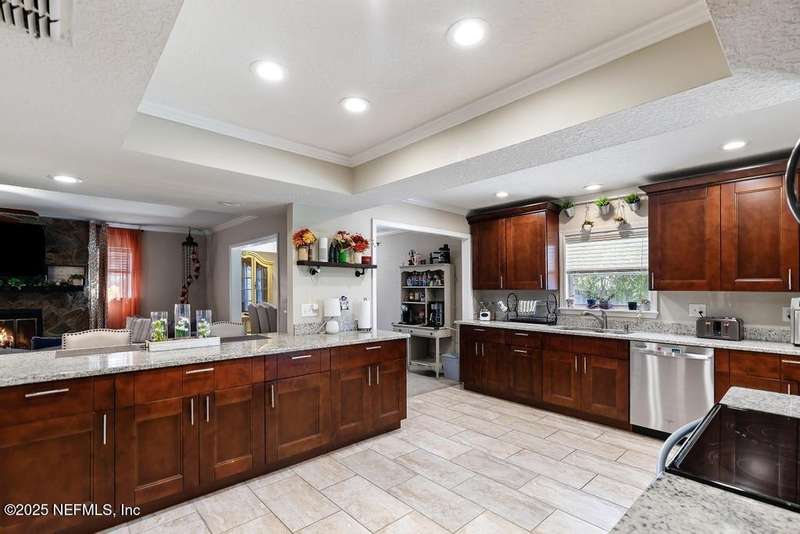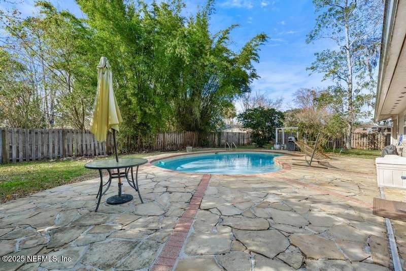 VA ASSUMABLE LOAN with 2.875% interest rate!! NEW ROOF (Sep 2025)! This stunning pool home is perfect for family gatherings and entertainment! Remodeled and situated in the highly desirable, gated Loch Rane and Orange Park CC community, this spacious 4-bedroom, 2.5-bath home offers 2,800 SF of beautifully updated living space.The kitchen is a chef's dream, boasting newer appliances, granite countertops, shaker-style cabinets, and gorgeous tiled floors. A breakfast bar overlooks the family room, while the sunken living room adds a touch of elegance. The home is further enhanced with hardie board siding, new light fixtures, blinds, and a charming stone fireplace in the family room. All bedrooms are generously sized, offering plenty of closet space, especially in the owner's suite. Both bathrooms are beautifully updated, featuring the same stylish floor tiles, cabinets, and countertops found in the kitchen. Additional features include a wet bar, extensive storage under the stairs, a parking pad behind the gate, and a detached shed for extra storage. Key features include, newer Pella windows, two A/C units, and convenient laundry options with a master closet laundry and a separate laundry room off the garage. The sunroom provides a relaxing space with room for casual dining as well as a cozy sitting or office area.Situated on an expansive, over 1/3-acre lot, this home offers plenty of room to enjoy both indoor and outdoor living.