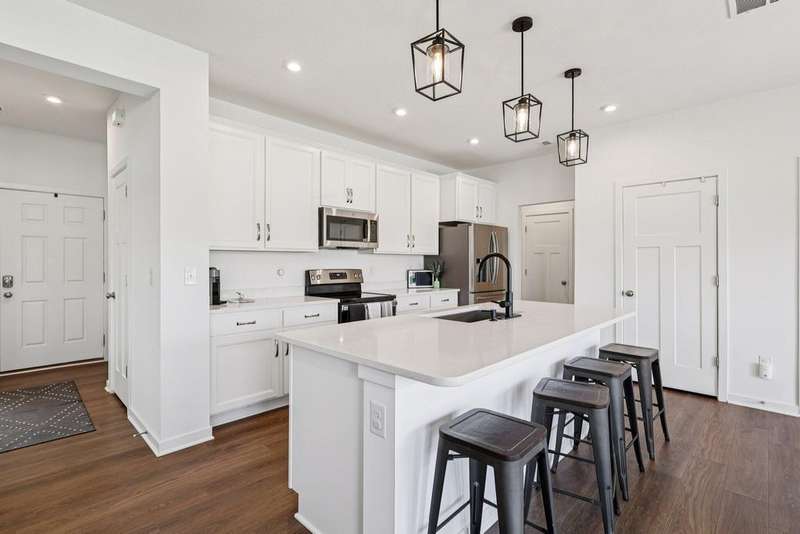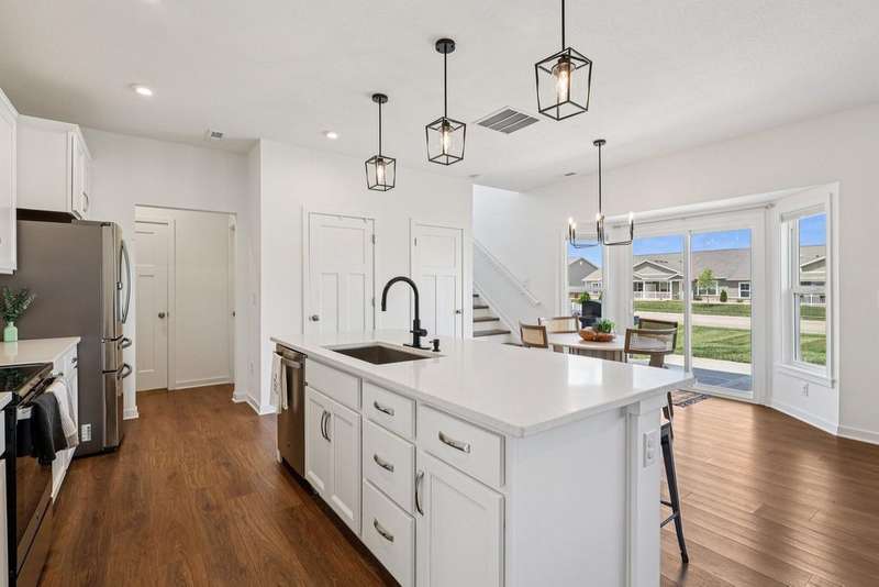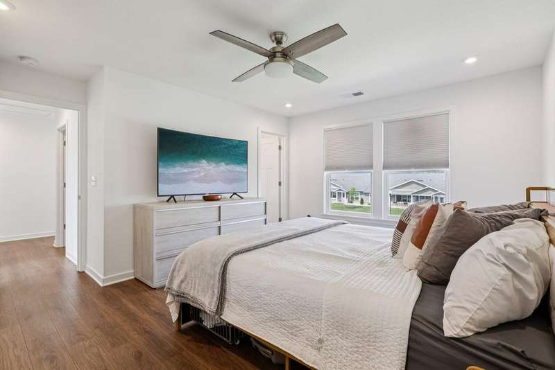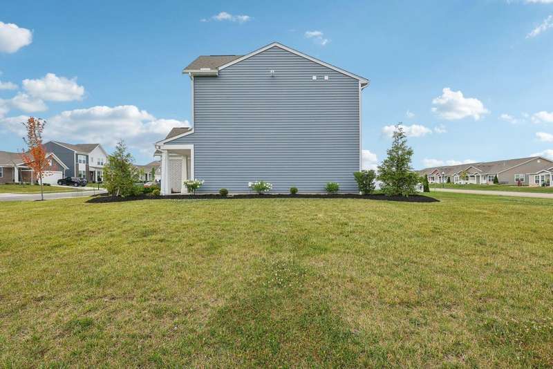 Why wait to build when this 2022 Fischer Homes Wesley Plan is ready & waiting for you?! The current owner has truly loved this home and never planned to move--if not for an unexpected life change, creating a rare opportunity for you to step into a nearly new, move-in-ready home without the wait of building. Nestled on a spacious corner lot in the sought-after Carriage Trails community (Bethel Schools!), this 4-bedroom, 2.5-bath home blends thoughtful design w/ stylish upgrades & plenty of room to live, work, & play. From the moment you step onto the covered front porch, you'll notice the difference. Inside, the private home office--w/ its custom trimwork & glass French doors--offers a quiet space for focus or creativity. The open-concept main living area features luxury vinyl plank flooring, recessed lighting, & modern fixtures, flowing seamlessly from the large family room (hello, custom-built-ins/shelves & electric fireplace!) into the bright kitchen & dining area. You'll love the eat-at island, quartz countertops, stainless steel appliances, generous cabinetry, & walk-in pantry--this kitchen was made for hosting. Sliding doors lead to a charming patio & a generously sized backyard--& thanks to the road behind the property, there's no neighbor's yard directly behind you. Like nearby homes, you could easily add a fence & arborvitae trees for even more seclusion. Whether you're dreaming of a playset, a spot for your furry friend, or just a little green space--this backyard delivers. Upstairs, the primary suite is a true retreat w/ added built-in cabinetry, a walk-in closet, & an en suite bath featuring a double vanity & walk-in shower. Three additional bedrooms & a full hallway bath provide space & flexibility for everyone. With sidewalks throughout the community, close proximity to major routes, & beautiful curb appeal, this home checks all the boxes. A two-car attached garage, main-floor laundry, $75/quarter HOA, & move-in-ready finishes complete the package.