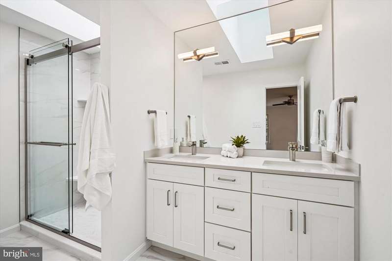 ALMOST LIKE A NEW BUILD! Completely and professionally renovated Colonial. Orginal Homeowner had this stylish and meticulous renovation completed in 2025. Wonderful home on a .66 Acre cul de sac lot in sought-after Valewood Manor neighborhood in leafy Oakton. This beautiful home is move-in ready and boasts 4 Bedrooms, 2 Full Baths and 1 Half Bath. With about 3,500 square feet of space with the lower level awaiting your creative vision (it has a rough-in for a bathroom) this home is ideal for everyday living and entertaining inside or outside. The handsome paver front walkway leads you to the charming front porch where you can sit and relax after a long day. The welcoming Foyer reveals a glipse of this stunning renovated home with hardwood flooring throughout the main level and cown molding throughout 2 levels, 2 Panel doors with handsome hadware, new light fixture, carpeting and bath fixtures (please see the documents list for the extensive list of improvements) The Living Room and Family Room are adjacent to the Foyer and enjoy views of the front yard. The Living room flows seamlessly into the Dining Room witha lovely Bay Window overlooking the backyard. It is open to the stylish Kitchen that is well appointed with Whtie Shaker soft-close Cabinetry, Quartz Countertops and new Stainless Steel appliances. A Pantry is convenienty located in the adjacent Mudroom.The Kitchen boasts a Breakfast Bar and Breakfast Room with access to the Deck. The rooms are filled with natural light from a window over the sink (with a view of the backyard) and windows surronding an Atrium door. A Laundry/Mudroom is convenienty located adjacent to the Breakfast Room. It feature new LG front load Washer and Dryer as well as a Pantry. The Family feature a brickhearth wood-burning Fireplace with Heailator and log storage. There is a wall of built-in cabinetry for your book collection and family keepsakes. A renovated Half Bah completes the Main Level. The Upper Level offers 4 Bedrooms with new carpeting and ceiling fans. and 2 renovated Baths. The spacious Primary Bedroom features a stunning renovated Bathroo, A handsome walk-in shower and stylish vanity and fixture are awash with natural light from 2 Skylights. The Primary Bedroom opens to another Bedroom, which makes it an ideal Nursery, Bedroom or a Study. 2 additional Bedroom and a nother fully renovated Hall Bath complete the upper level. The Lower Level is a large open space awaiting your creative vision to customize for your lifestyle. It offers a rough-in for a Bathroom. Outdoors, you'll find a New Trex Deck with lighting that steps down to a Paver Patio all overlooking the enourmous backyard surrounded by trees. The 2-car front-load garge offers epoxy flooring and a door leading to the back patio while another provides access to the Mudroom. This is your opportunity to live in a complelty renovated Oakton home on a quiet cul de sac. Just minutes away from major commuter routes, Fairfax Government Center, shopping, and Restaraunts. A short drive to Reston, Vienna, Metro and Tysons Corner. Oakton High School Pyramid. Don't hesitate, this renovated gem won't last long!