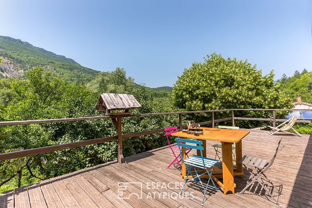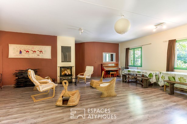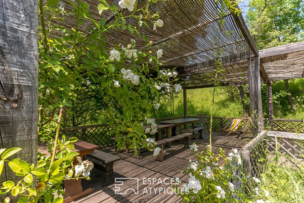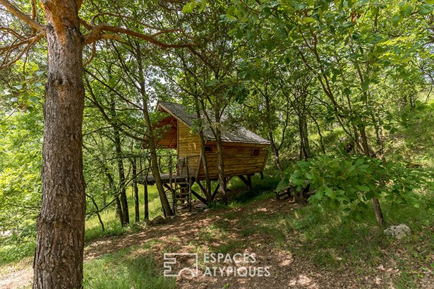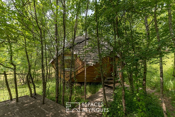 It's a unique place, both intimate and welcoming. Ideally located in the immediate vicinity of the Pas des Ondes lake, this property is built around a charming main house. This family home offers comfortable living spaces, including two bedrooms and a bright workshop upstairs that opens onto several beautiful terraces. It is complemented by an adjoining studio, perfect for entertaining family and friends or considering a self-employed activity. For optimal comfort and a gentle, enveloping warmth, the main house is heated by a masonry stove, ensuring a pleasant atmosphere and good energy efficiency. In addition, solar panels supply the hot water, highlighting an environmentally friendly approach and optimized energy management. The soul of this property also lies in its facilities dedicated to well-being and the art of living, while a professional kitchen paves the way for exceptional culinary experiences, for hosting training courses or seminars. A detached building proves to be a real gem: it houses a studio designed for accessibility for people with reduced mobility (PRM), a valuable asset for a quality welcome. Adjacent, a vast reception room, bathed in natural light, is ideal for practices such as yoga, dance, or any other activity requiring an inspiring and modular space. A lounge with an insert invites conviviality and evenings by the fire, adding a warm touch to the whole. To top it all off, the property is distinguished by the presence of a group of six atypical cabins and typies. True cocoons of charm, they offer an unusual and exotic accommodation experience, promising unforgettable moments in the heart of nature. These cabins, imbued with a singular poetry, open up beautiful prospects for a high-end tourist activity or simply for the pleasure of hosting differently. The 5 hectares of land surrounding this property are just as exceptional, offering a natural setting of great richness. There's a spring that feeds the house, a rare and precious element, as well as a pond, contributing to the biodiversity of the place. Below the land, a river meanders, adding a bucolic and soothing touch to the whole. This property offers a thousand and one possibilities, where calm combines with authenticity and serenity. It's an ideal place to develop a refined hospitality project, or a space to express your creativity.
