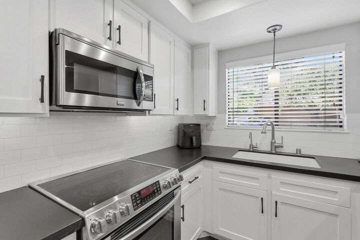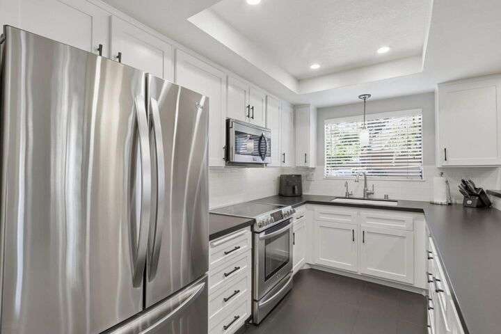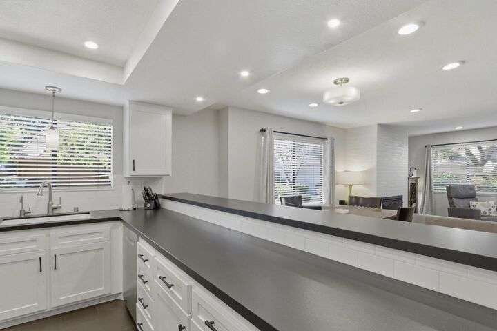 Rare & Beautiful Hamilton Place Cottages stand-alone 3 Bed 2.5 Bath property. This home features many upgrades including stylish tile & elegant wood flooring, providing durability & aesthetic appeal throughout and recessed lighting updates in many areas of home, The Updated Kitchen features leather granite countertops, SS appliances including refrigerator, oven and range, microwave, & dishwasher, catering to all your culinary needs and a custom pantry. Living room/dining area combo has custom tile wrapped fireplace. All baths have been updated as well w/ Primary bath featuring newer vanity w/ dual sinks, & large walk-in shower, Hall bath boasts shower over jacuzzi tub, tile floor and newer vanity as well. The convenient downstairs bedroom can be used for guests or a home office.Central air ensures a comfortable climate year-round, For added convenience, laundry facilities are located in the garage which has water softener, updated electrical panel & extra storage. The private rear yard w/paver stone patio, artificial turf & drip system is perfect for entertaining. This exceptional property is centrally located to Whole Foods, Pruneyard shopping, downtown Campbell & major Hwys 17/280. This is truly carefree living at its best!