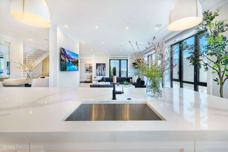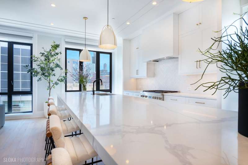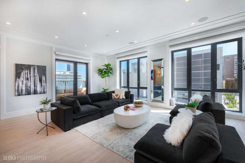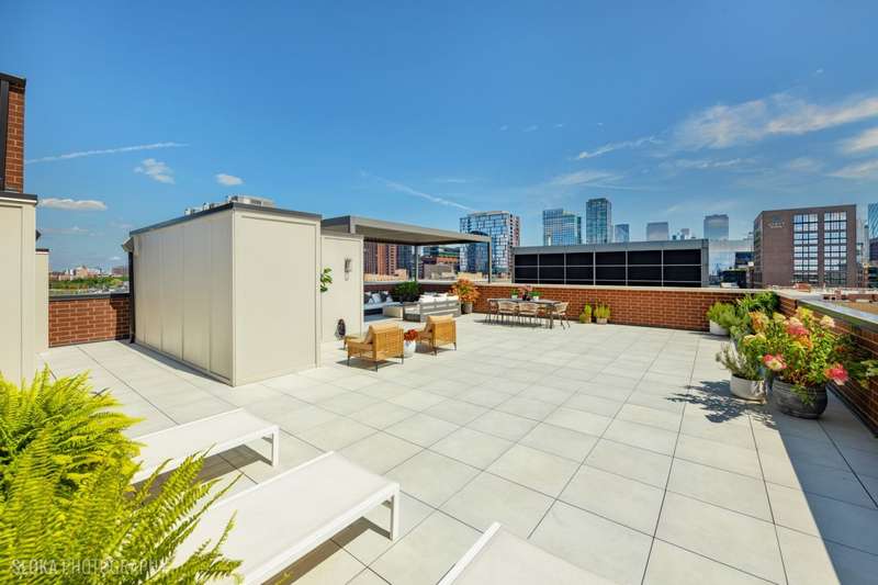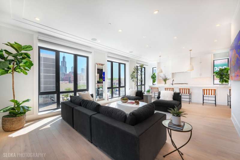 BEST VALUE PENTHOUSE WITH PRIVATE ROOFTOP IN THE WEST LOOP! LAST 2 UNITS REMAIN IN THIS DEVELOPMENT. Tucked away on a quiet side street in the heart of Chicago's vibrant West Loop, this stunning new-construction duplex penthouse offers an unparalleled blend of luxury, space, and privacy. Spanning two expansive levels with over 1700 sq ft of private rooftop deck, this 5-bedroom + den/office, 4-bathroom residence includes direct elevator access and an attached heated 2-car garage-a rare find in the city. Developed by the highly regarded PLD Homes, every inch of this home exudes quality craftsmanship and sophisticated design. The 35-foot-wide interior is flooded with natural light, showcasing a wide-open floor plan ideal for both everyday living and elevated entertaining. Main Living Level: Open-concept layout with floor-to-ceiling east-facing windows Expansive living room, separate dining area, and custom wet bar Designer chef's kitchen with panel-ready Thermador appliances, quartz countertops, and custom cabinetry Fifth bedroom or a family room + office/den a full bathroom and covered private terrace - all on the main floor. Second Level: Luxurious primary suite with walk-in closet, private terrace, and spa-caliber bathroom featuring a soaker tub, steam shower, and heated floors. Three additional bedrooms with custom closets and two full bathrooms. Enter this level directly through a private mudroom. Spacious laundry room and separate storage area. Rooftop Oasis: A private interior stairway leads to the top-floor flex space, ideal for a second office or lounge with wet bar-opening to your exclusive rooftop retreat. Enjoy panoramic 360 skyline views, unforgettable sunsets, and endless entertaining potential. Hot tub and shower will be installed on the roof. This boutique building offers the privacy and feel of a single-family home with the luxury conveniences of a high-rise. Located just steps from award-winning restaurants, premier shopping, trendy nightlife, parks, and top-rated schools-this is truly a rare gem in the West Loop.